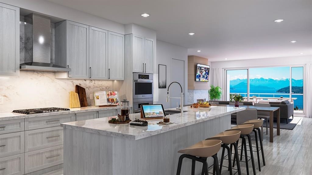 Envied FRONT row unit with unobstructed views of the Salish Sea & snow-capped Coastal mountains! This 2-bed + den, 2-bath home features AC & an impressive tiled patio overlooking a 2-acre park. The open-concept design boasts floor-to-ceiling windows showcasing breathtaking ocean & mountain views from the living, dining & chef’s kitchen—complete with a gas stove, double ovens & wine fridge. Host unforgettable gatherings & enjoy resort-style amenities, including an ocean-view pool, hot tub & gym. Includes 2 E...