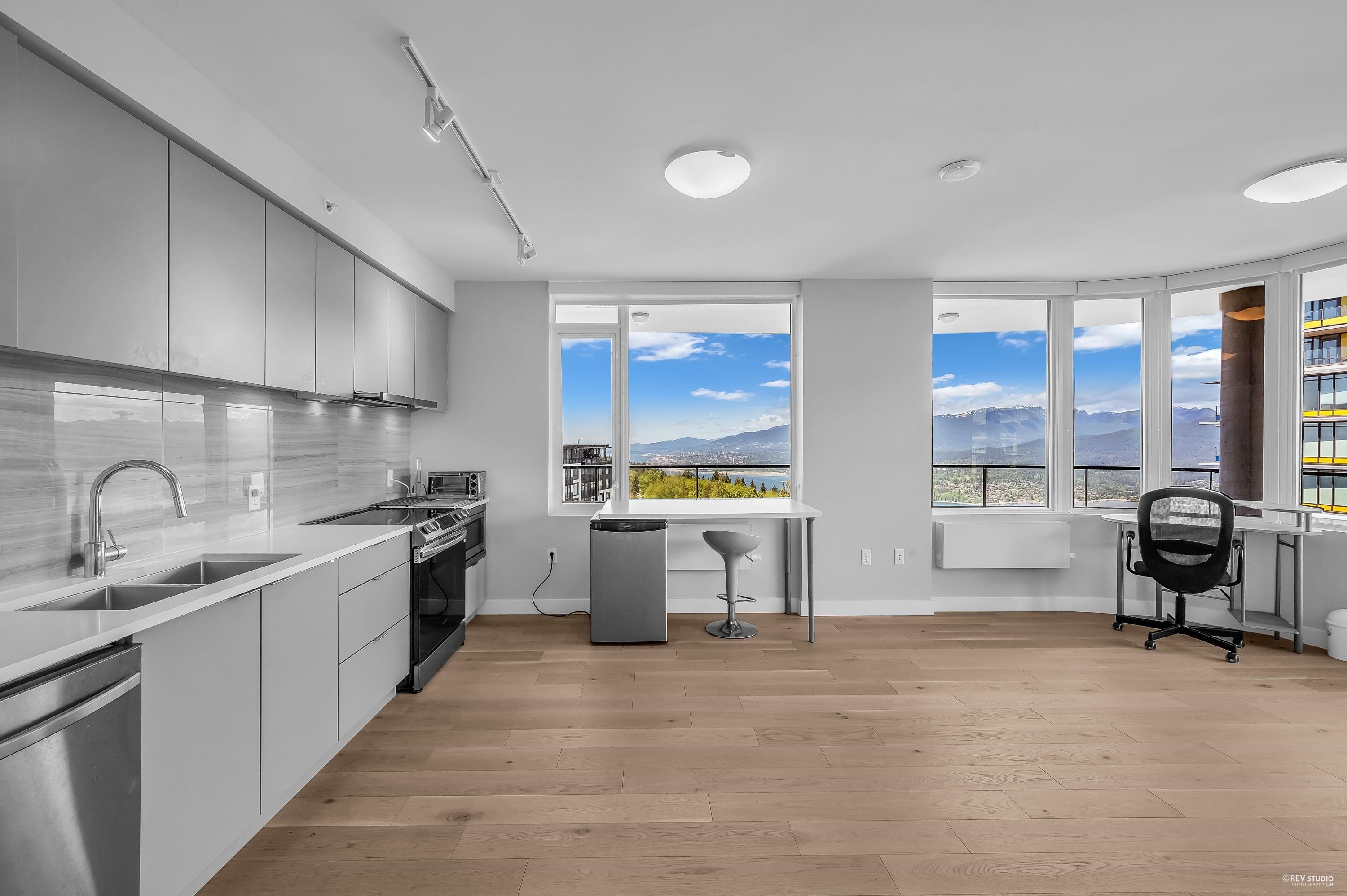 Welcome to Crescent Court, developed by Liberty Homes, situated at the peak of Burnaby Mountain in the heart of the SFU community. This unit with a wraparound balcony showcasing Spectacular views of Mountains, Waters and City. Spacious floor plan with a modern kitchen, engineered hardwood flooring. Features two bedrooms on the opposite sides which makes it a great rental property for SFU students. The building also features four amenity rooms and a beautifully landscaped central courtyard. This property inc...