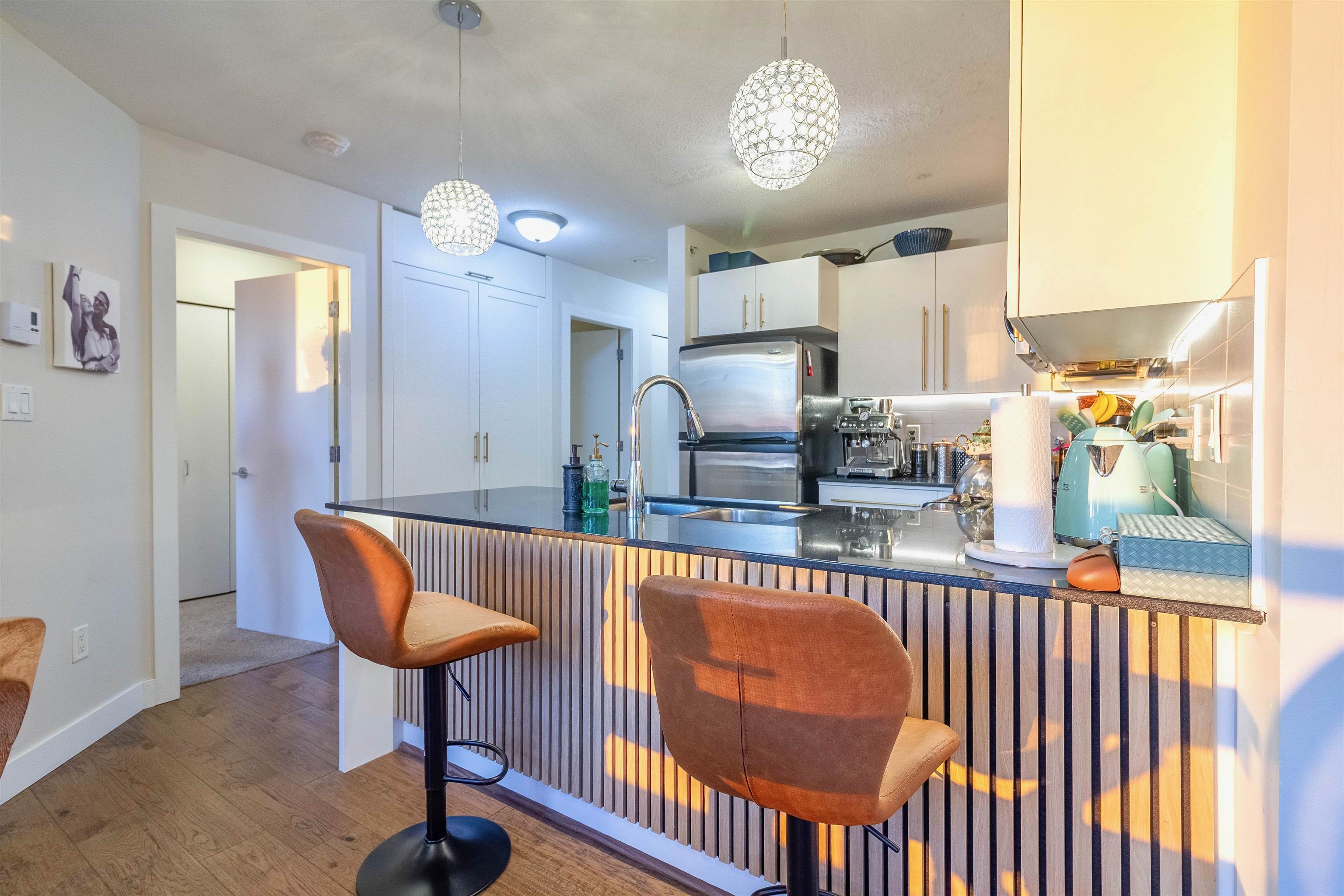 Welcome to Fitzgerald at Brentwood Gate by Ledingham McAllister. A tastefully updated 2-bed, 2-bath corner unit home offering the perfect blend of comfort, value, and location. Lovingly maintained, this residence shows true pride of ownership and stands out with warm, move-in ready feel. Enjoy beautiful sunsets, sparkling city lights, and mountain views from your windows and private balcony. Includes the rare bonus of 2 side-by-side parking stalls. Amenities feature a gym, club lounge, hot tub, and bike sto...