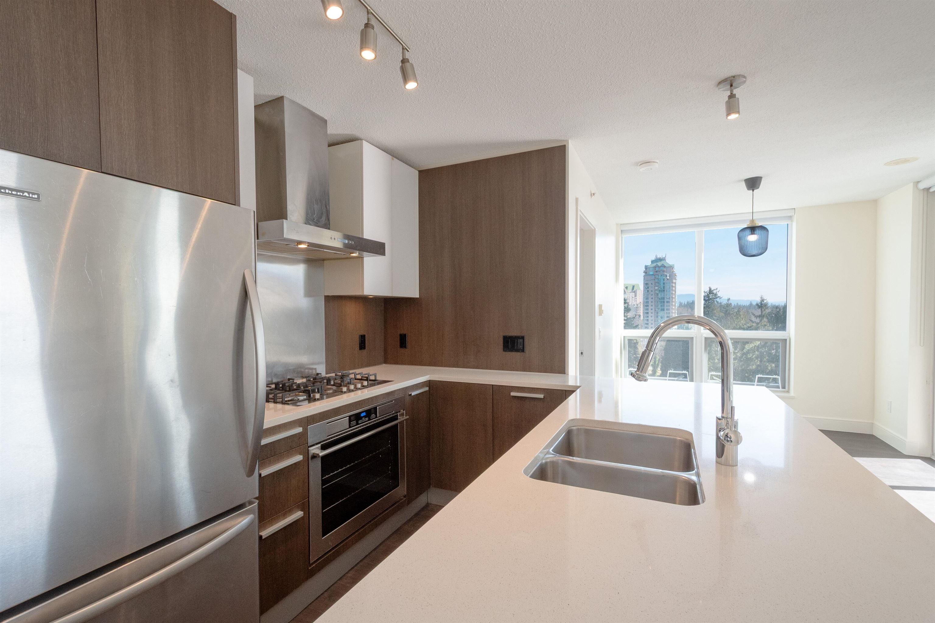 Welcome to your beautiful and bright 2 bed, 2 bath corner residence with southeast exposure and Lafarge Lake & mountain views. Open-concept living features spacious living and dining areas, a convenient workstation nook, and a covered balcony perfect for BBQs. The kitchen offers stainless steel appliances, gas cooktop, built-in microwave, quartz countertops, and peninsula seating. The primary bedroom features a walk-through closet and ensuite, plus a well-sized second bedroom and full bathroom. Includes par...