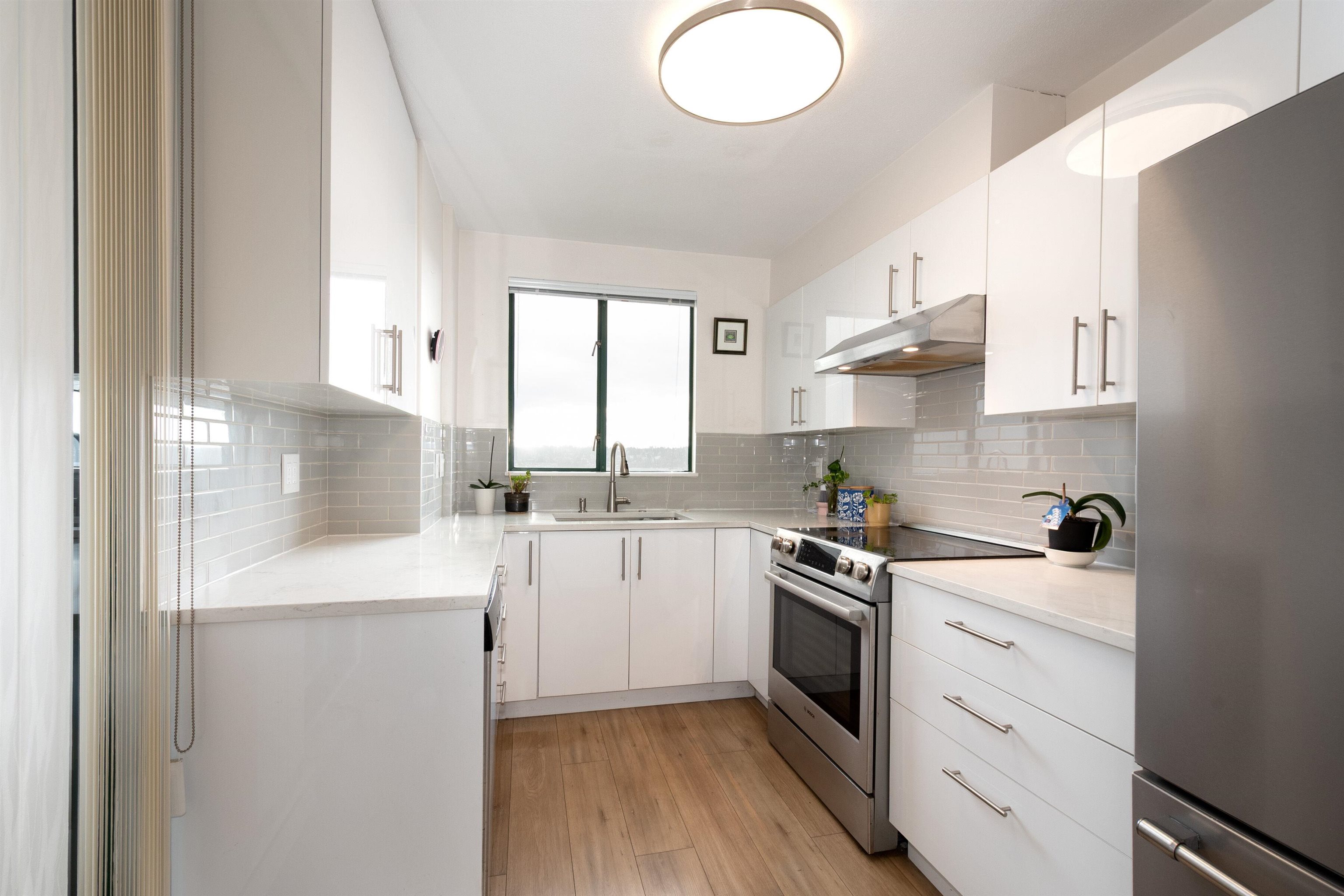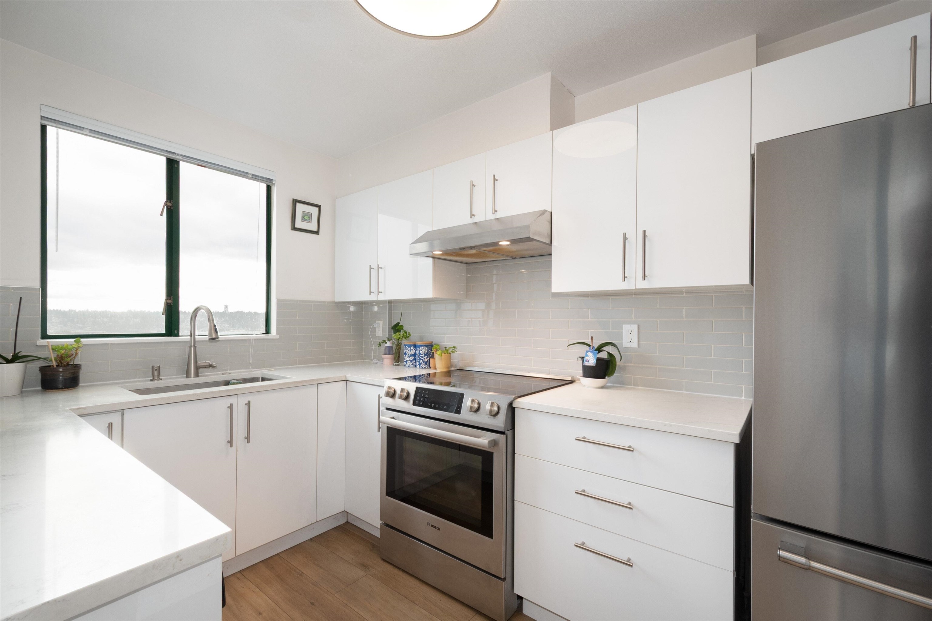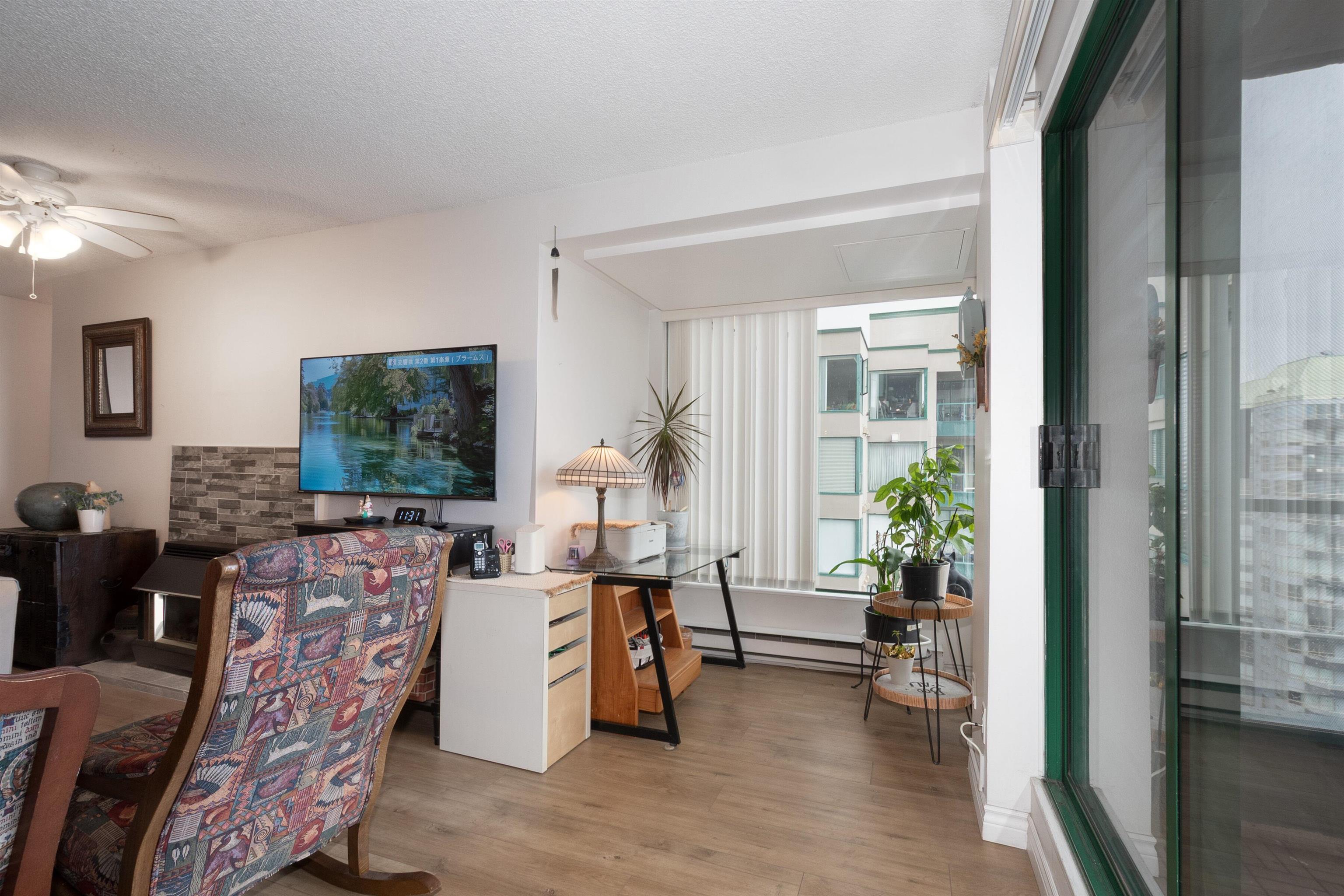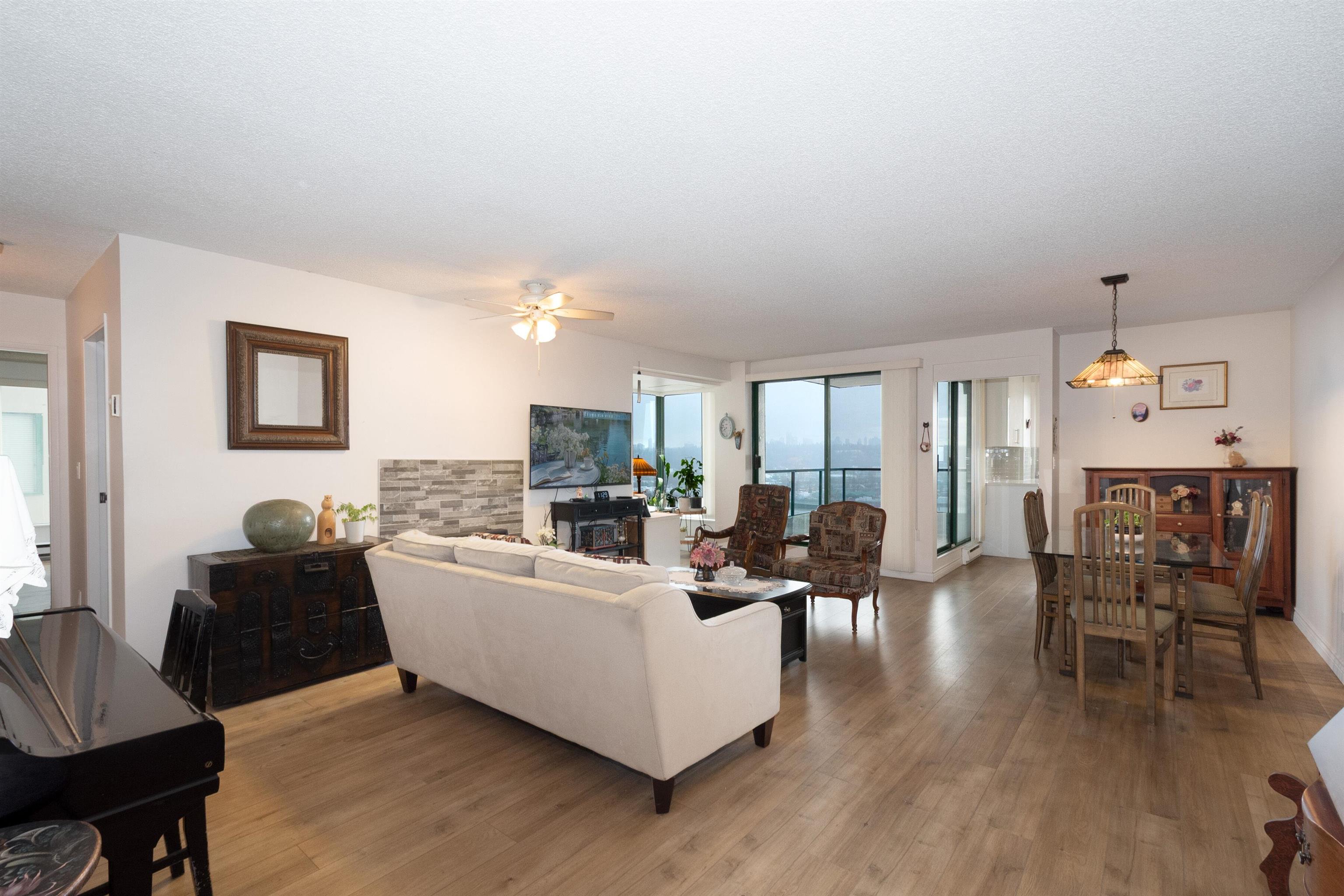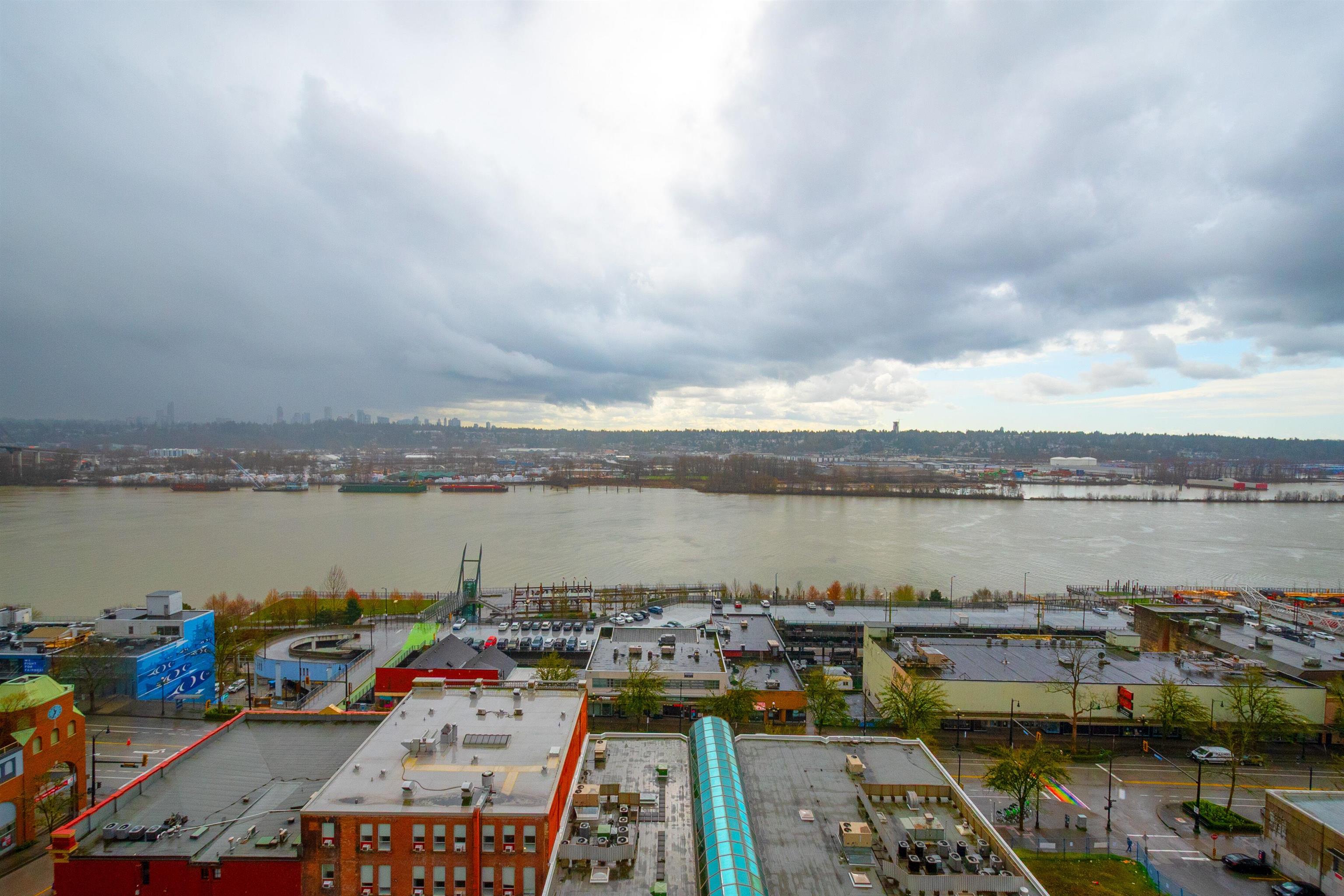 Beautifully maintained east-facing unit with Fraser River and mountain views. Fully renovated in 2023 featuring a modern kitchen with white cabinetry, quartz countertops, and engineered flooring throughout. Spacious layout with gas fireplace and dedicated nook ideal for home office. Open balcony to enjoy morning sun and views. Well-managed building with recent upgrades including new elevator and brand-new roof. Amenities include indoor pool, hot-\tub, and exercise room. Direct access to SkyTrain for ultimat...