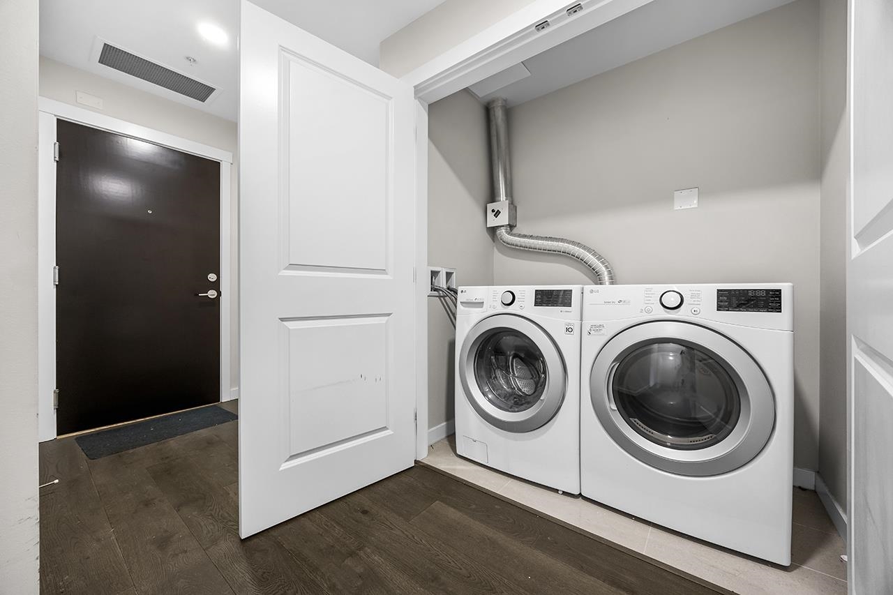 South! South! South facing unit with Air Conditions. Eton - a prestigious park-side tower at UBC's Wesbrook Village. Designed by renowned architect Walter Francl, this community features dramatic landscaping & water feature. This 3 bed, 2 bath southeast facing home boasts A/C, Bosch appliances, a stylish kitchen & a generous deck. Bedrooms are located at the opposite ends of the home to maximize privacy. Enjoy the convenience of double sinks & a generous walk-in shower in the ensuite. Living room with pictu...