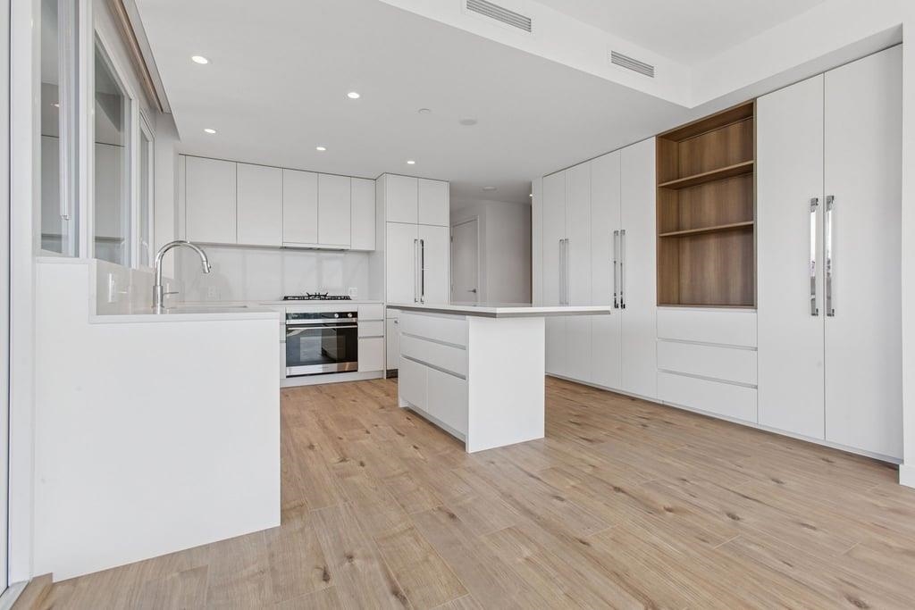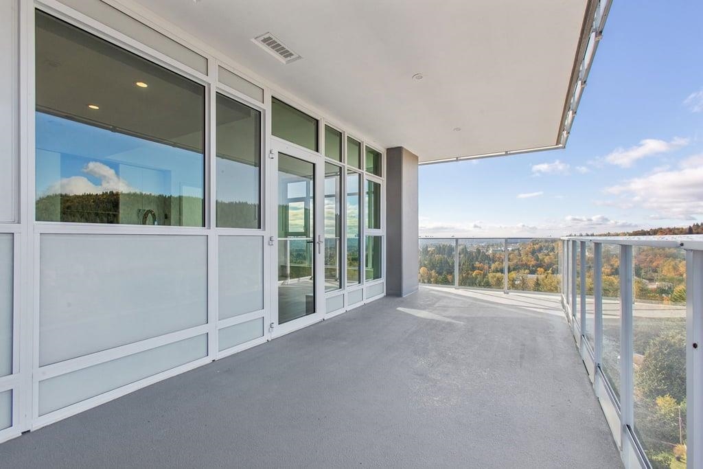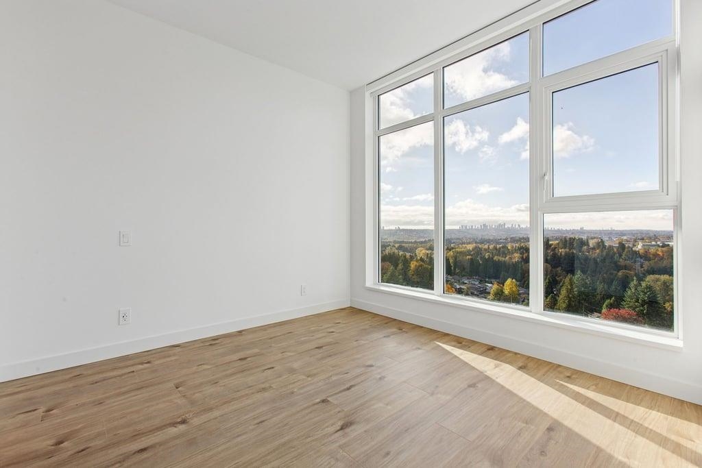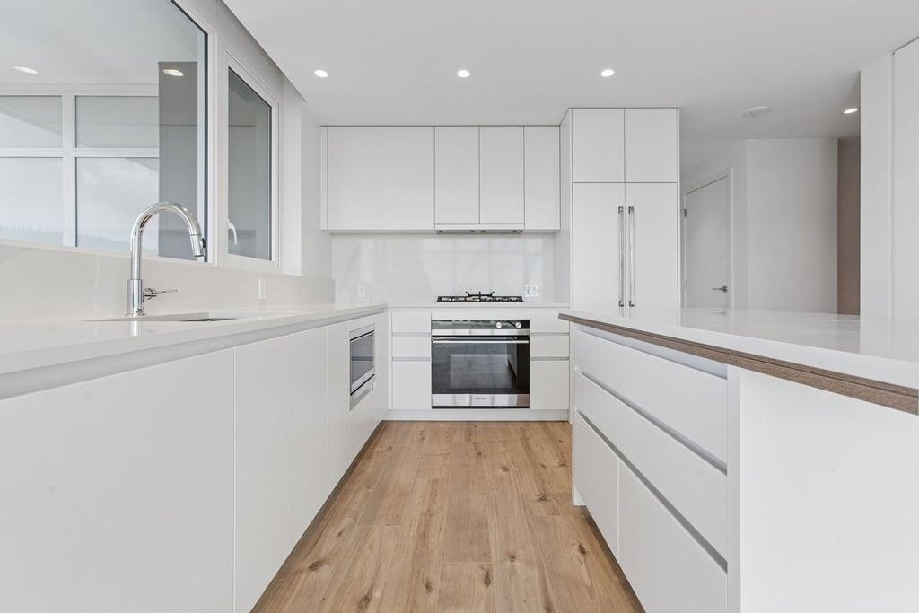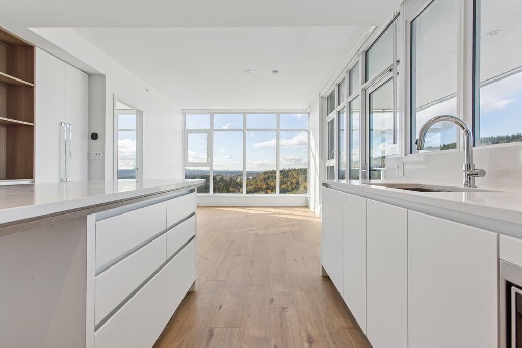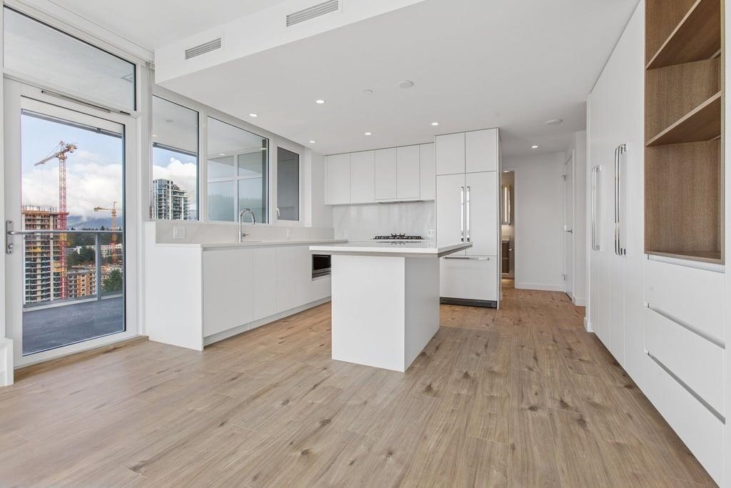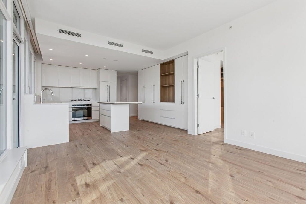 This brand-new 875sf southwest corner unit offers 2 bedrooms, 2 bathrooms, 9' ceilings, laminate floors, and a 233sf view deck with stunning panoramic views of Fraser Valley, Fraser River, Metrotown, Brentwood, and Burnaby Mountain. The proper foyer features a coat closet and built-in niche with lighting, a magnetic board, and charging station. The bright living-dining area has two glass walls for maximum sunlight. The chef’s kitchen boasts a large island, full-height cabinets, quartz countertops, and stain...