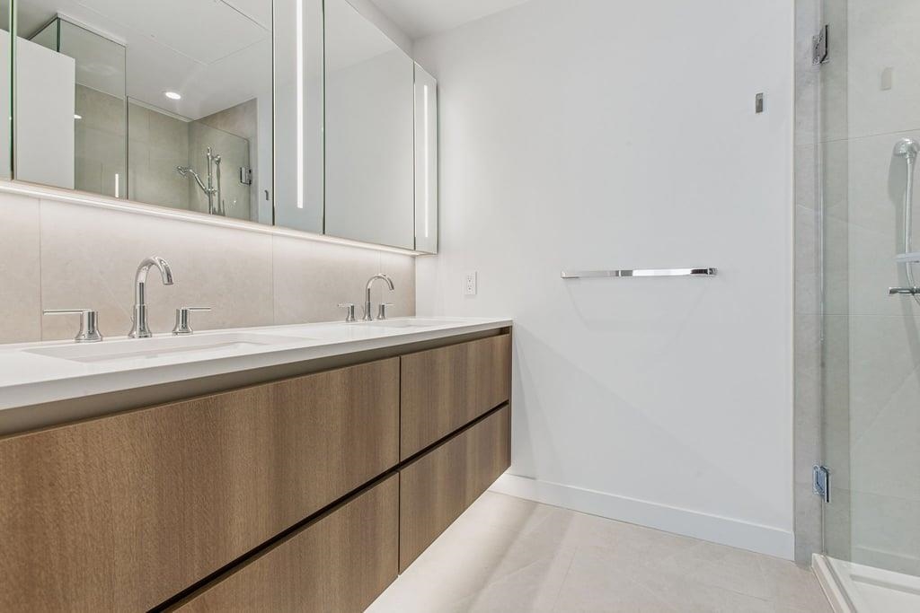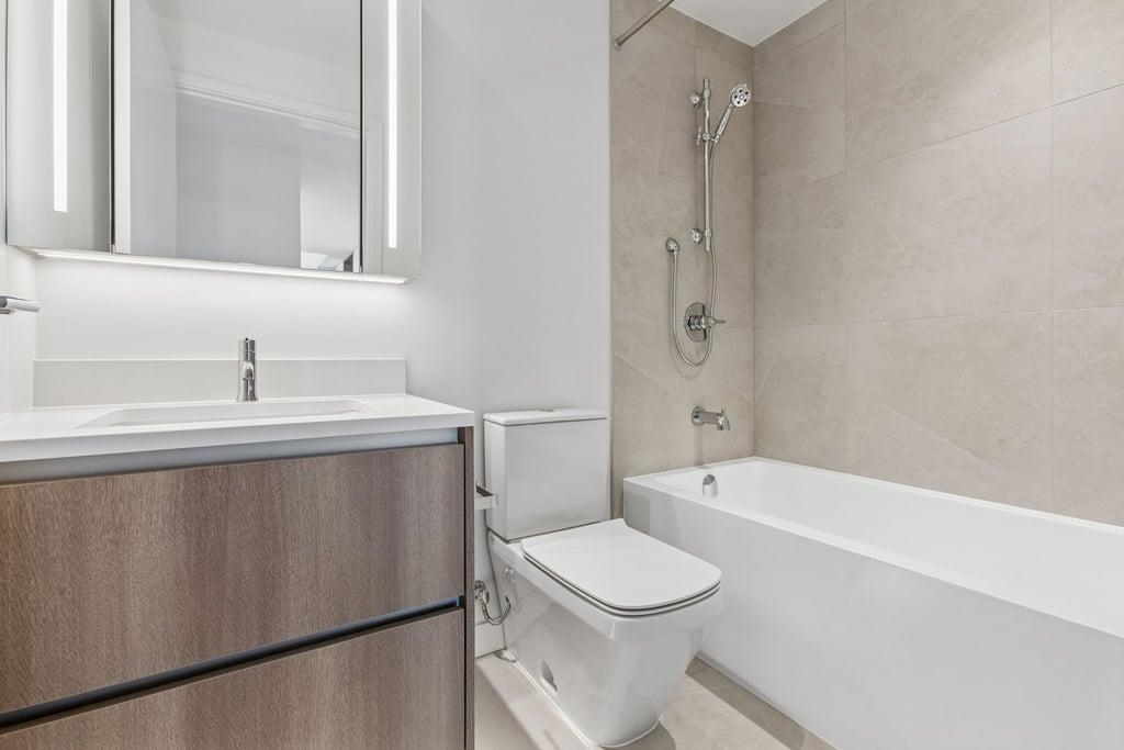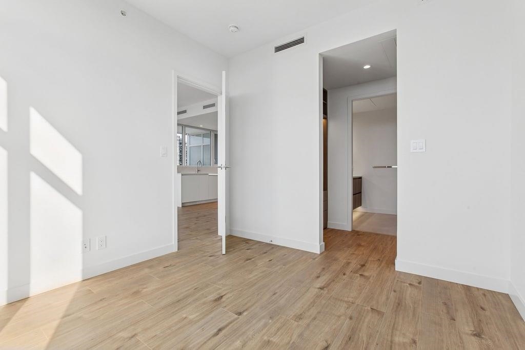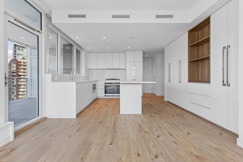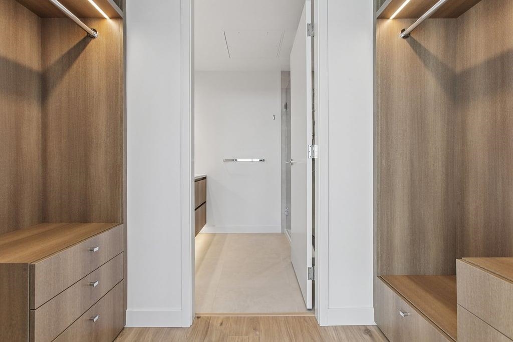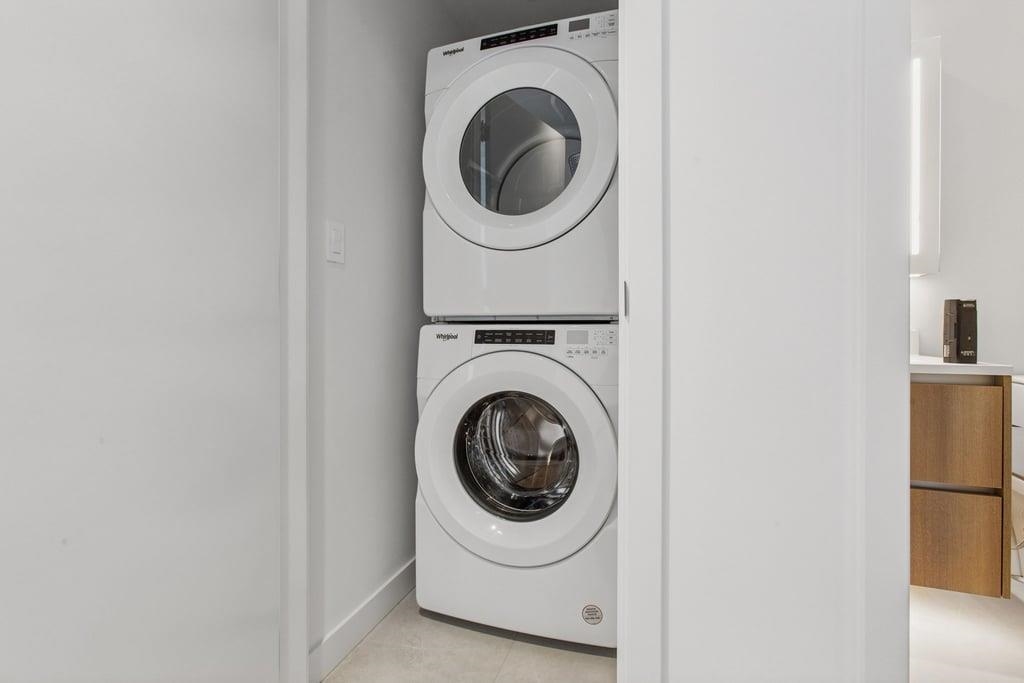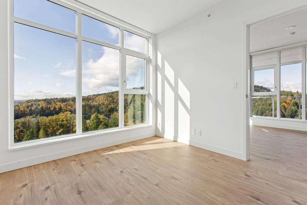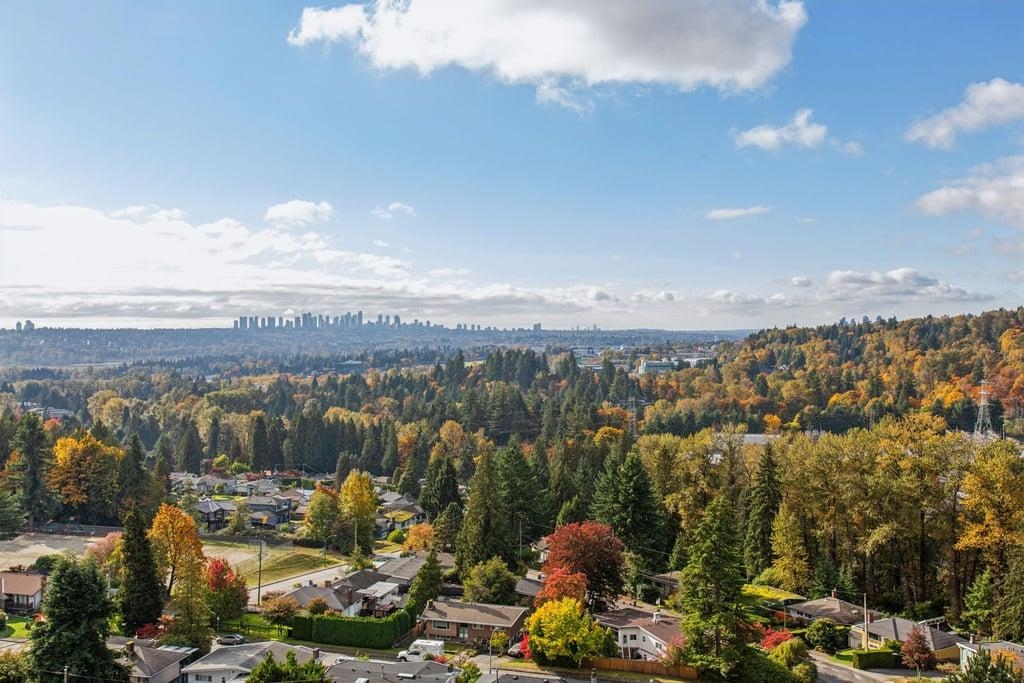 This brand-new 875sf southwest corner unit offers 2 bedrooms, 2 bathrooms, 9' ceilings, laminate floors, and a 233sf view deck with stunning panoramic views of Fraser Valley, Fraser River, Metrotown, Brentwood, and Burnaby Mountain. The proper foyer features a coat closet and built-in niche with lighting, a magnetic board, and charging station. The bright living-dining area has two glass walls for maximum sunlight. The chef’s kitchen boasts a large island, full-height cabinets, quartz countertops, and stain...