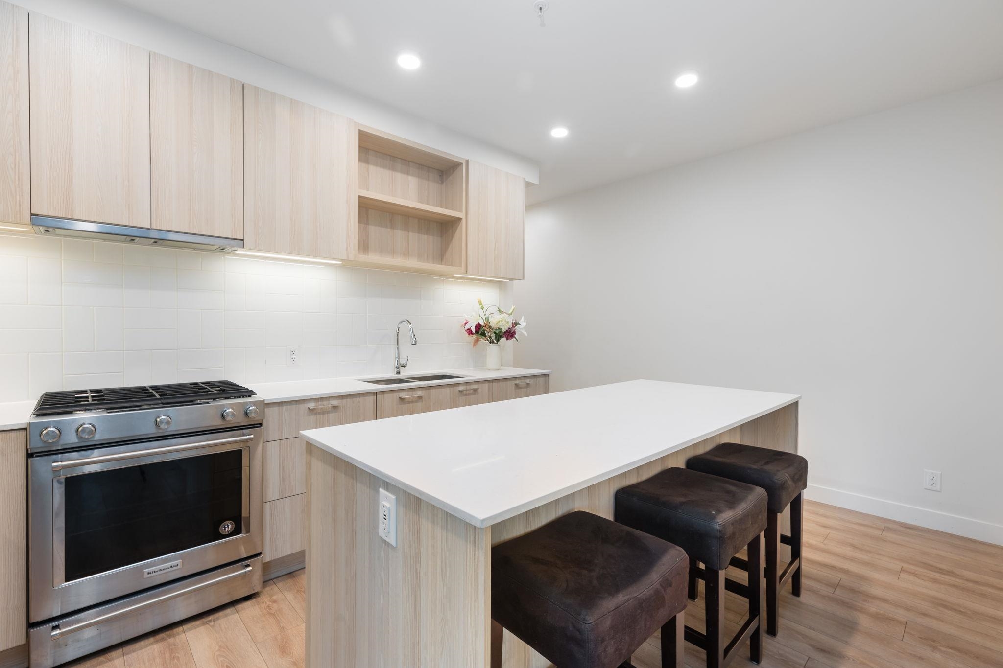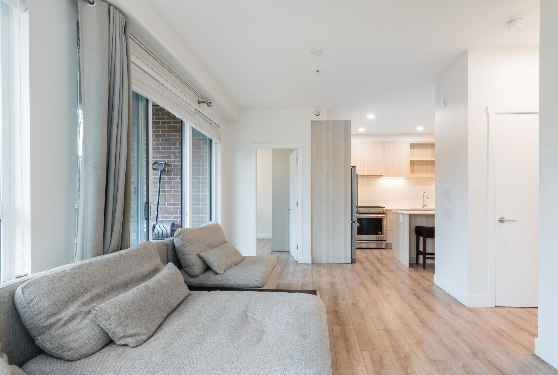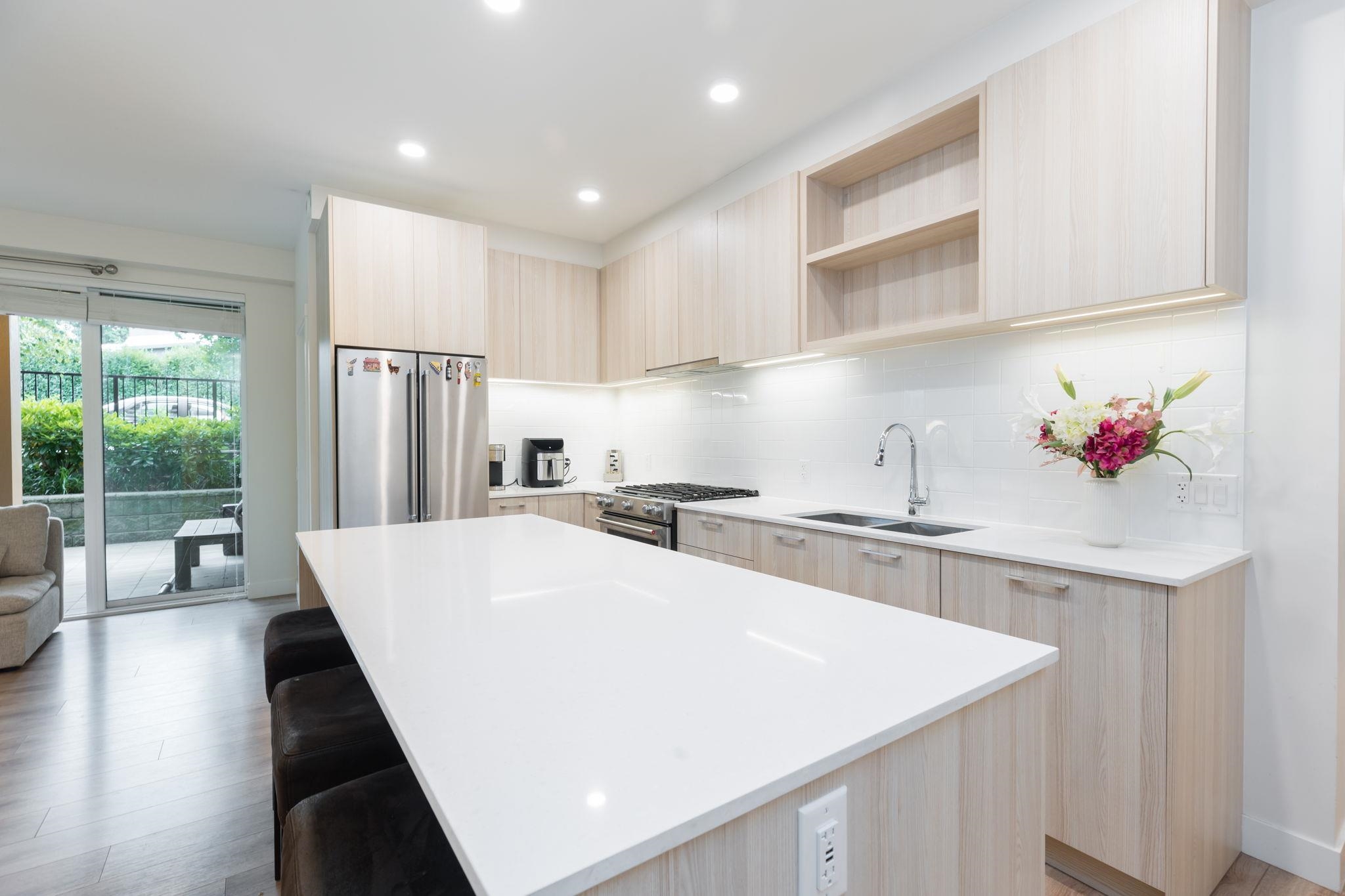 Coveted CORNER ground floor 3 BED, 2 BATH + DEN at The Oaks. Enjoy over 1,037 sq ft of airy, open-concept living & a 230 sq ft COVERED patio—perfect for morning coffee, summer dinners or kids/pets at play. Soaring 9’ ceilings, wide-plank laminate flrs & oversized windows fill the space w/natural light. Cook & chat w/family in a stunning CHEF'S kitchen w/sleek Euro cabinetry, quartz counters, 5-burner gas range, French door fridge & centre island for casual meals or entertaining. Spa-inspired baths offer tru...