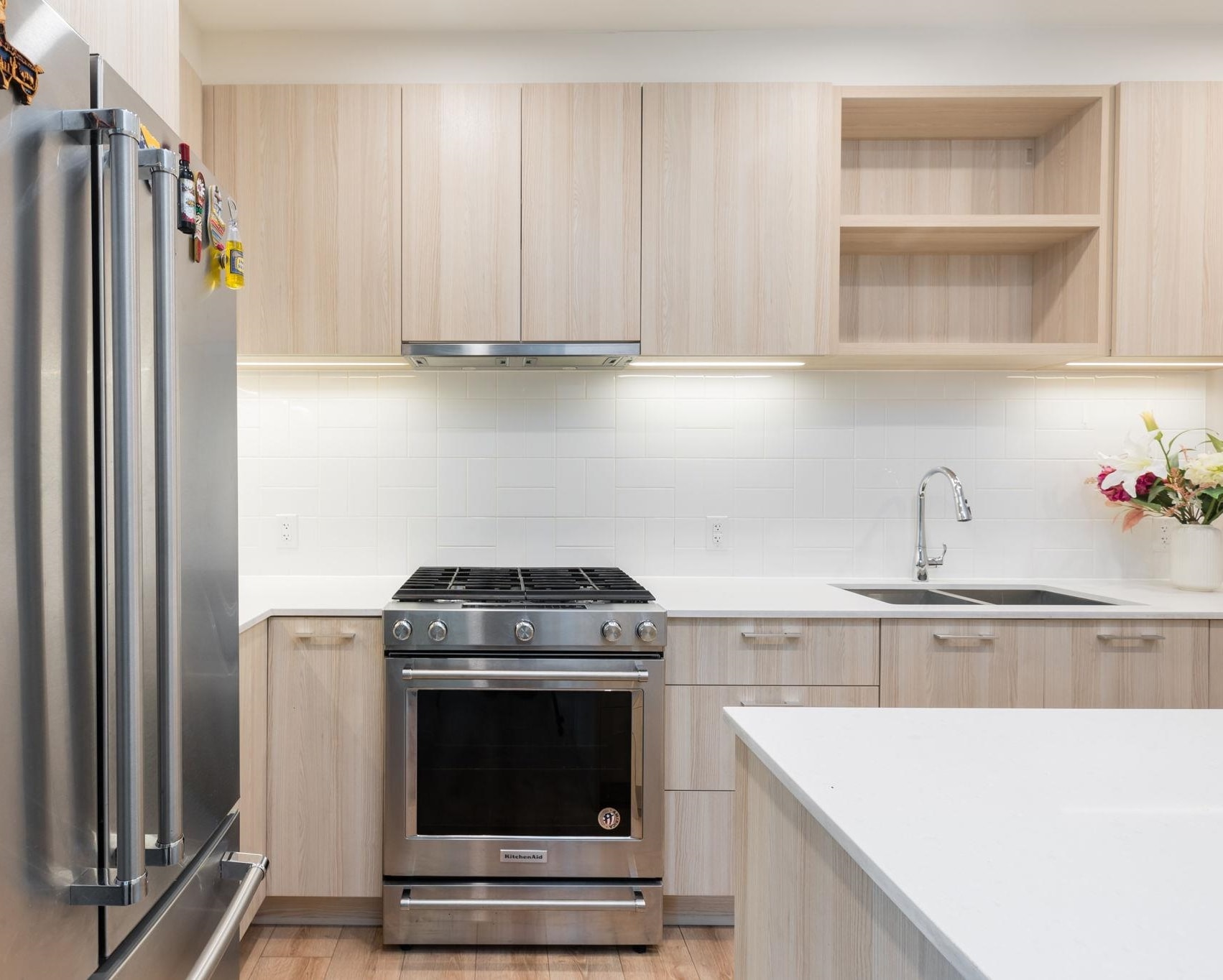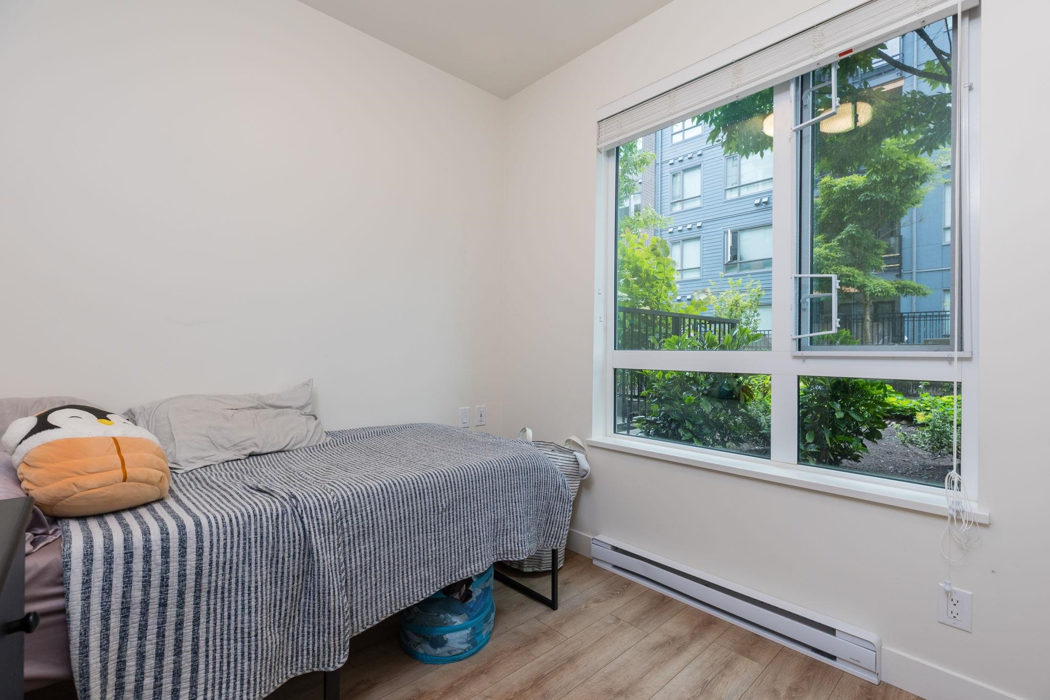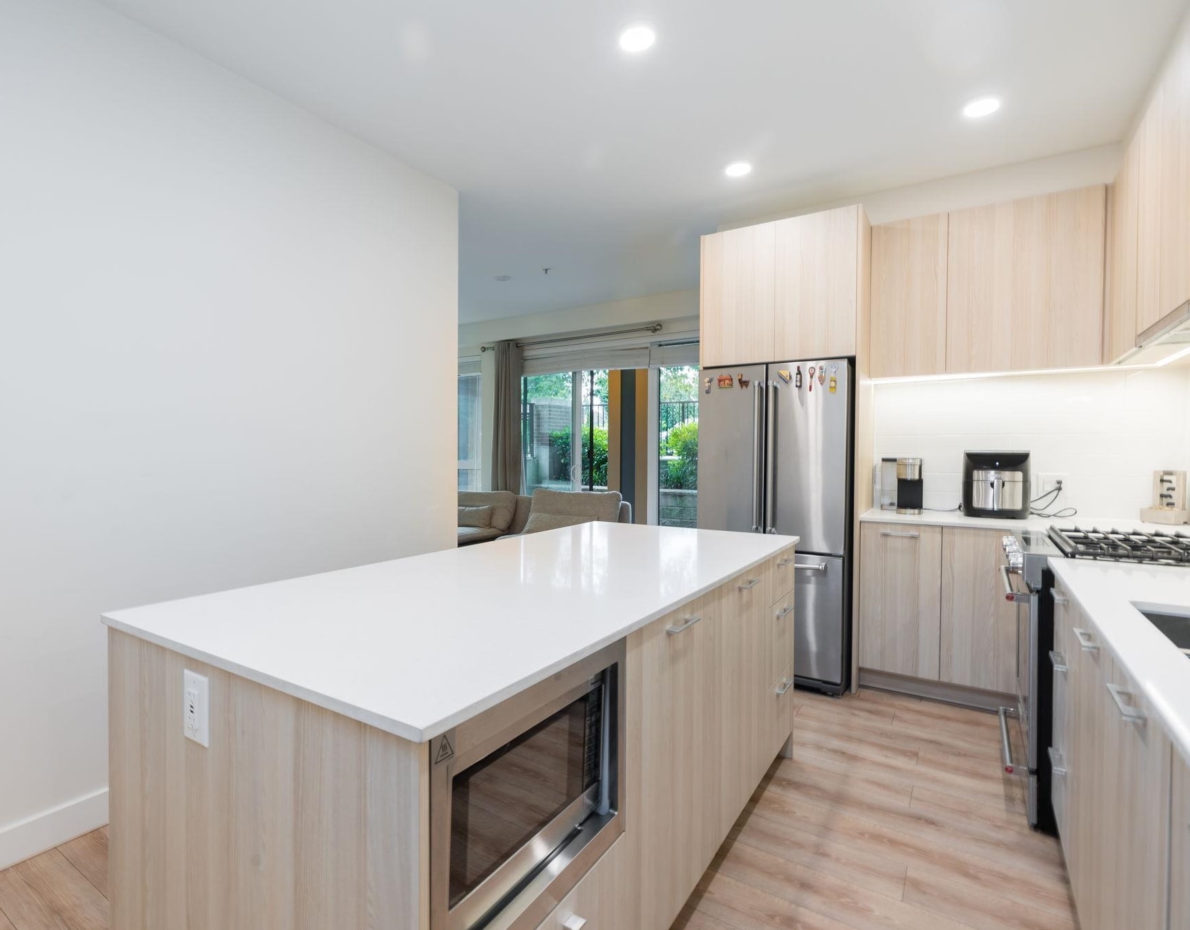 Coveted CORNER ground floor 3 BED, 2 BATH + DEN at The Oaks. Enjoy over 1,037 sq ft of airy, open-concept living & a 230 sq ft COVERED patio—perfect for morning coffee, summer dinners or kids/pets at play. Soaring 9’ ceilings, wide-plank laminate flrs & oversized windows fill the space w/natural light. Cook & chat w/family in a stunning CHEF'S kitchen w/sleek Euro cabinetry, quartz counters, 5-burner gas range, French door fridge & centre island for casual meals or entertaining. Spa-inspired baths offer tru...