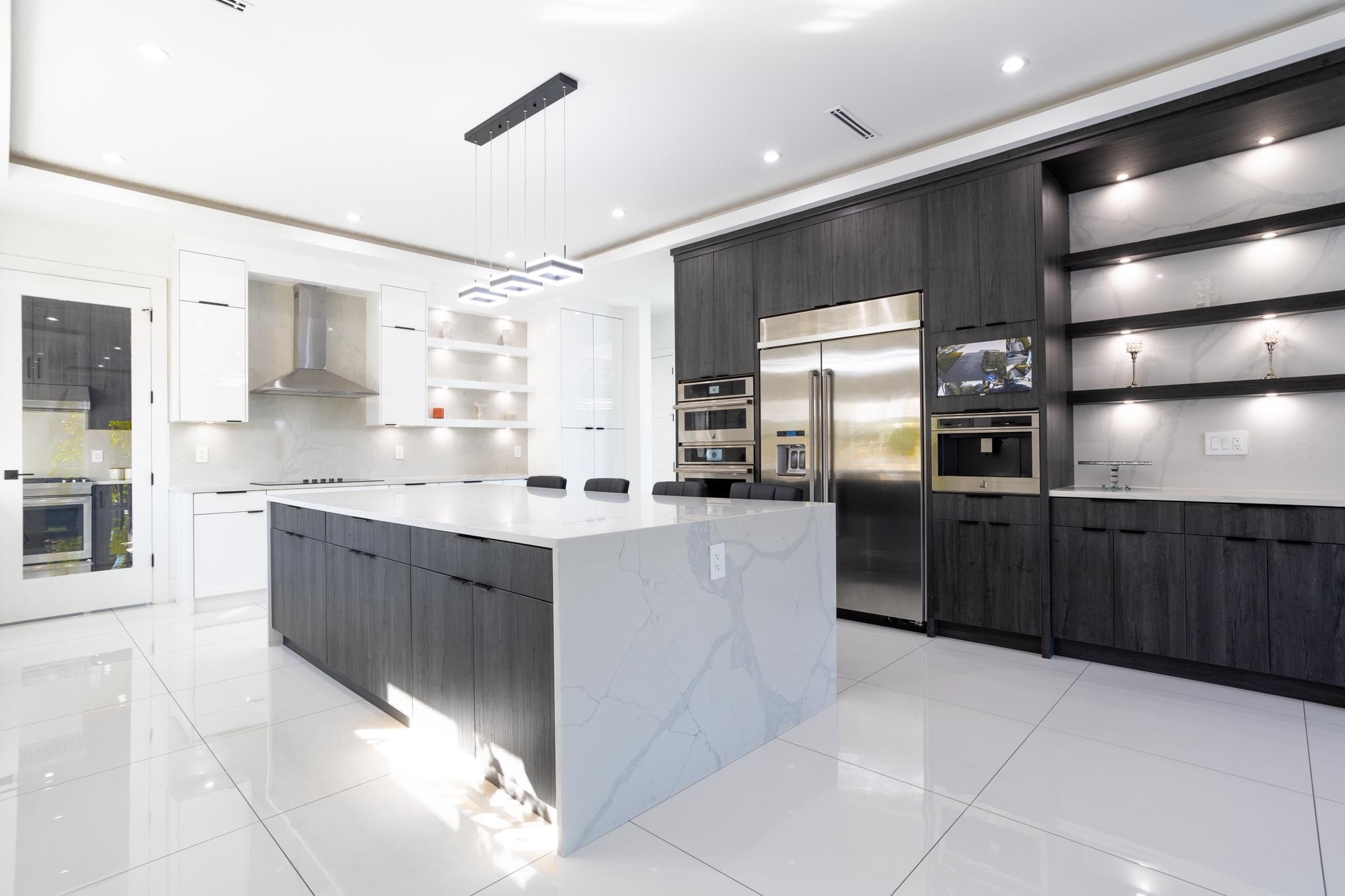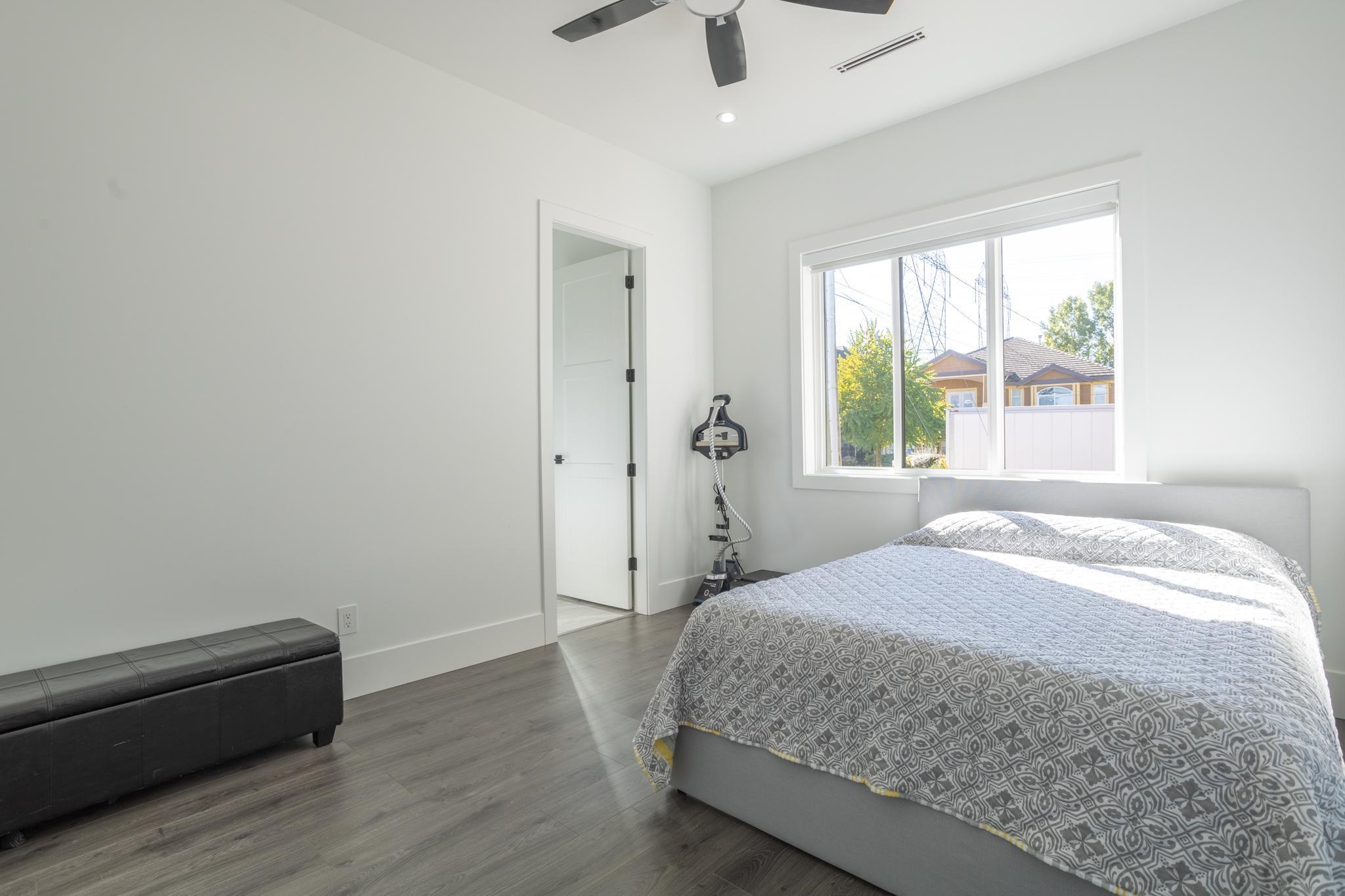 Stunning modern luxury home in desirable West Newton on a corner lot with 5,643 sq. ft. of living space and back lane access. This 3-level home features 8 bedrooms, 9 bathrooms, theatre room, large family room with an open-concept layout and high end finishes throughout. Panoramic sliding doors lead to a spacious covered deck, and the kitchen includes JennAir appliances. Top floor features 4 bedrooms with walk-in closets, ensuites, and two large patios. Additional features include radiant in-floor heating, ...