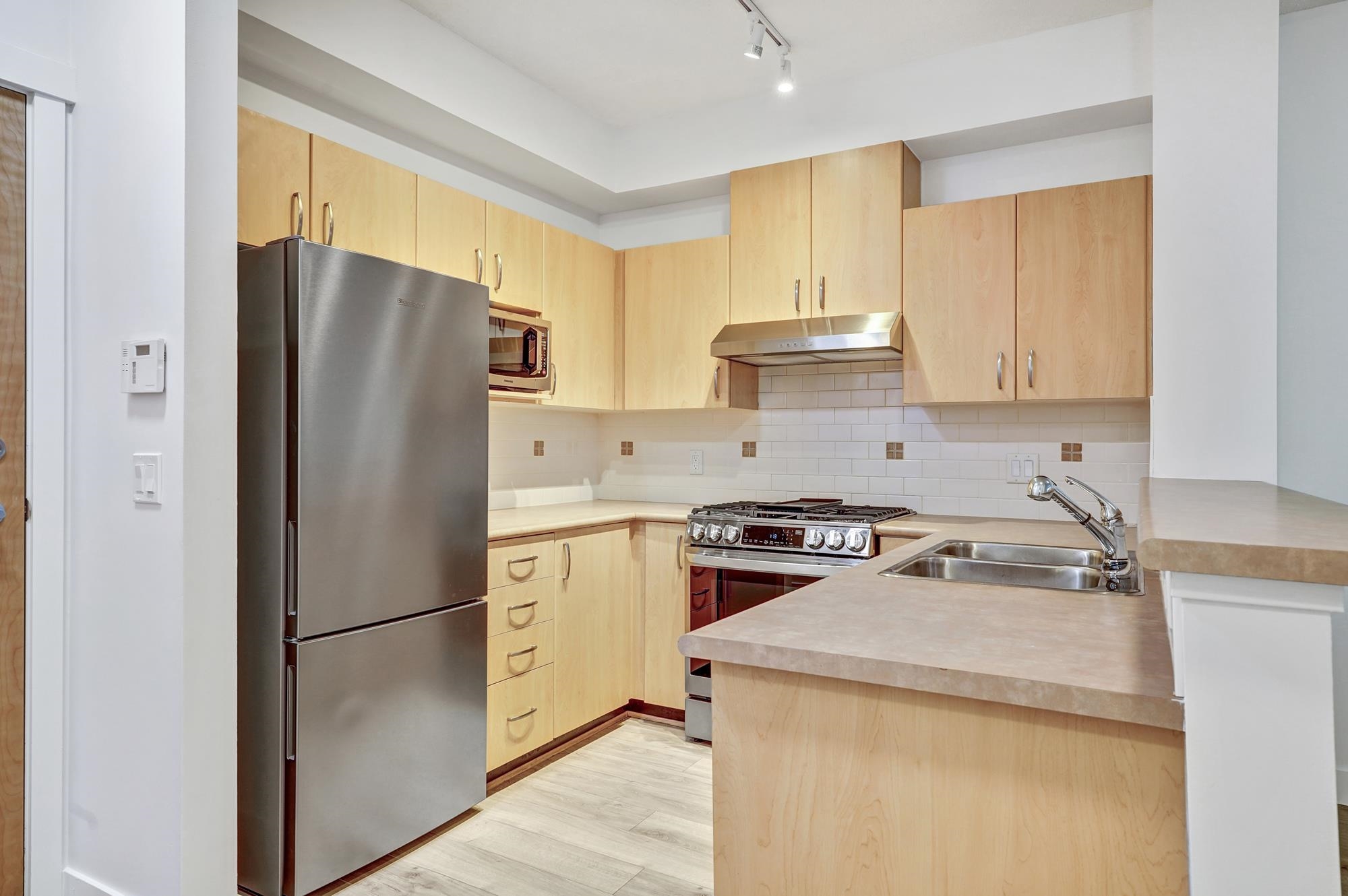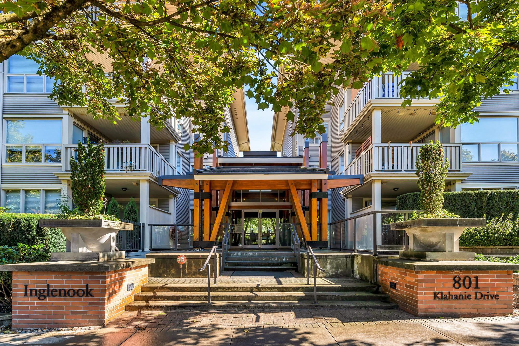 Ideally situated within the coveted community of KLAHANIE, enjoy a freshly painted garden-level 2 bed 2 full bath home at INGLENOOK! The prized enclosed backyard measures 32' x 25' has a beautiful WNE exposure; perfect outdoor space for grilling & area for pups to play! Cozy up in front of the fireplace this winter. Enjoy overheight ceilings with floor to ceiling windows that welcome natural light all day. ALL NEW APPLIANCES include full-size gas range, fridge, dishwasher, MW, SS fixtures, stone countertops...
