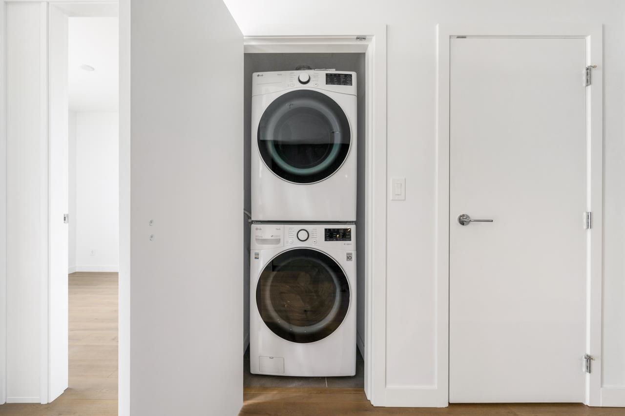 Welcome to Akimbo by Imani Development – where contemporary design meets everyday convenience. This south-facing 1-bedroom residence offers 455 sq.ft. of efficiently designed living space with 9’ ceilings, floor-to-ceiling windows, and individually controlled A/C and heating for year-round comfort. The gourmet kitchen showcases high-end appliances and modern cabinetry, while the spa-inspired bathroom brings a sense of daily luxury. Step onto the 95 sq.ft. terrace-style balcony to enjoy open city views and o...