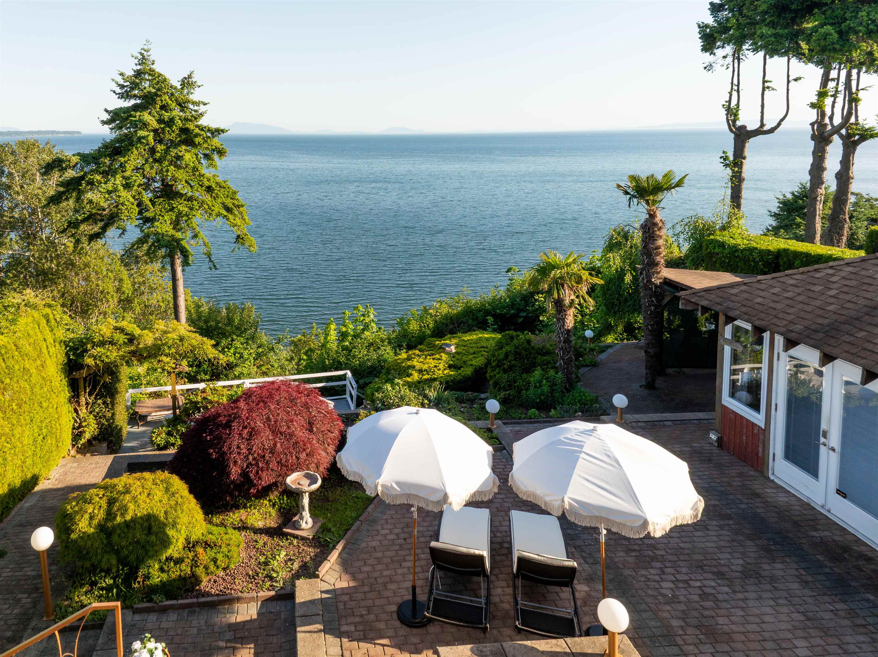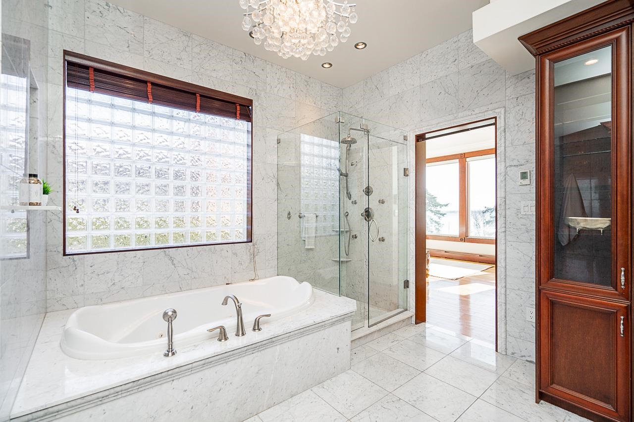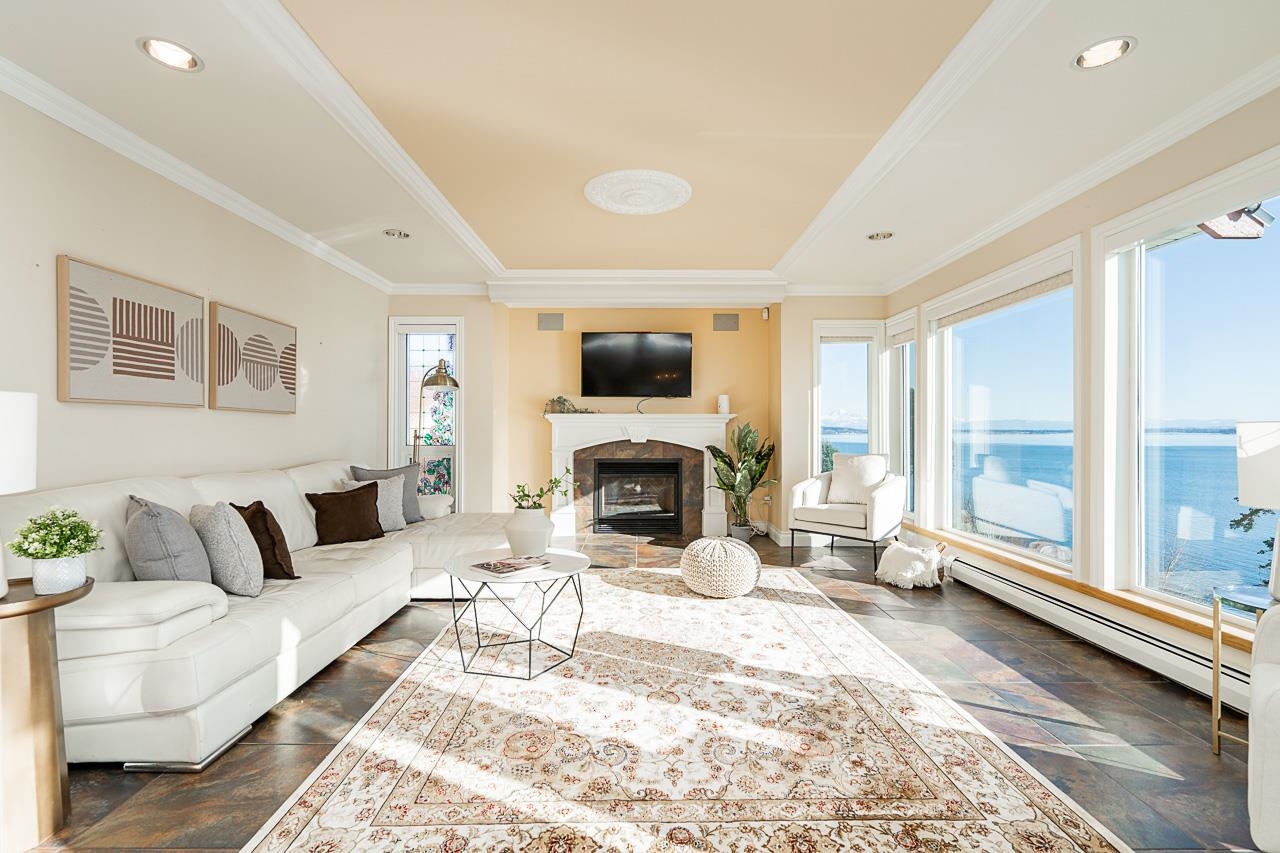PANORAMIC OCEAN VIEWS! This stunning waterfront retreat is a custom masterpiece offering beach access and sweeping 180-degree ocean vistas. Spanning across 4,202 sq.ft, this home boasts exquisite craftsmanship, radiant heating, and seamless indoor/outdoor resort-style living. Four bedrooms, each open to 2,000 sq.ft of cascading decks perfect for soaking in sunrises and sunsets. The oversized primary suite stuns with a Carrera marble ensuite, fireplace, and private oceanfront patio. Entertain effortlessly wi...