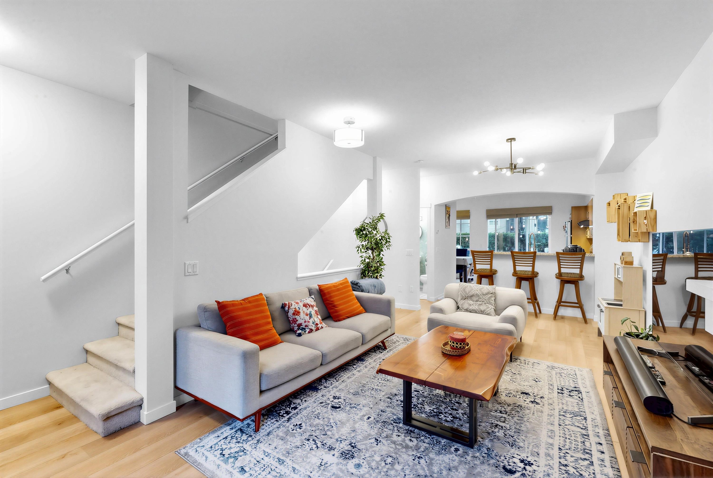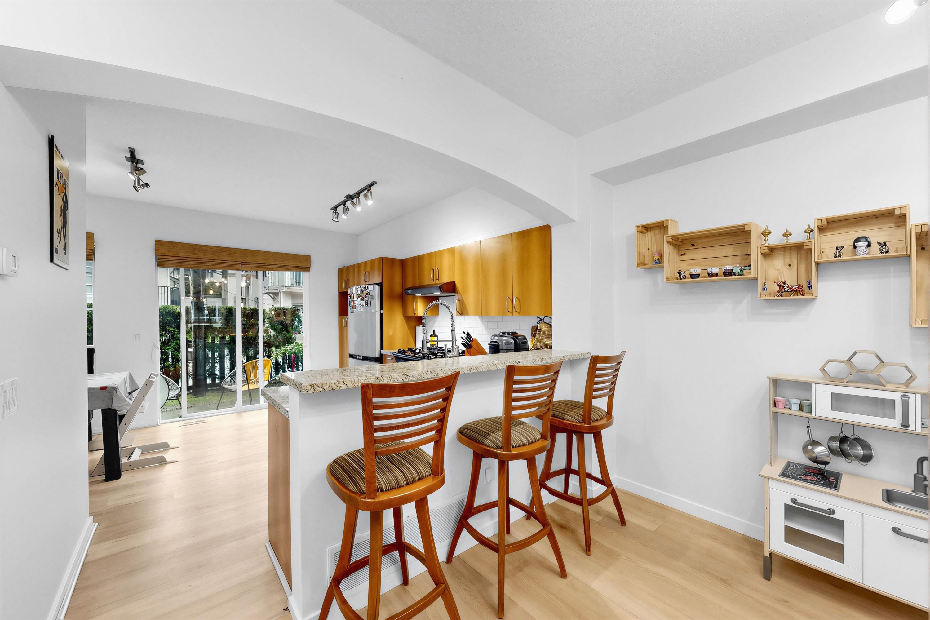 3 Bed + 3 Bath Townhome at Terramor by Polygon. Located on the QUIET side of the complex! This bright & spacious home offers a functional open-concept layout with 9’ ceilings on the main & durable laminate flooring throughout. Great layout with a modern kitchen featuring granite countertops & flowing seamlessly into the dining & living areas. Private fenced backyard, ideal for relaxing or summer gatherings. Upstairs, the generous primary bedroom includes a full ensuite & abundant closet space, along with 2 ...