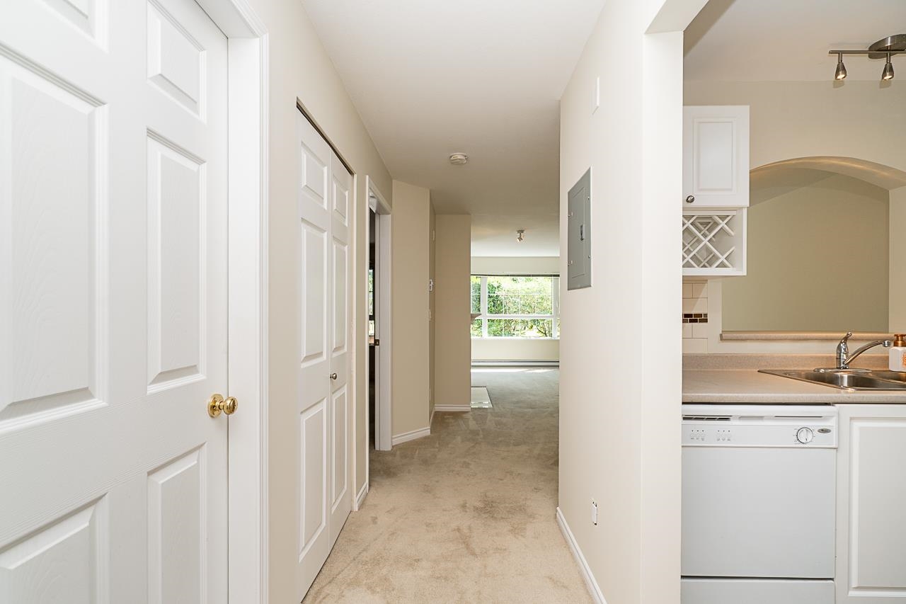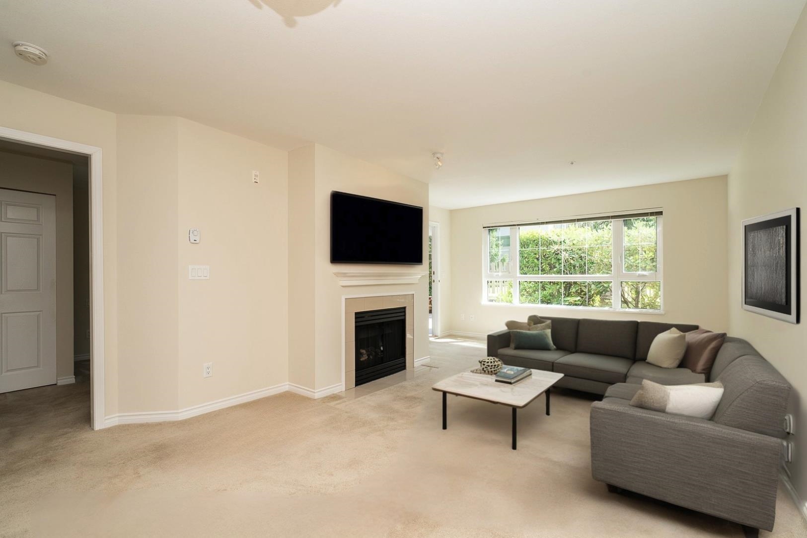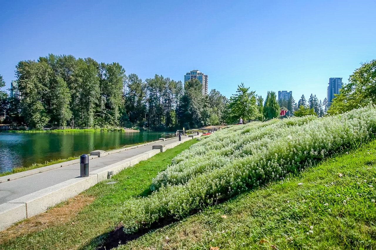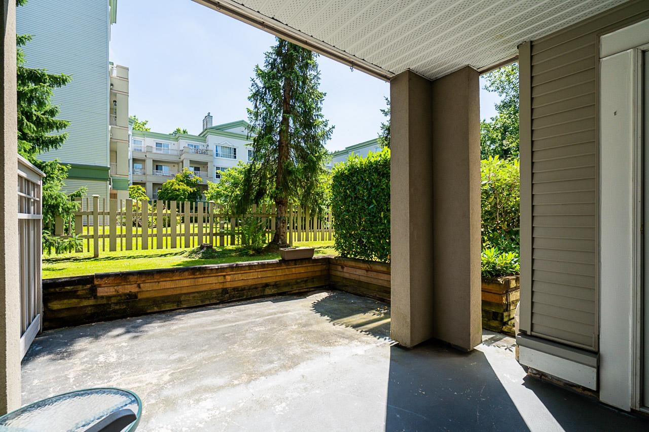 Welcome to this peaceful & private 1 bedroom home located on the quiet side of the building, offering serene courtyard & garden views. Enjoy your morning coffee or evening unwind on the large patio, perfect for relaxing or entertaining. Inside, you'll find a cozy gas fireplace, in-suite laundry, & a walk-in closet in the bedroom. The open layout is bright & functional, making the most of the space. Just steps to SkyTrain, Douglas College, Lafarge Lake, parks, trails, restaurants, cafés, & all the amenities ...