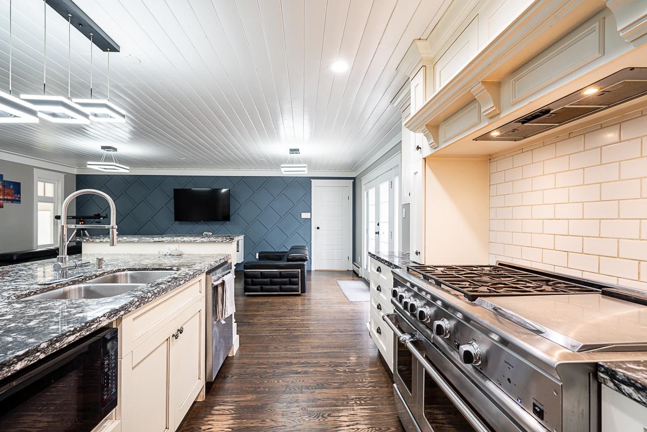 Rare opportunity to own a 23,957 sq.ft. ESTATE property on White Rock’s iconic MARINE DRIVE. This refined family home offers over 2,100 sq.ft. of thoughtfully renovated living space. A welcoming front porch opens to an expansive living room with dramatic vaulted ceilings, flowing into a sun-filled great room overlooking the PRIVATE backyard & a chef-inspired kitchen complete with professional appliances and upscale finishes. A secluded wing features 3 bedrooms, including an impressive primary retreat with F...