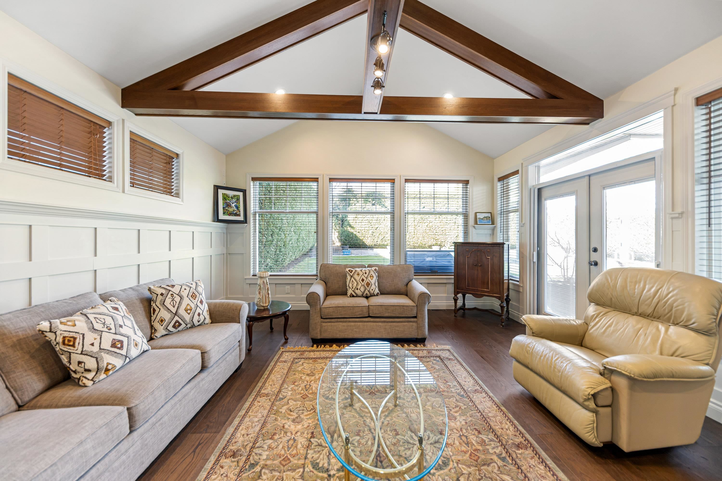 Well-maintained Craftsman on West Marine Drive. This 4 bed, 4 bath home offers 3,824 sq. ft. of comfortable living space on a 10,500 sq. ft. lot. Quality finishings throughout. The main floor features a dining room, den, spacious great room with gas fireplace, and an open kitchen. Flexible layout with 2 primary bedroom options, including one on the main and a second large bedroom w/ ensuite upstairs. The upper level also offers 2 additional bedrooms. A newer solarium, furnace, hot water on demand, and A/C a...