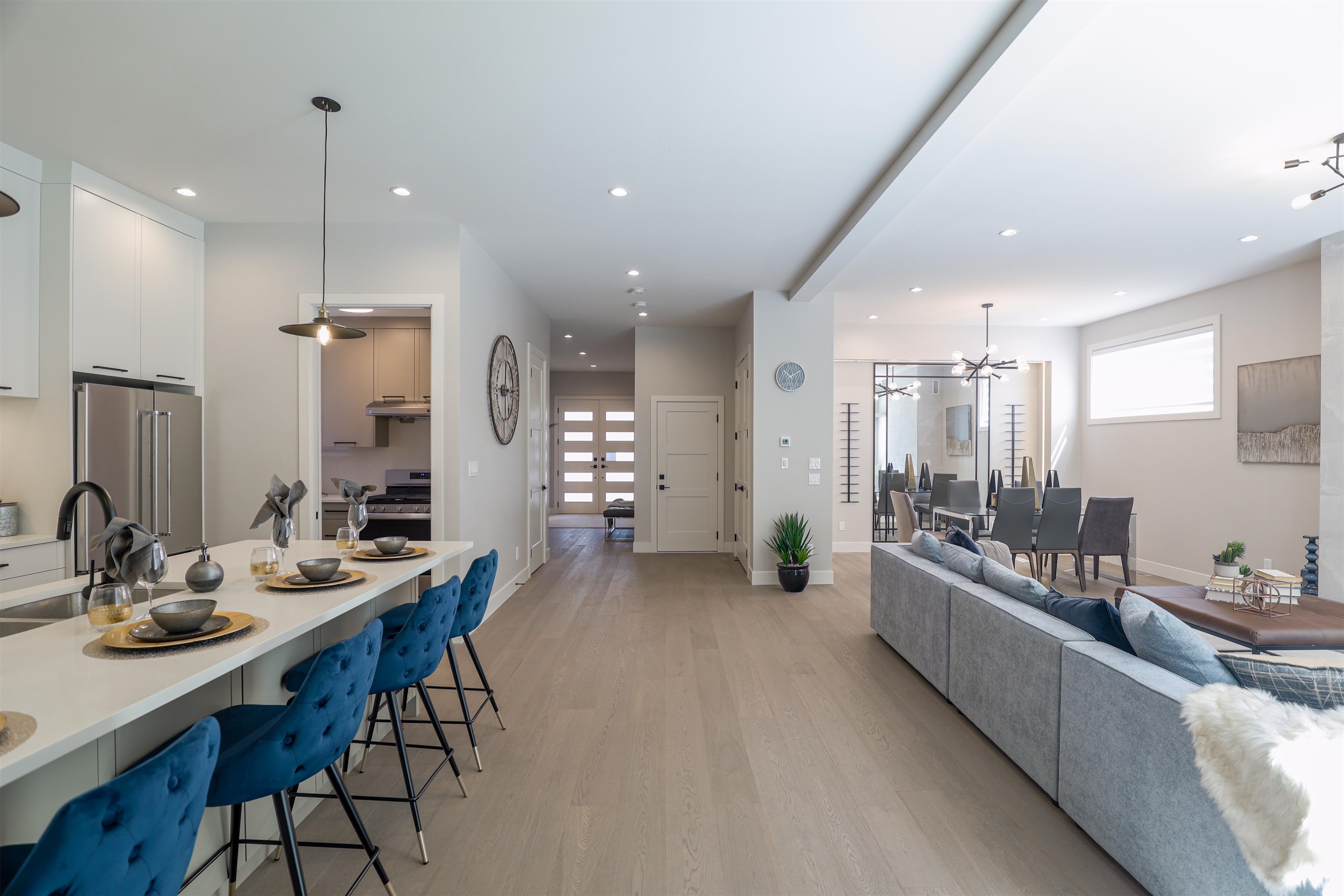 Experience refined living in this stunning custom home, ideally situated in the heart of central Coquitlam. Surrounded by nature, the property offers serene creek views and privacy. Expansive windows invite in abundant natural light, while the open-concept layout creates a seamless connection between indoor and outdoor spaces. This elegant residence, built by Noura Homes, features 6 bedrooms, 5 baths, 2 bedroom legal suite for a mortgage helper or extended family, air conditioning for year-round comfort, an...