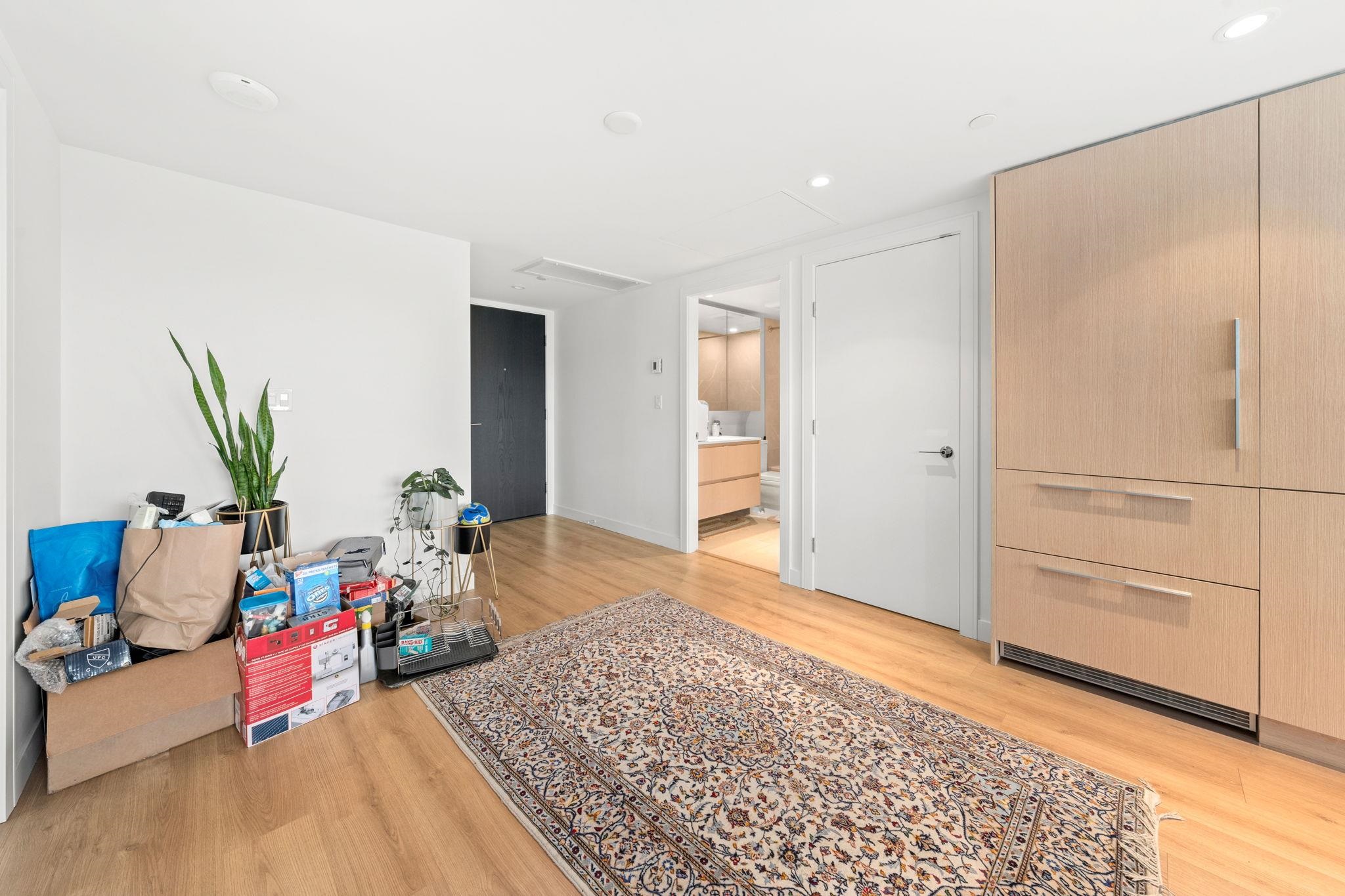 Considered the 'Pinnacle of Seylnn Village', this 2 bedroom, 2 bath suite in Denna's newest building, APEX, offers views from the city skyline to the North Shore mountains. This NW corner unit features an expansive balcony with gas hook up, floor to ceiling triple glazed windows, European cabinetry, Quartz counters and AC. . Premium AEG appliances are integrated into the stylish kitchen interior and an expansive island which offers great room separation from the living areas also offers a convenient spot ...