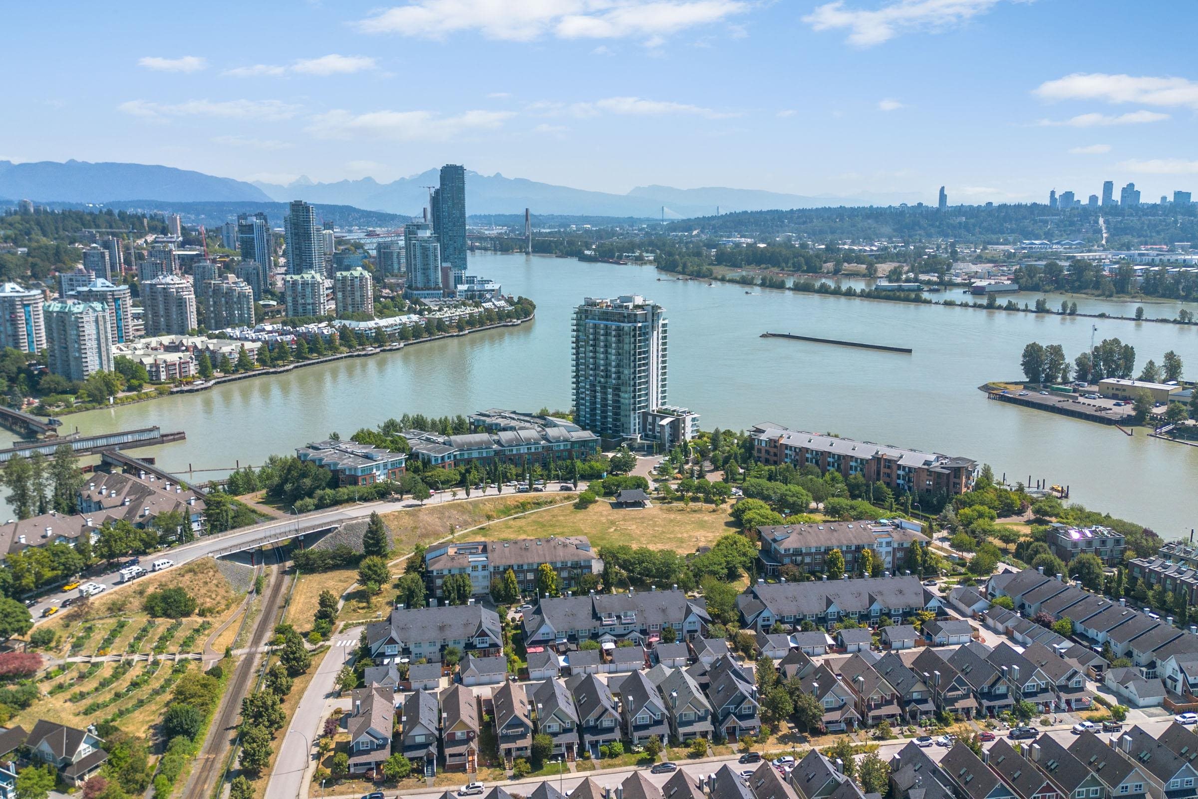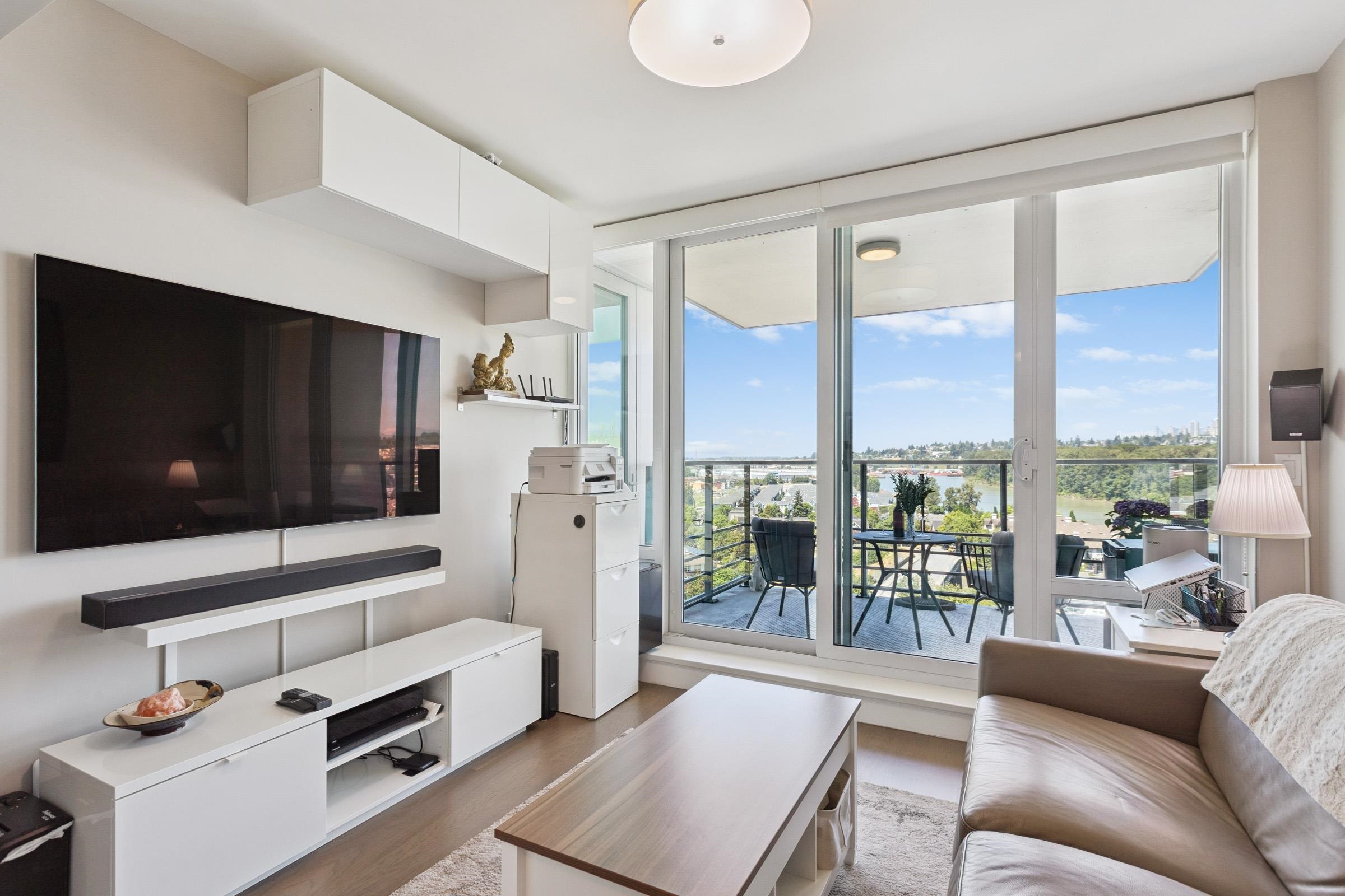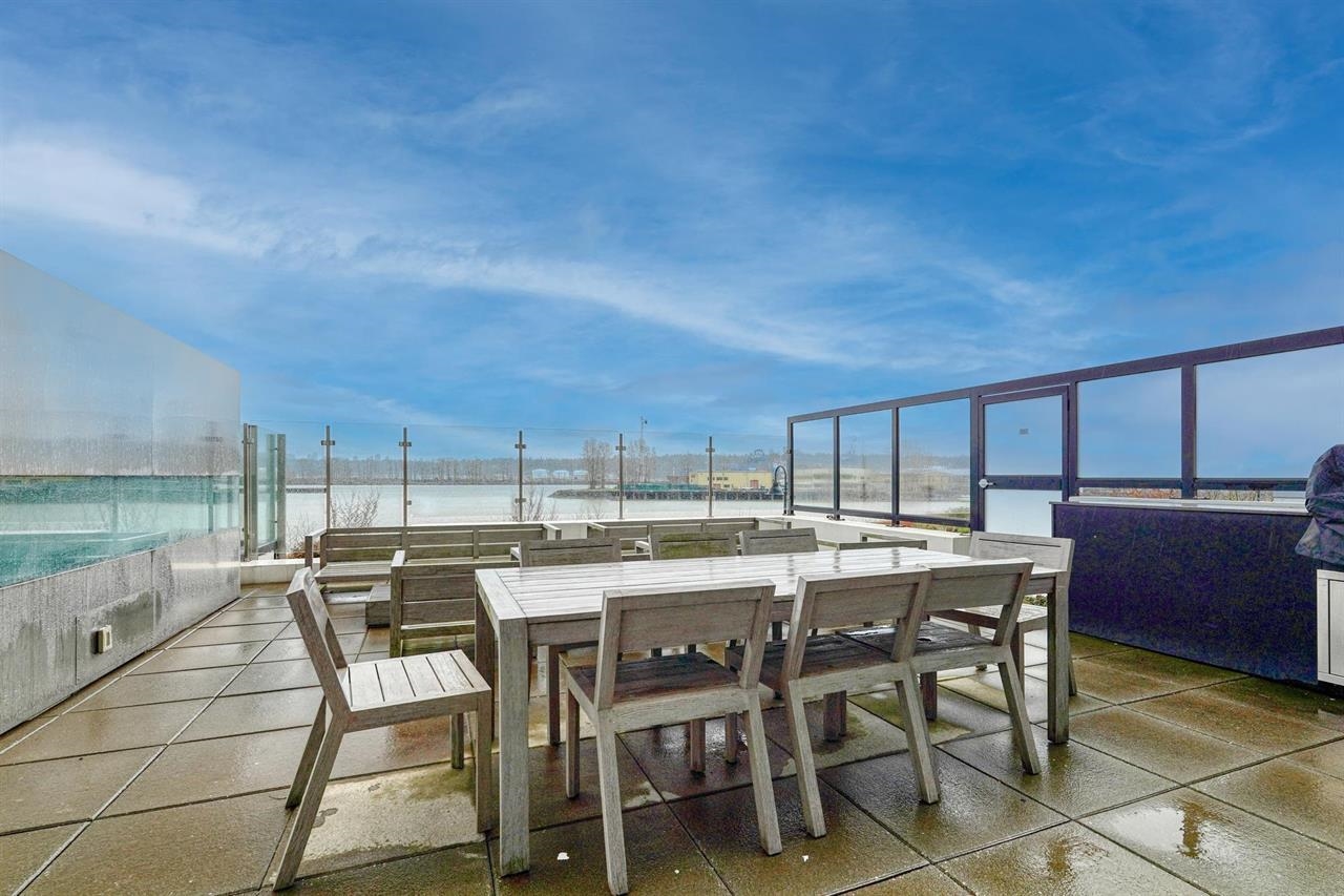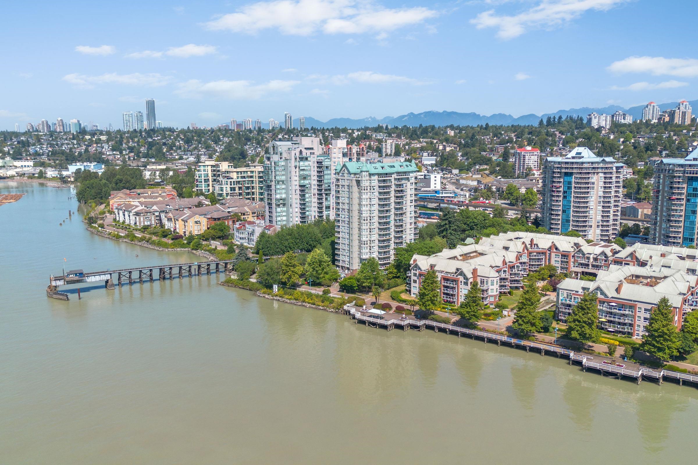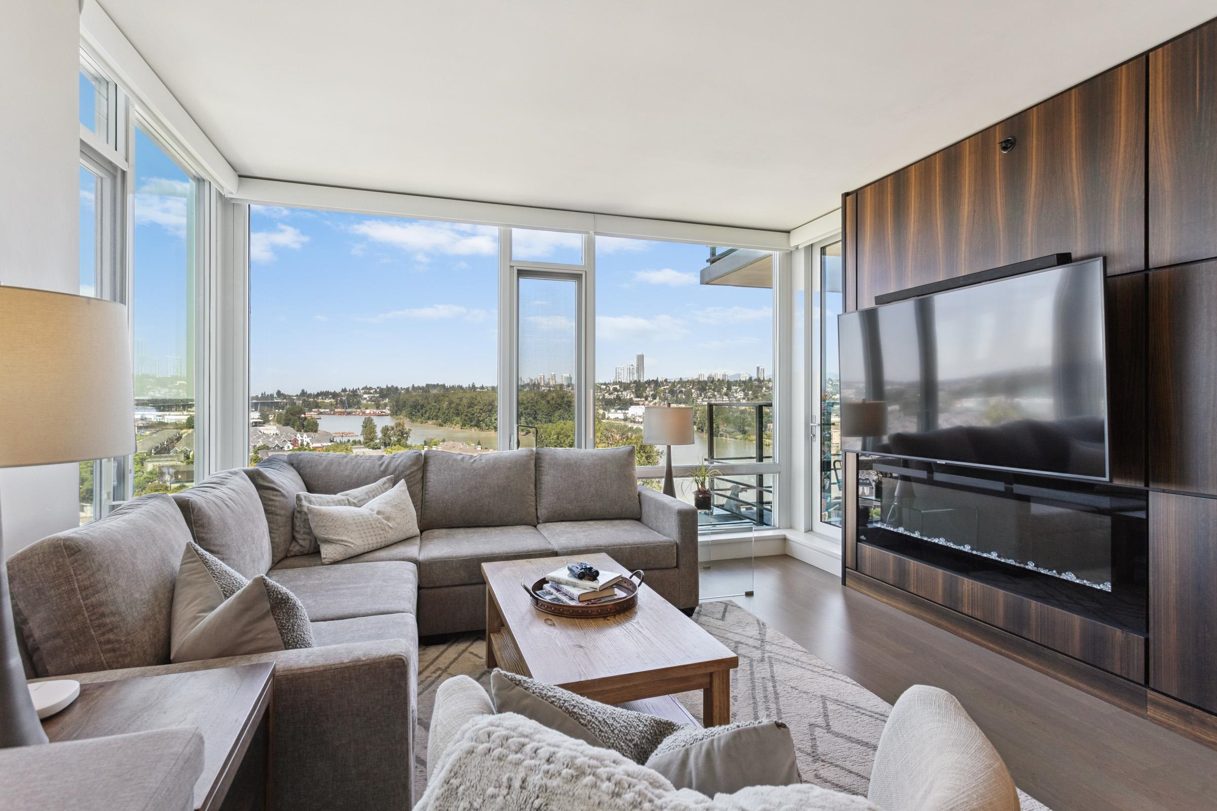 Welcome to THE PENINSULA, New West's crown jewel of Port Royal, the pinnacle of timeless modernity. Redefining luxury with high-end finishes, appliances and resort amenities (jacuzzi, guest suite, steam/amenity/billiard/cinema rooms + more), this METICULOUSLY maintained corner/end-unit features over 1200 sq ft of panoramic views of the river, mountains + city, TWO large bedrooms each w/ ensuite, + extra powder room and TWO private balconies. Open floor plan to entertain from your chef's kitchen with gas sto...