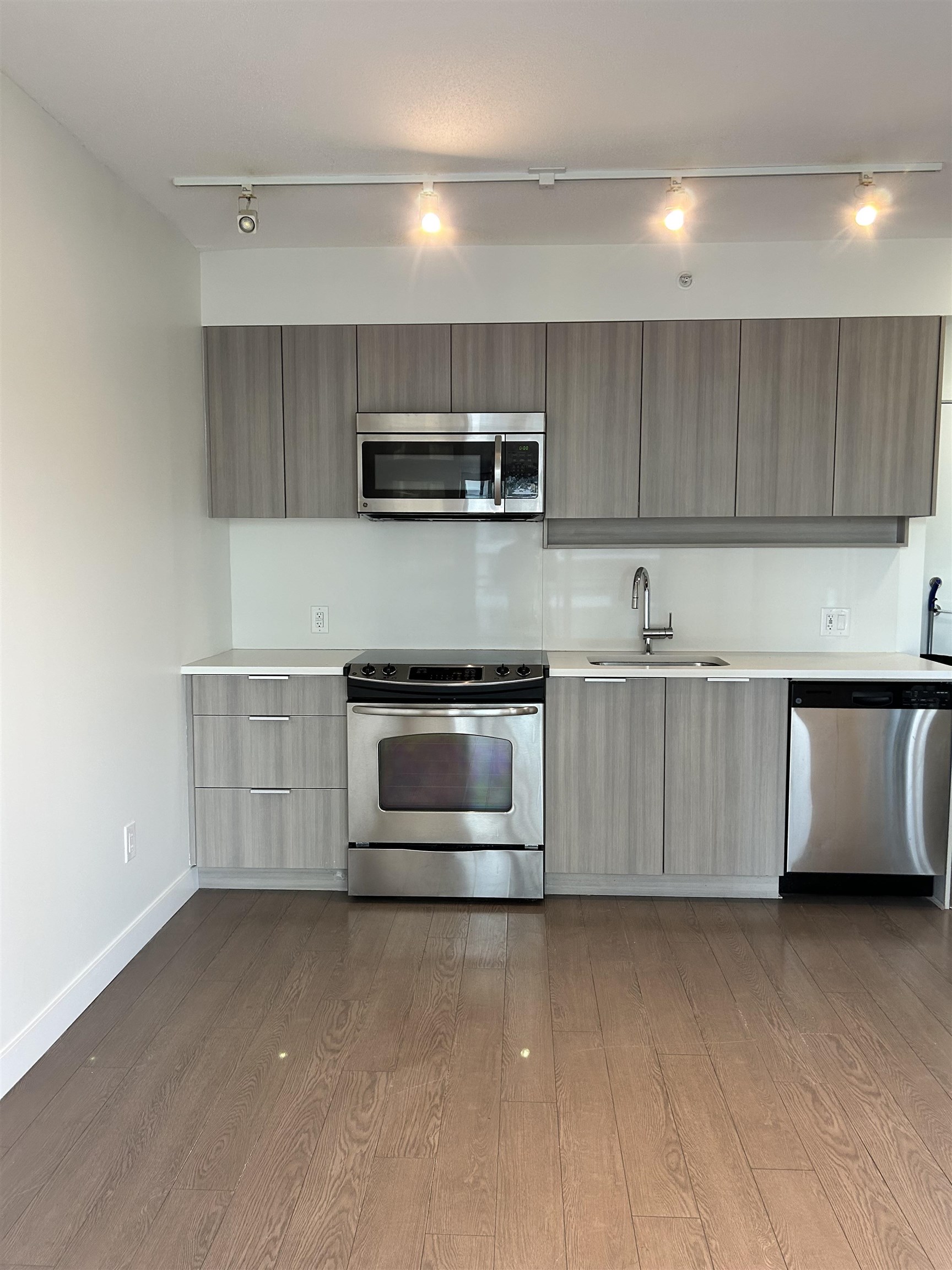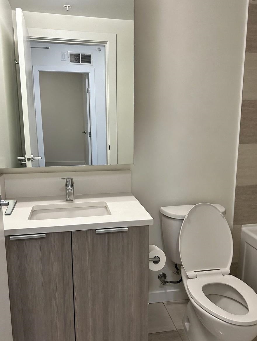 Welcome to Evolve in Surrey City Centre! This modern junior 2-bedroom, 1-bath rental offers a bright, efficient layout with floor-to-ceiling windows and contemporary finishes. The open-concept design includes a functional kitchen, comfortable living area, and versatile den—ideal for a home office. Steps to SFU Surrey, SkyTrain, Central City Mall, restaurants, and parks. Enjoy access to a fitness centre, meeting rooms, and rooftop lounge. Modern living in a prime location!