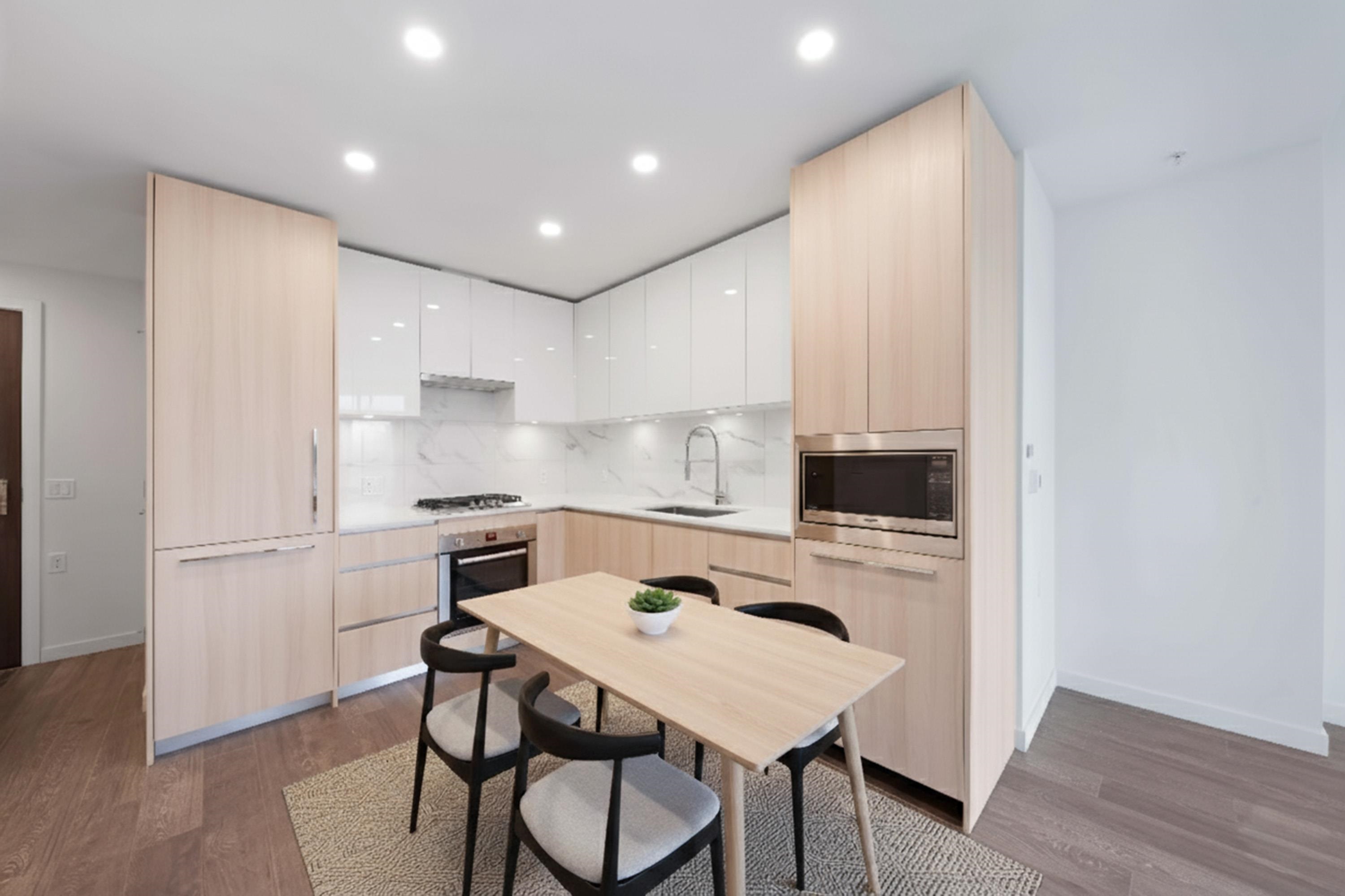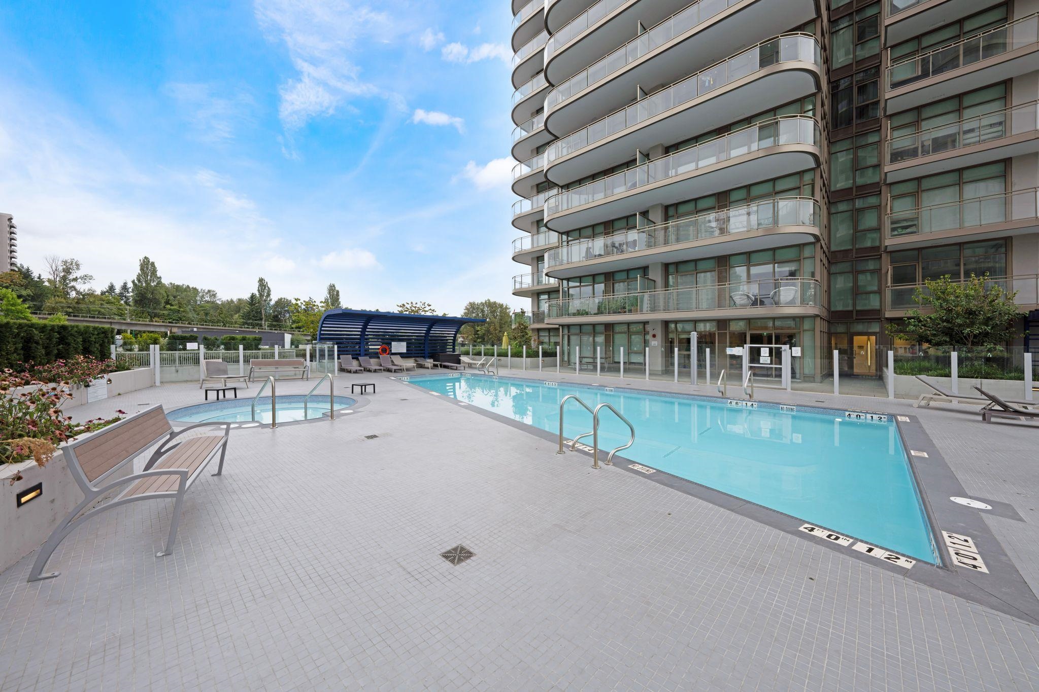 Priced to sell !!! Immaculate 1 bedroom + den home in the heart of Brentwood with a functional floor plan and unobstructed south facing views offering natural light all day. This like new unit features central A/C, modern finishes, and is exceptionally well maintained. Enjoy unbeatable convenience just steps from Brentwood Mall, SkyTrain, Whole Foods, restaurants, cafes, and daily essentials. The building offers resort style amenities including a fully equipped gym, outdoor pool, hot tub, steam room, concie...