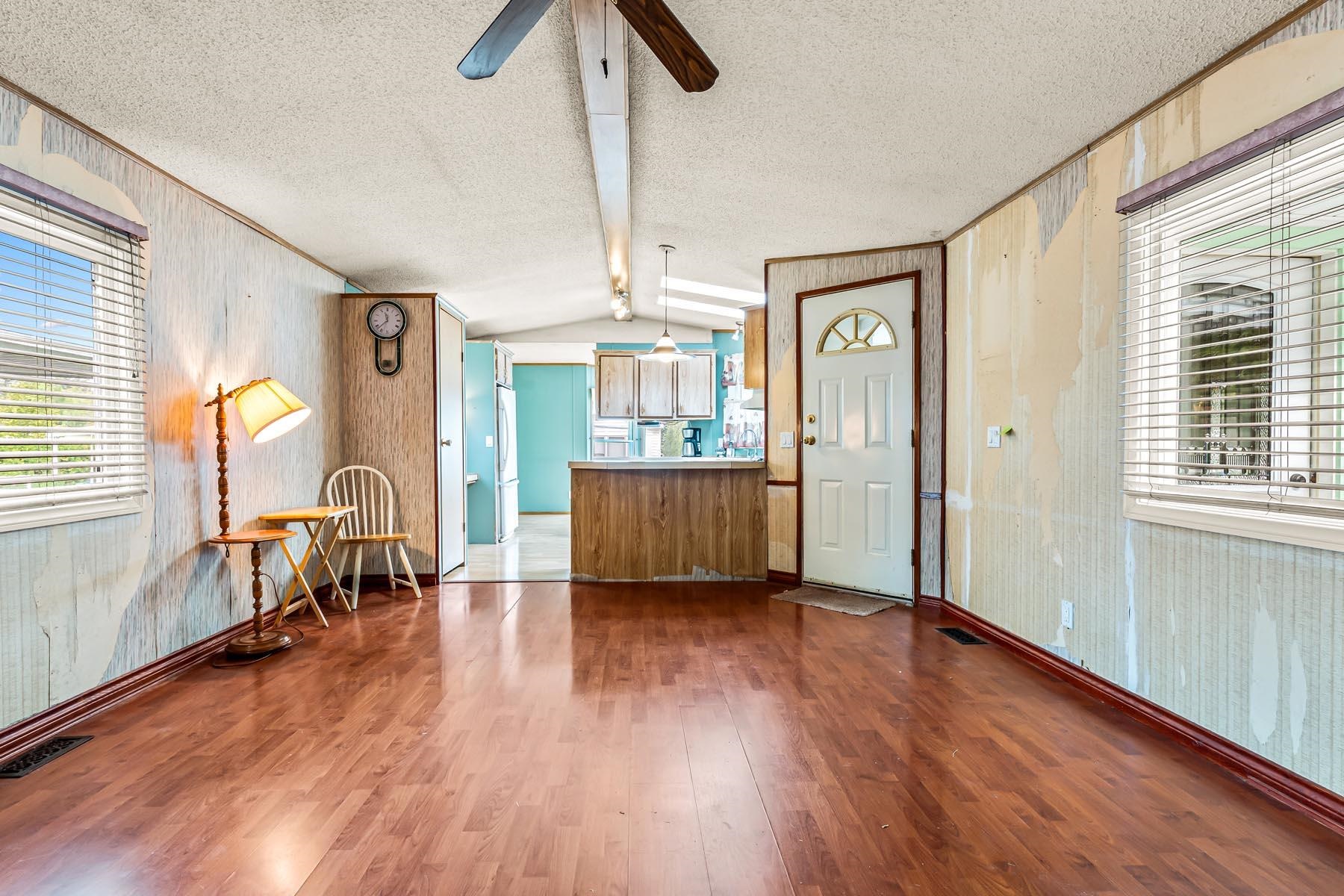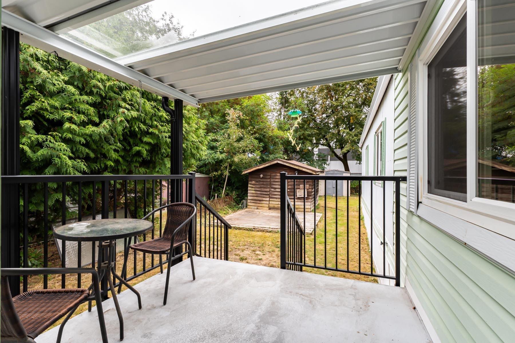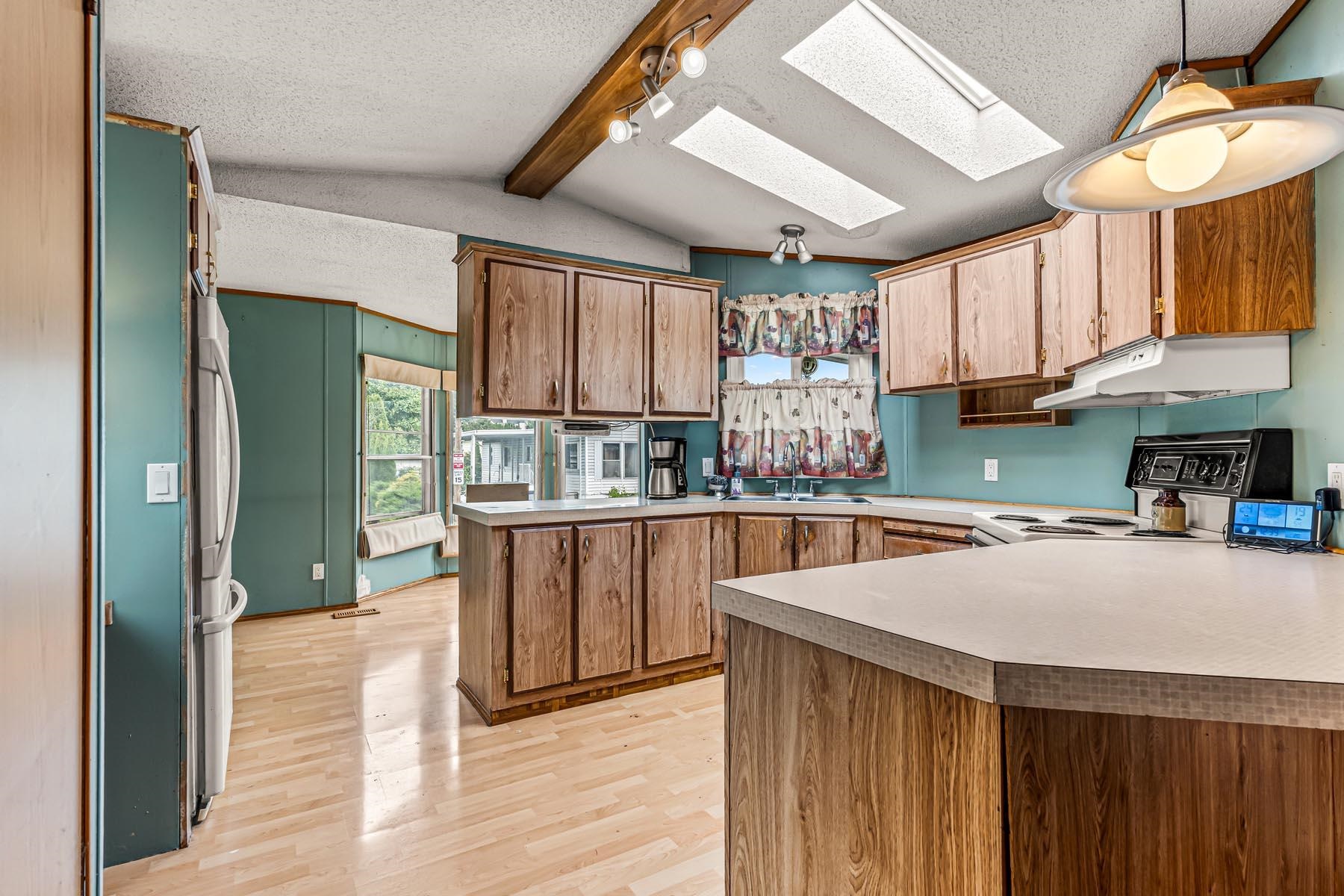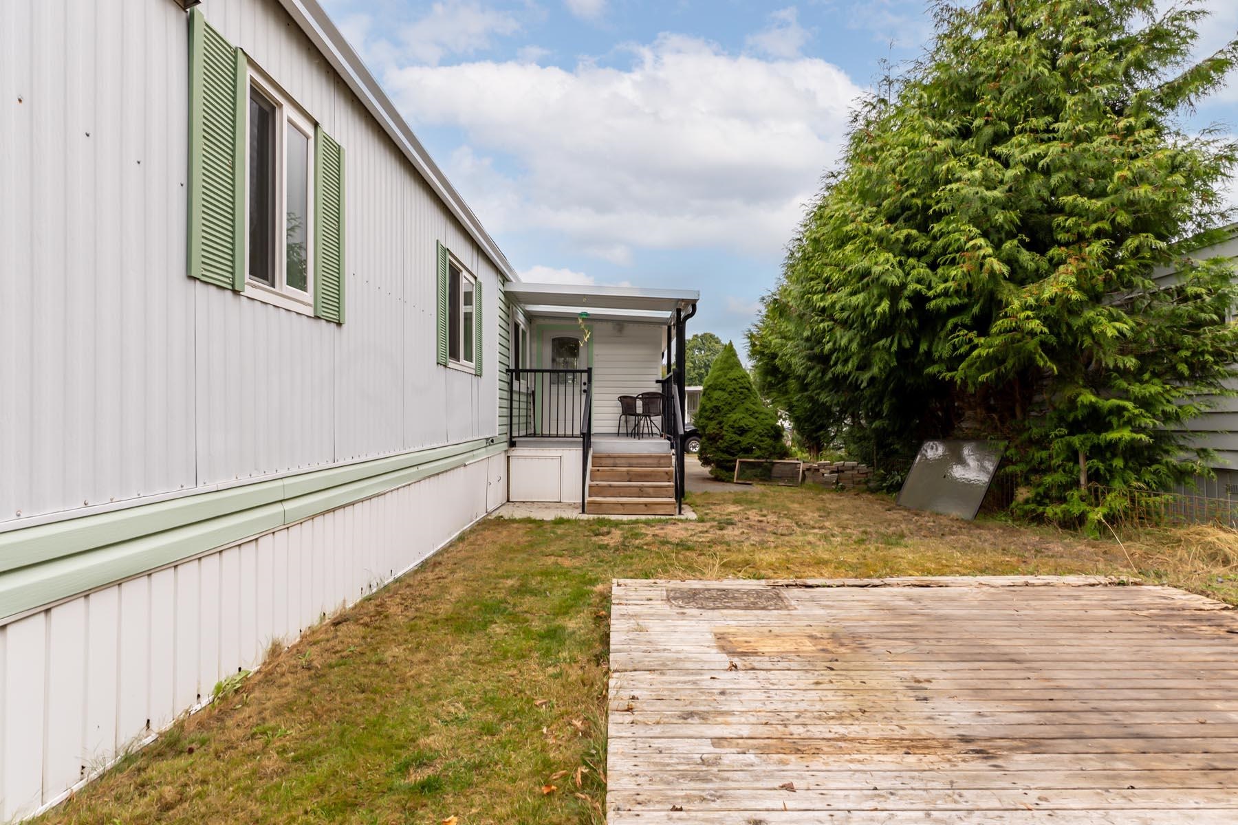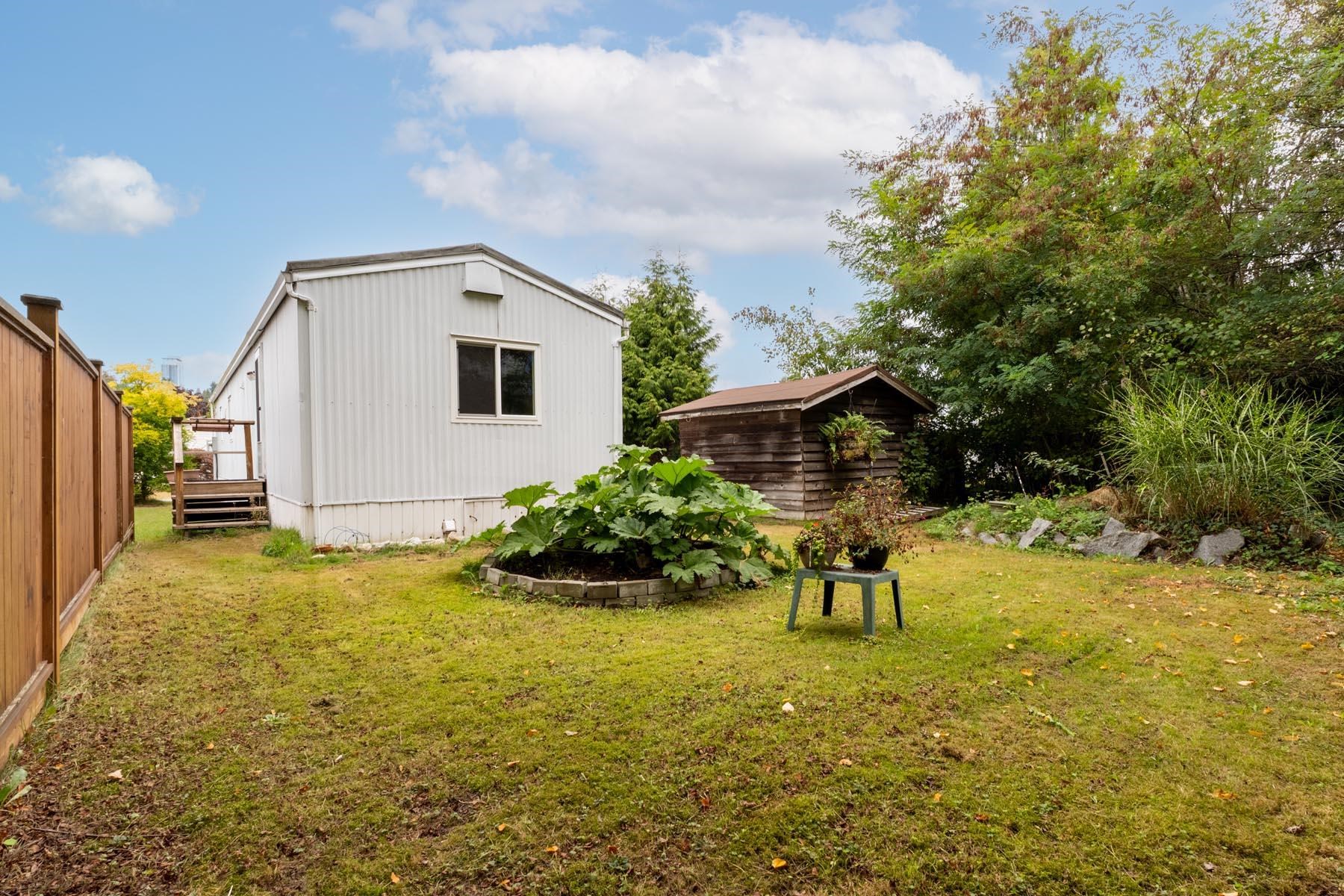 Welcome to this well-kept single wide manufacuted home, ideally located on the perimeter of the park with a large fenced backyard. This charming home offers 2 bedrooms and 1 bathrooms, with an inviting open-concept living and kitchen area, skylights. Enjoy peace of mind with recent updated including a new roof, furnace and hot water tank. Step outside to a large, fully fenced backyard complete with two storage sheds, offering plenty of room for gardening, hobbies, or outdoor relaxation. The location is unbe...