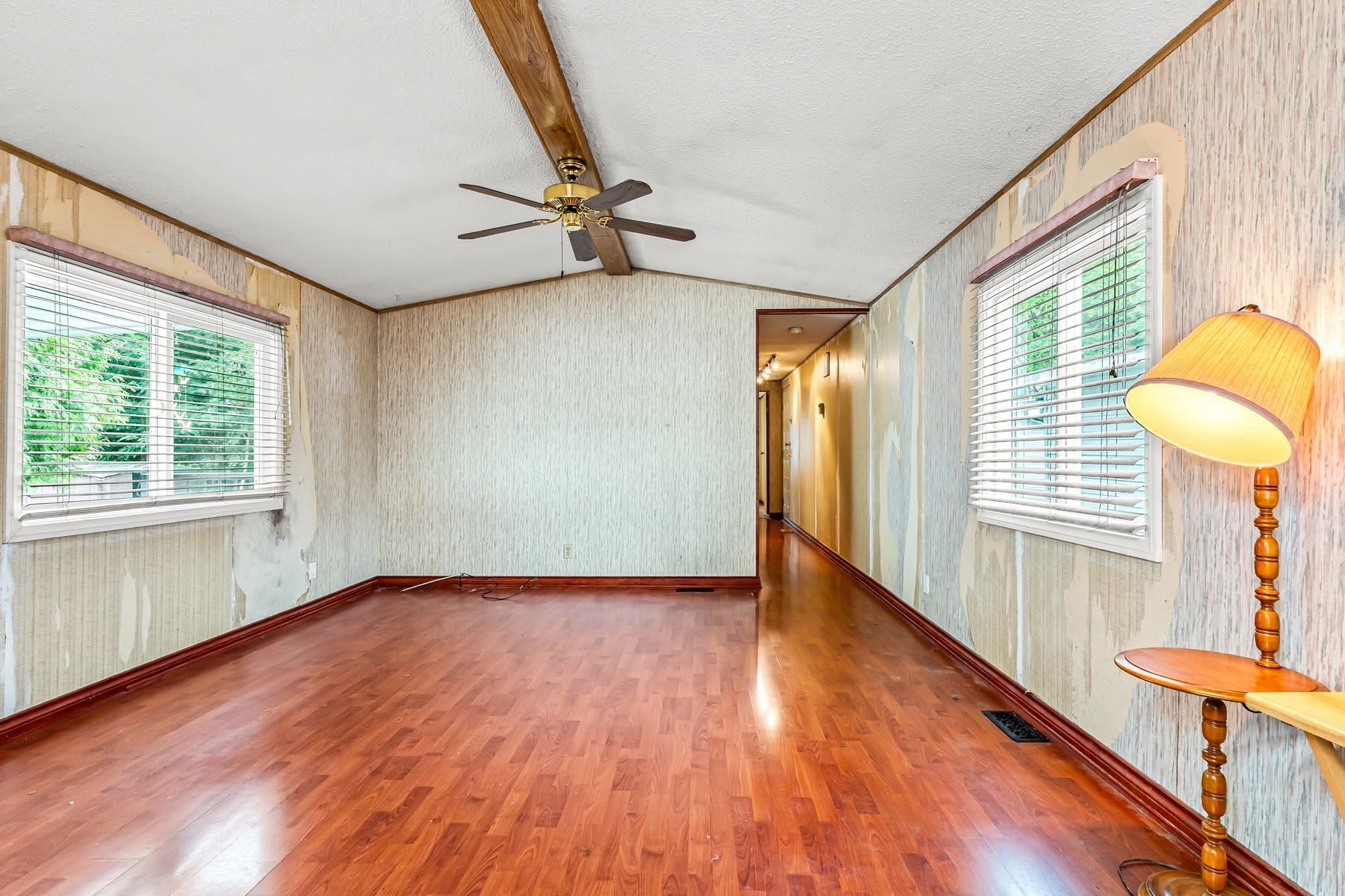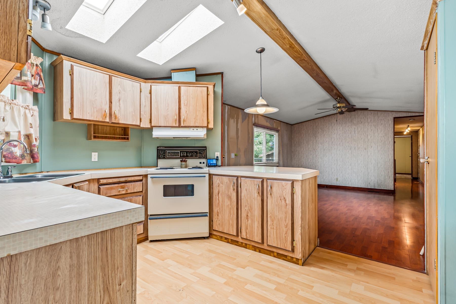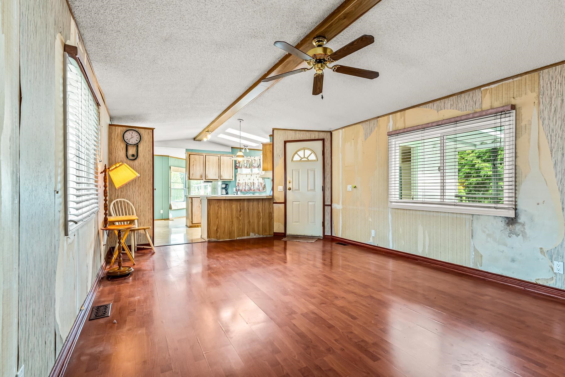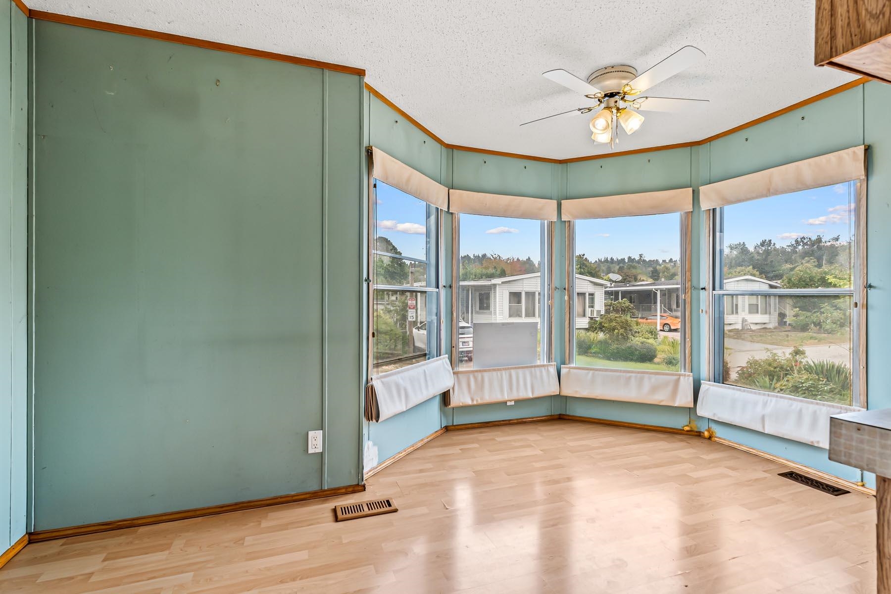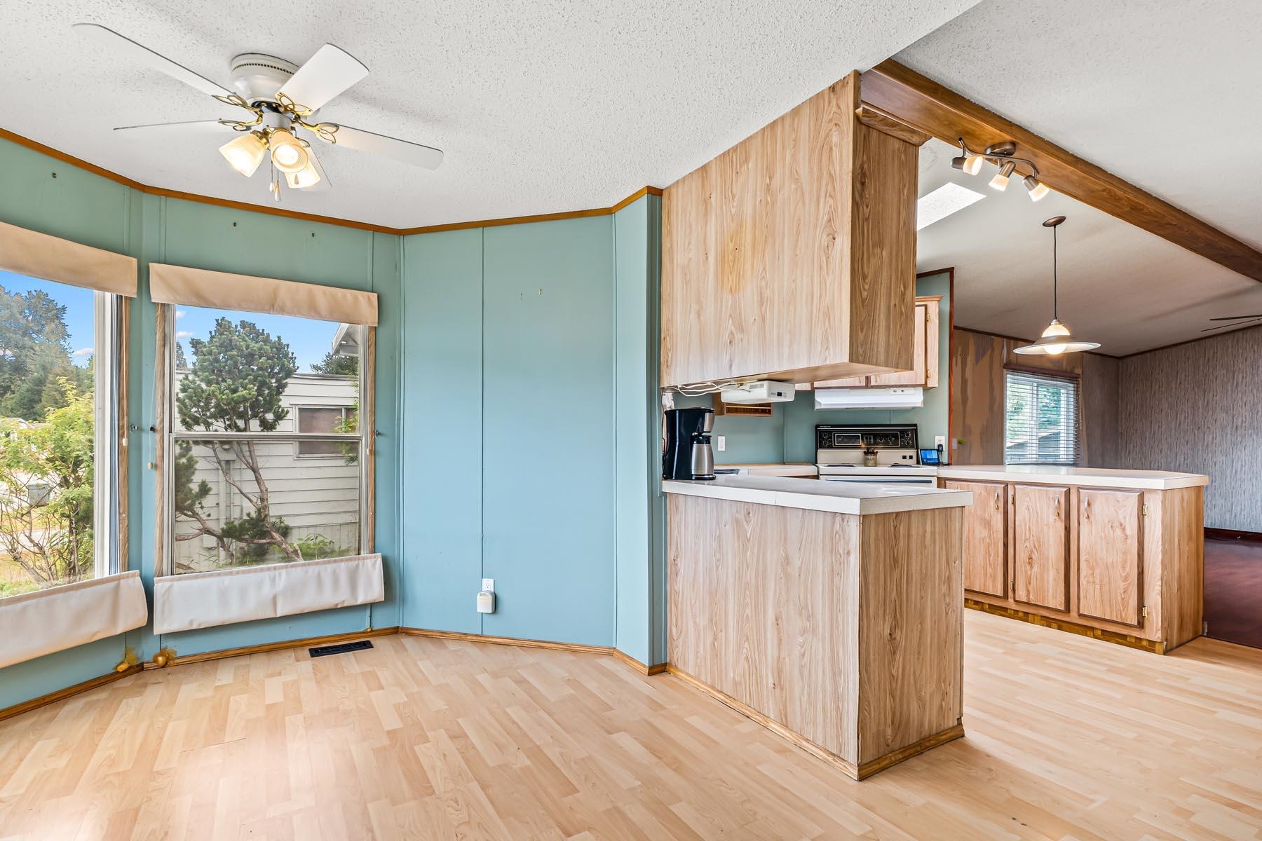 Welcome to this well-kept single wide manufacuted home, ideally located on the perimeter of the park with a large fenced backyard. This charming home offers 2 bedrooms and 1 bathrooms, with an inviting open-concept living and kitchen area, skylights. Enjoy peace of mind with recent updated including a new roof, furnace and hot water tank. Step outside to a large, fully fenced backyard complete with two storage sheds, offering plenty of room for gardening, hobbies, or outdoor relaxation. The location is unbe...