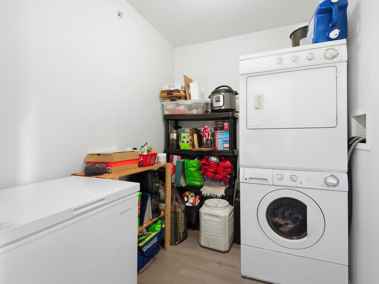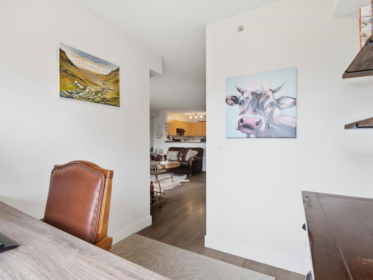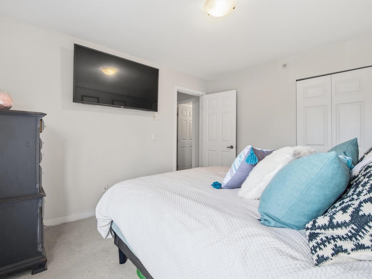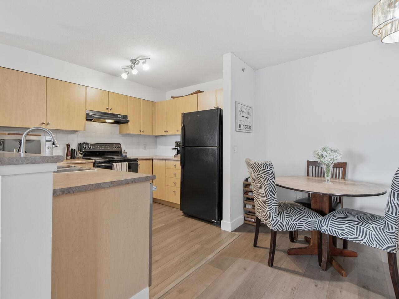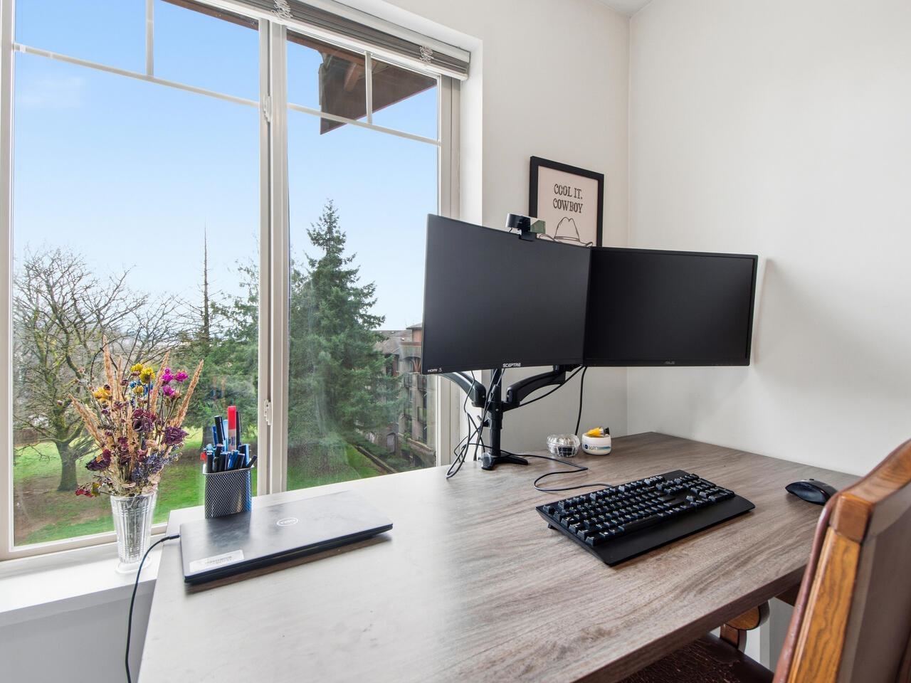This top floor home boasts an incredible park view from the covered sundeck. Stepping in through glass sliding doors, laminate wood flooring bounces natural light throughout. A huge living room sits in front of the breakfast bar & open kitchen with black & stainless appliances on top of luxury vinyl plank flooring. The adjacent dining room is next to the foyer & across from the 7’2x5’8 laundry/storage room also with LVP. The den/home office & primary bedroom with a walk-in closet & brand new carpet take in ...
