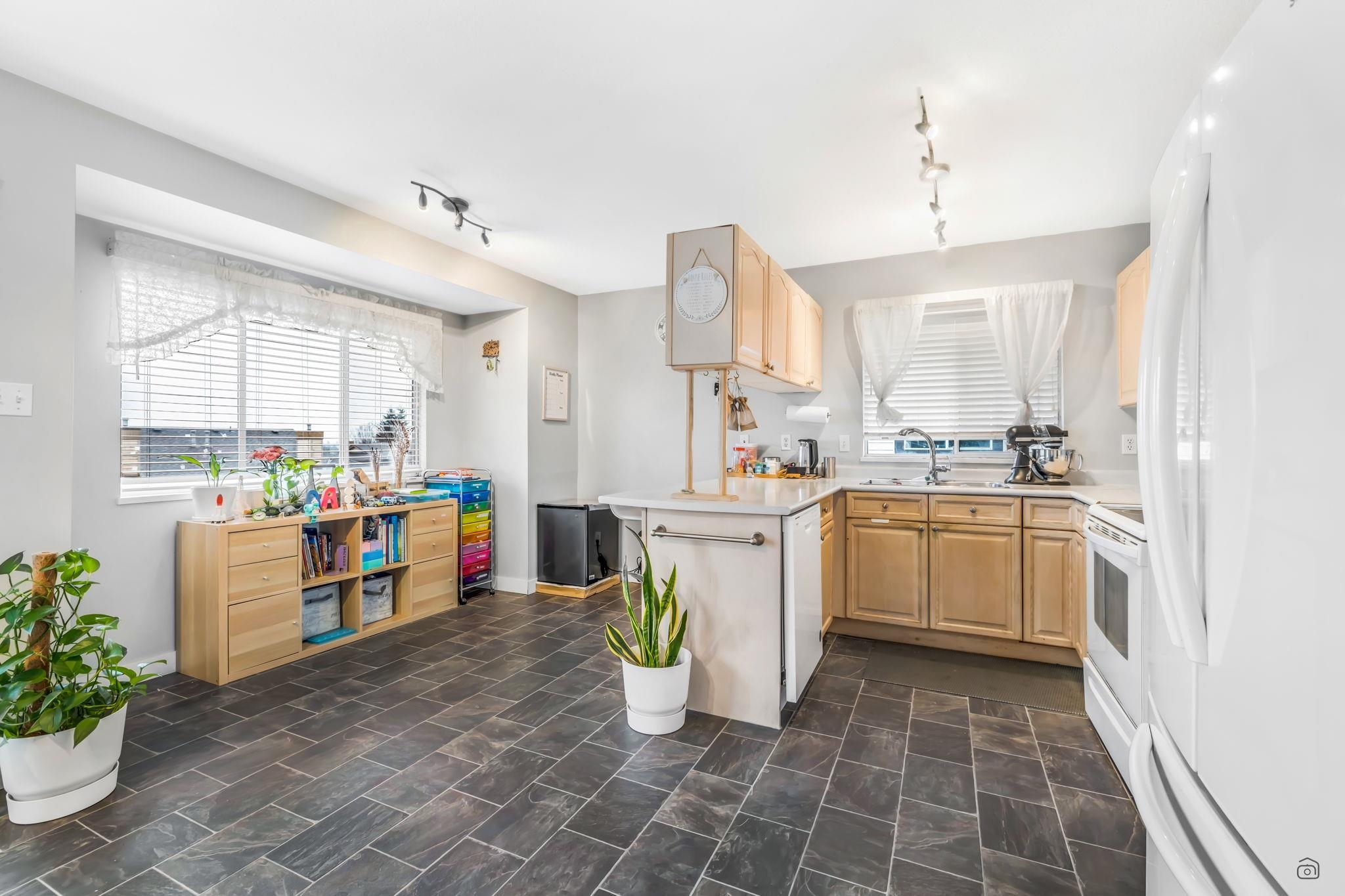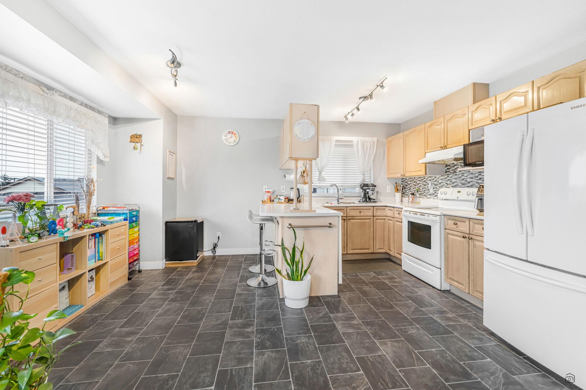 Nice rancher style home with a full basement. 3 spacious bedrooms including large master bedroom with 4-piece ensuite featuring his & hers sink and vanity with ample storage. Open floor plan on main levels creates an inviting atmosphere - great for entertaining family & friends any time of the year. Great Mt. Baker & valley views from the sundeck. Close to schools, shopping, recreation, public transit, restaurants, malls, parks & easy access to hwy.