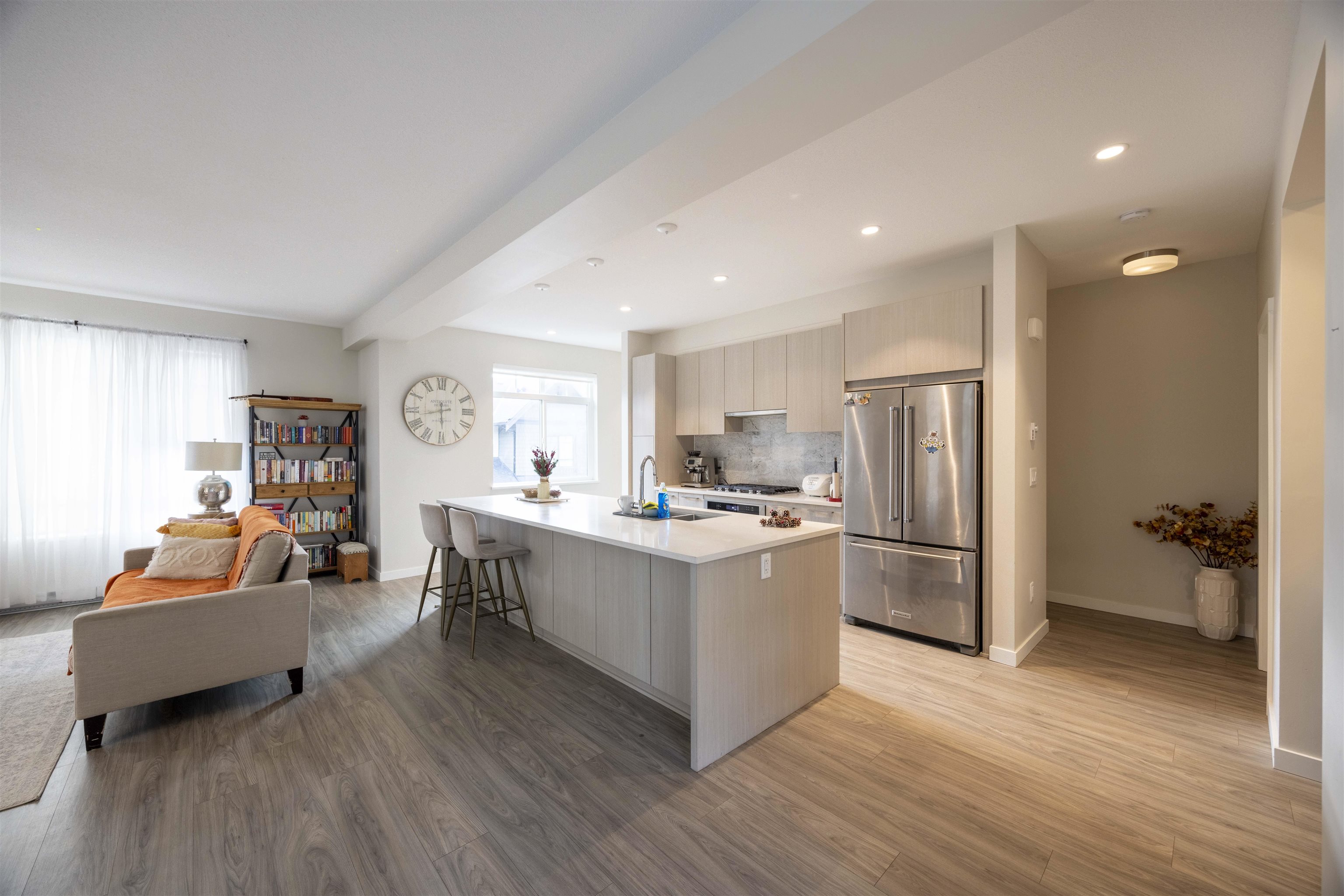 Welcome to BALLANTREE by Polygon, an exquisite 4-bedroom, 3.5-bathroom townhome nestled in the heart of nature on Burke Mountain. This spacious residence features soaring ceilings and a gourmet kitchen centered around a massive stone island, premium SS appliances, and a versatile flex den. Transition seamlessly from the dining area to your private deck for effortless entertaining. The upper level offers a convenient laundry room and three bedrooms, including a luxurious master retreat with a walk-in closet ...