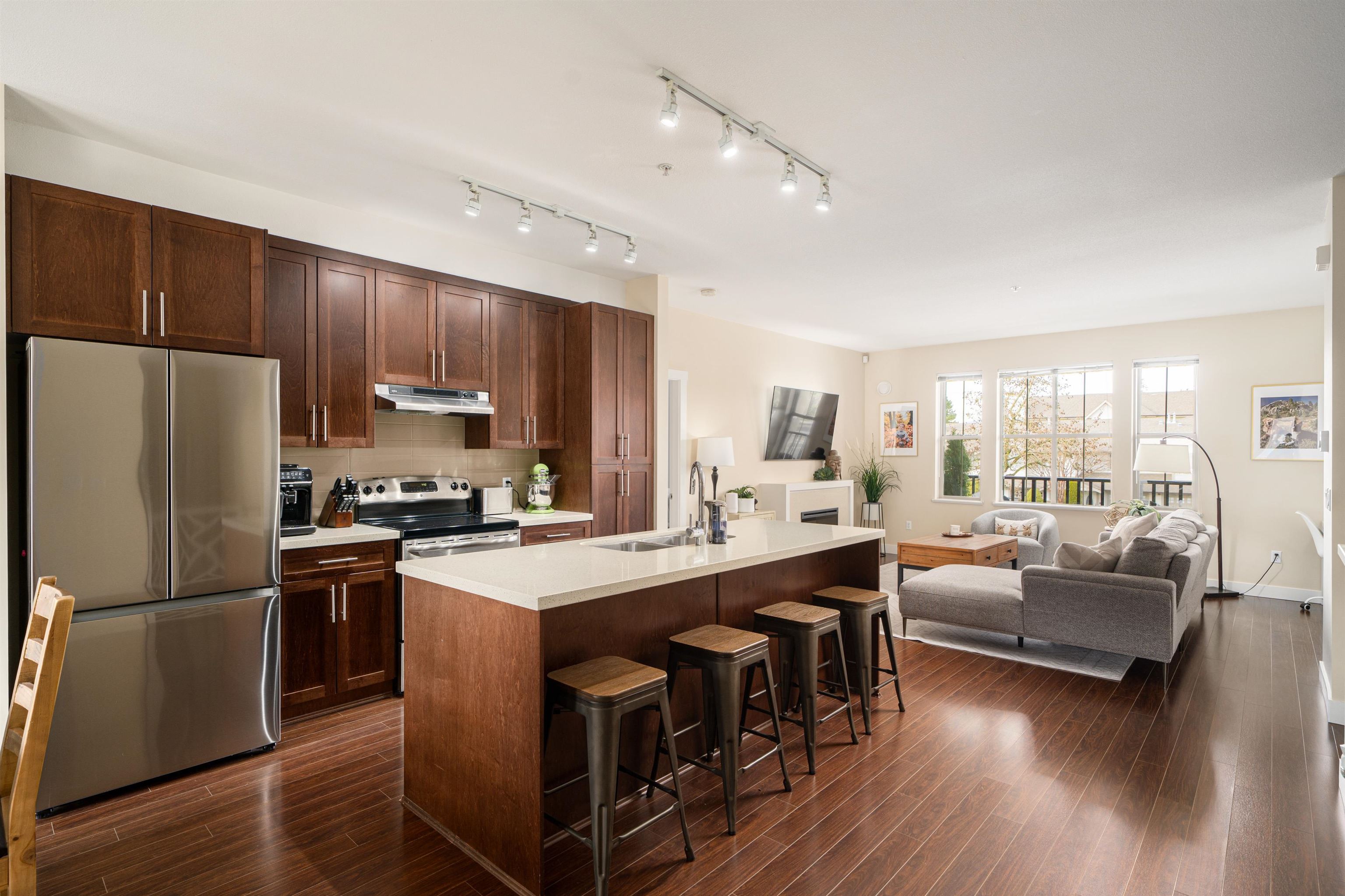 Welcome to Walnut Groves best townhouse complex! This unique layout features 2 bedrooms on the main floor plus a versatile 322 sq ft loft upstairs perfect as a media room, home office, or easily converted to a 3rd bedroom. The open-concept main living area is loaded with upgrades including an electric fireplace with stone surround, quartz countertops, real wood cabinetry, and stainless steel appliances. Enjoy the sunny south-facing dining area and step onto the back deck ideal for entertaining. Located in a...