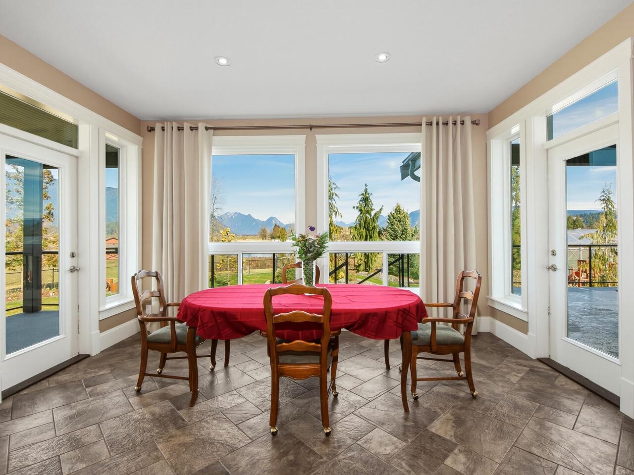 A one-of-a-kind riverfront estate where refined country living, agricultural versatility, and recreational lifestyle meet on a grand scale. Set on a rare 6.24-acre property in prestigious North Meadows, this exceptional offering features panoramic river and mountain views, extensive improvements, and a layout ideal for entertaining or multi-generational living. Large riverfront acreages of this size and privacy are seldom available in Metro Vancouver. Perfect as a luxury estate, hobby farm, or private retre...