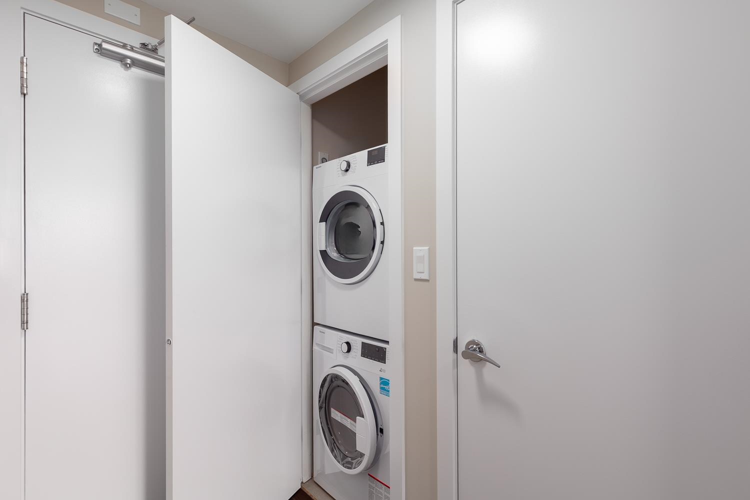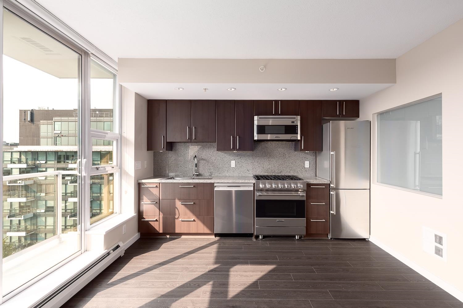 Welcome to Wall Centre False Creek in Olympic Village! This bright and modern condo offers an open layout with floor-to-ceiling windows, a well-equipped kitchen w/ full-size S/S appliances and stone counters. Freshly painted and ready to move in! Enjoy a private spacious balcony w/ wonderful city views. An efficient bedroom set up and large spa like bathroom all contribute to that great unit. Includes in-suite laundry, 1 parking. Building amenities feature a gym, lounge, rooftop gardens, and guest suite. Ju...