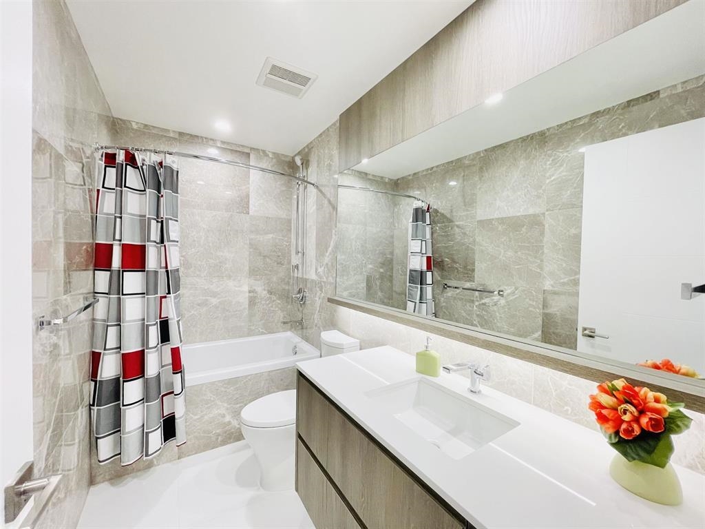 SOUTH FACING (10x QUIETER) NOT facing SkyTrain; Located right at the foot of Metrotown Station; Air Conditioned 9ft ceiling 2 bed 2 Bath w/ Excellent layout & 380 sf Balcony. High End finishing, Italian BVA Cabinetry, Stainless Steel MIELE appliance package (Fridge, Gas cooktop, Oven, Microwave & Hoodfan), Quartz countertops & backsplash, Kohler Kitchen sink w/ Accessories, ALL Marble Tile for bathrooms, Wide plank flooring thru-out & AUTO Roller blinds. Amenities: 24hr concierge, 10,000+ sqft on 11th Flr p...
