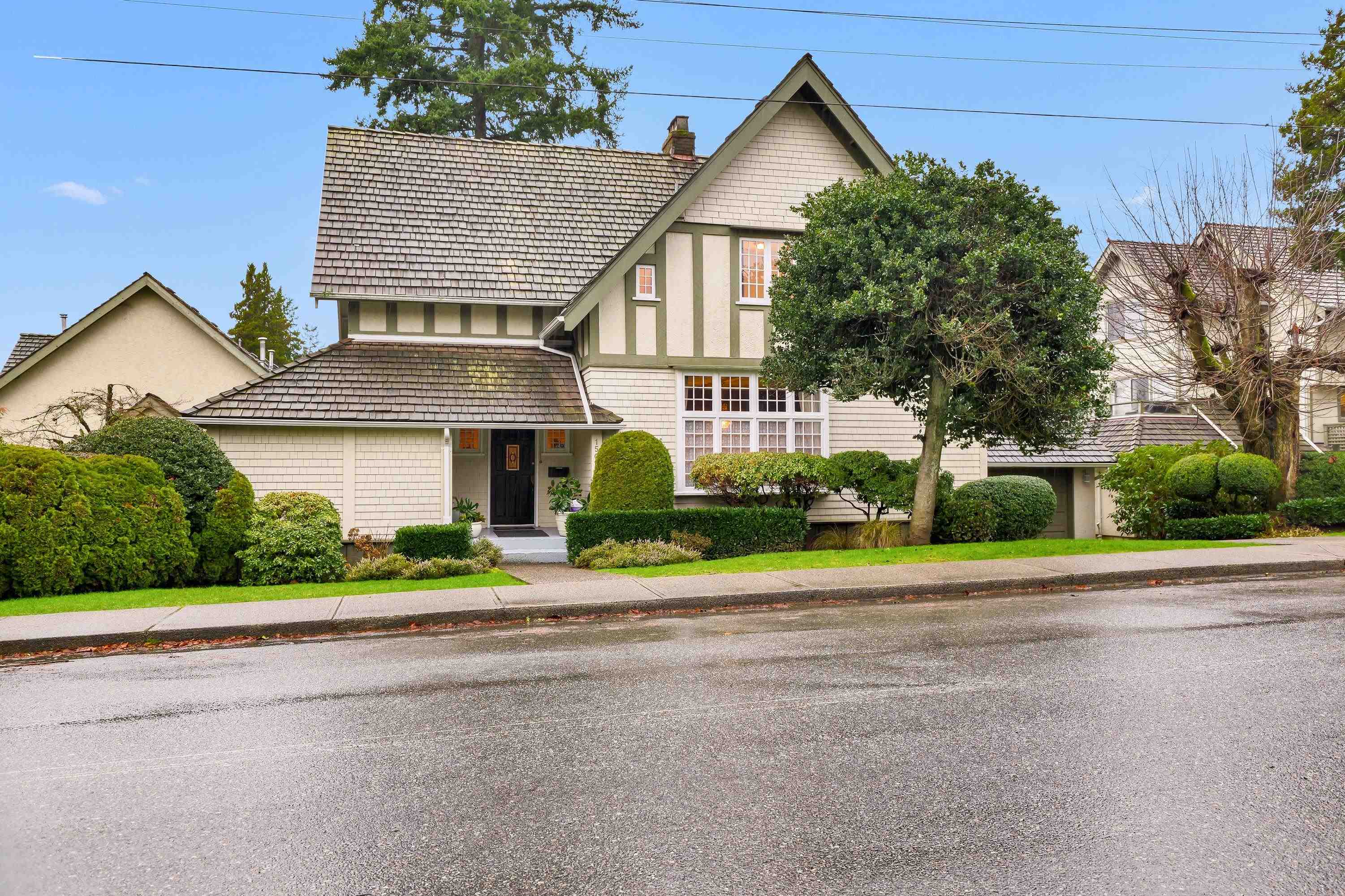 Welcome to the iconic “Kitchin” residence, a rare Tudor Revival home with Craftsman influence. Character-rich gables, half-timbering, mullioned windows, and a wrap-around veranda set the tone. Inside, 10-ft beamed ceilings, wainscoting, and heritage details blend with modern updates which includes wiring, plumbing, kitchen, baths, garage, furnace, hot water tank, carpets and fresh paint throughout. Centrally located near Lonsdale amenities, schools, greenbelts, and transportation. Open House Feb.1st 2-4