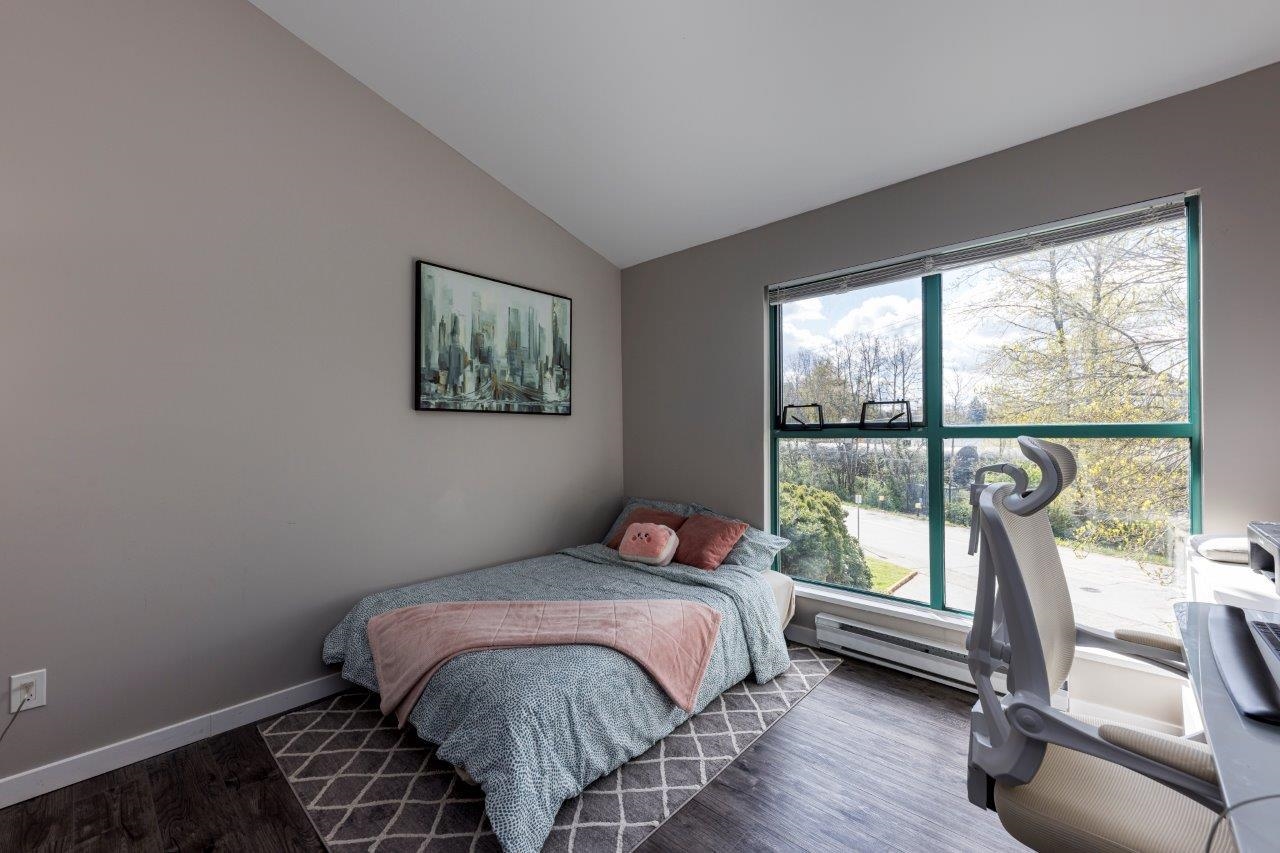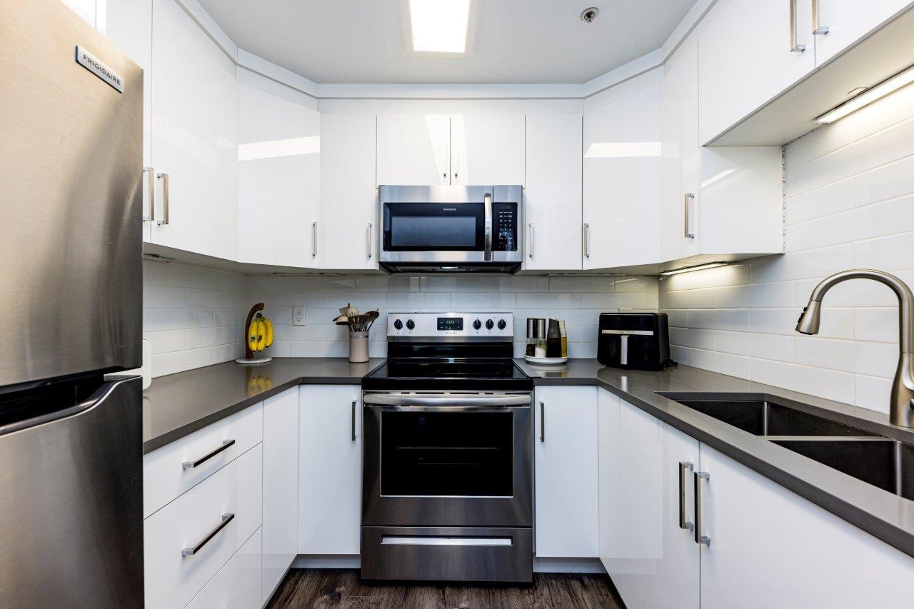 Extra bright and spacious 2 bedroom, 1 bath top floor corner unit suite fully renovated just 5 years ago makes this inviting home completely turn-key. Features stainless appliances, quartz countertops, vinyl plank wood flooring throughout. The large windows & vaulted ceiling immerse you in natural light. Ample sized bedrooms and large bath. Private 129 sq. foot patio is great for Barbecuing and relaxing. Bonus massive sun-filled secure courtyard. Amenity room and gated parking. Super location with Transit, ...
