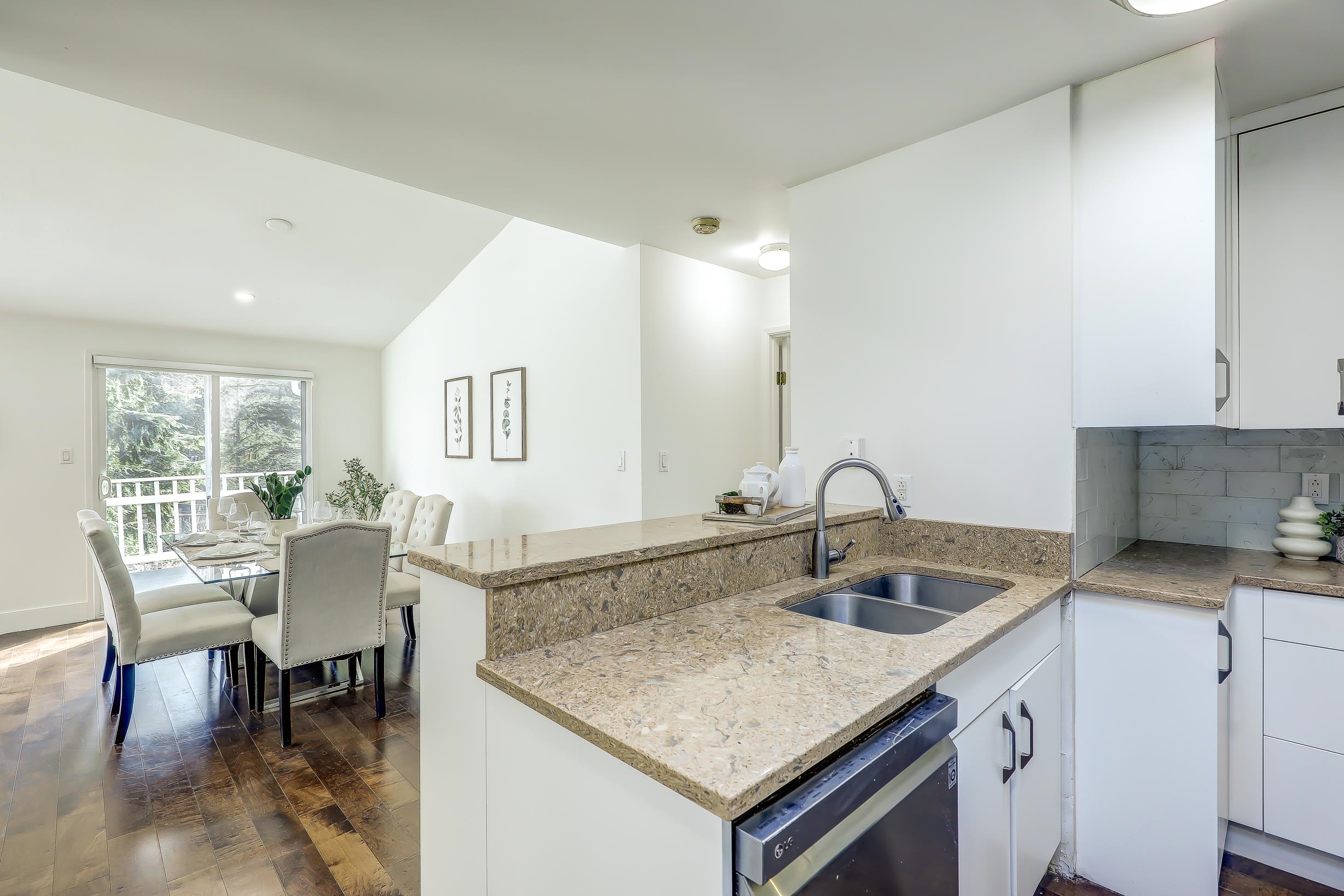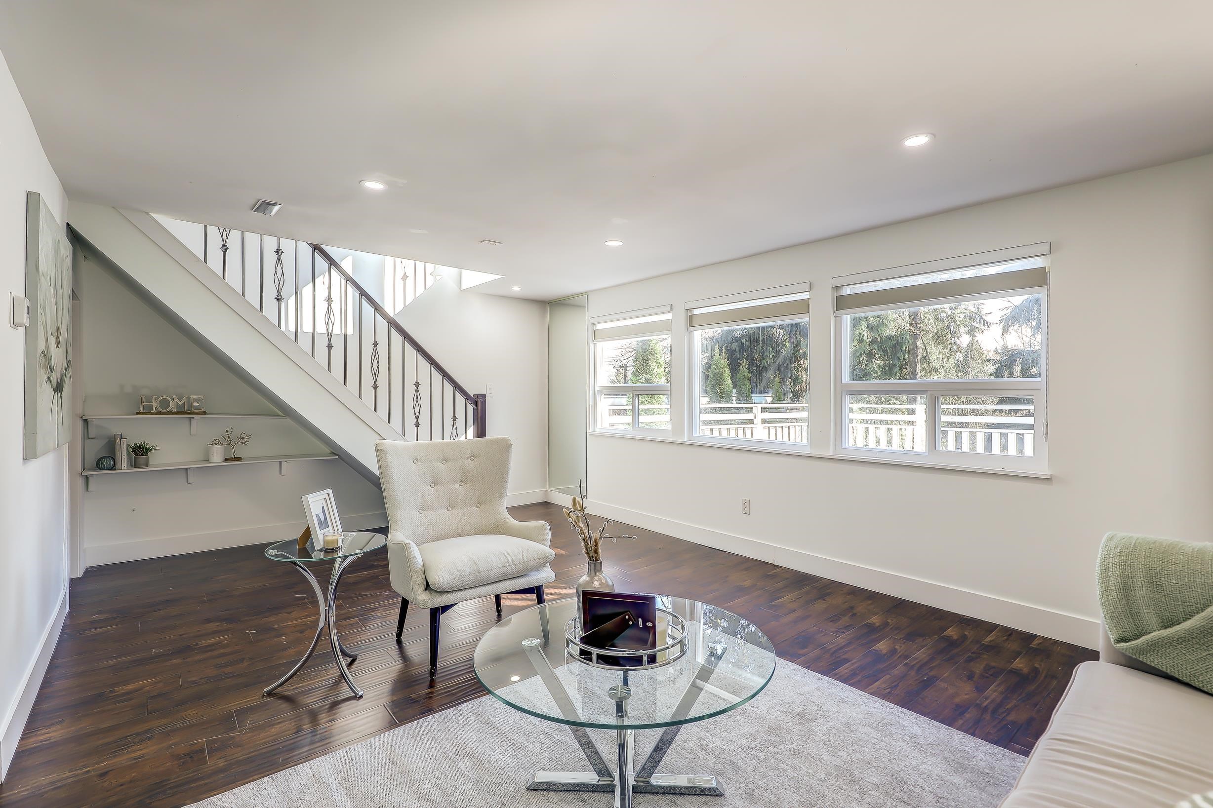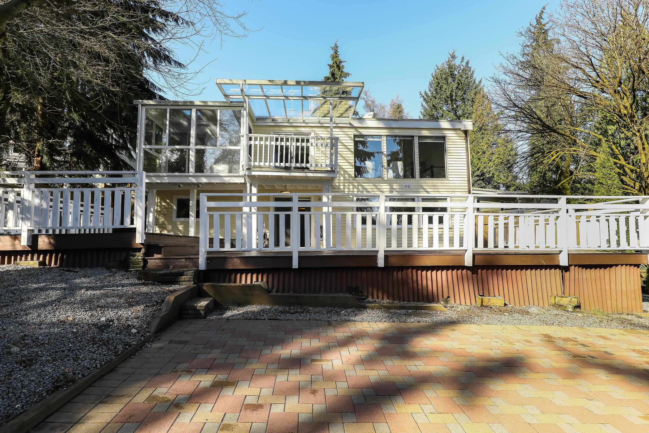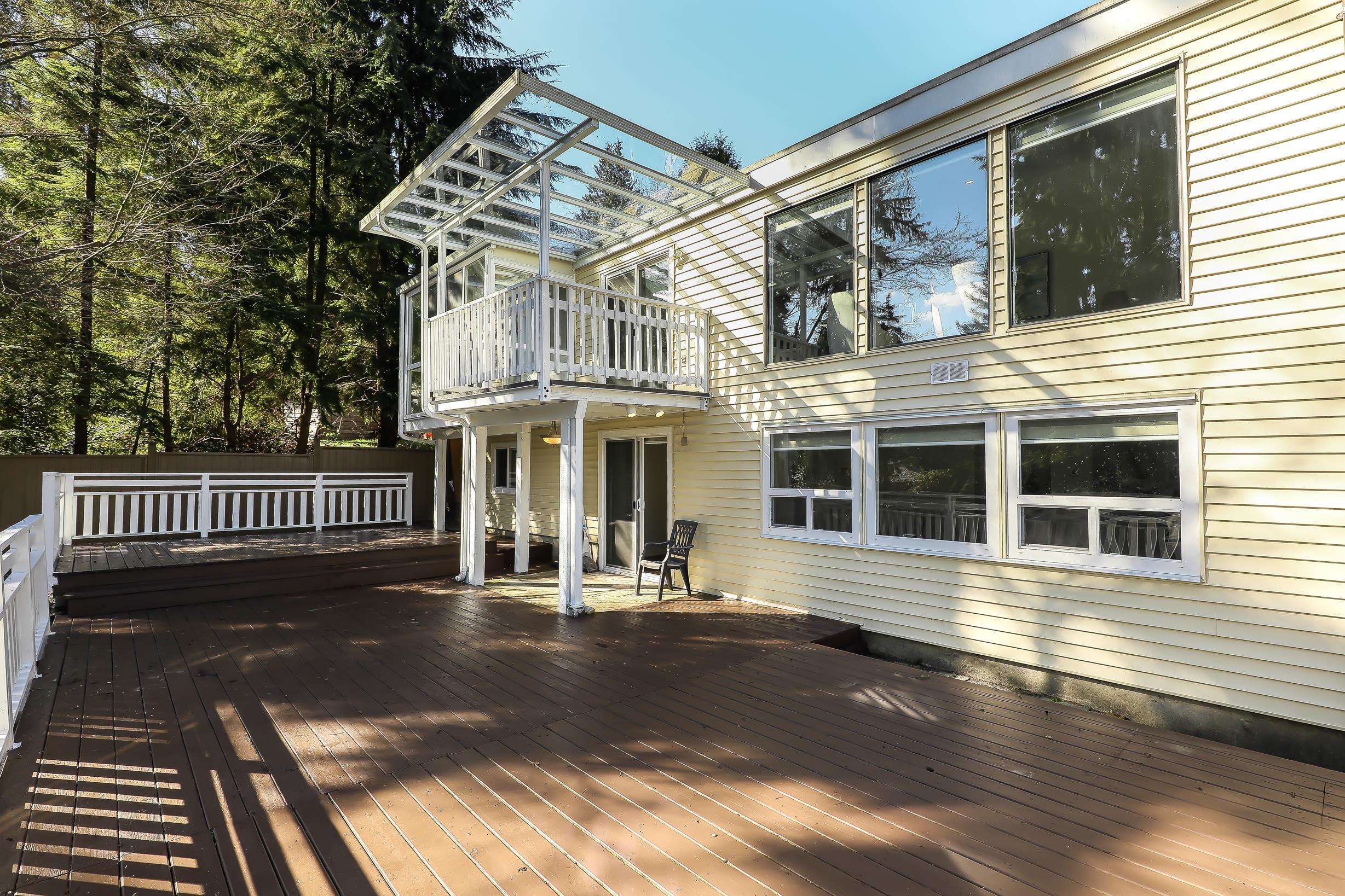 "Four Bedroom Single Family Home at townhome price" Hidden treasure in natural setting w/ravine creek for private backyard. Ocean and mountain view. Renovated in 2024. Freshly Painted. Open-concept kitchen. Dining area and large family room for entertaining. Balcony with stunning inlet & mountain views. Cozy sunroom for year-round use. Multiple storage options: separate storage unit, carport storage, and large basement storage. Covered carport parking along with two more parking. 2 Bedroom unauthorized base...