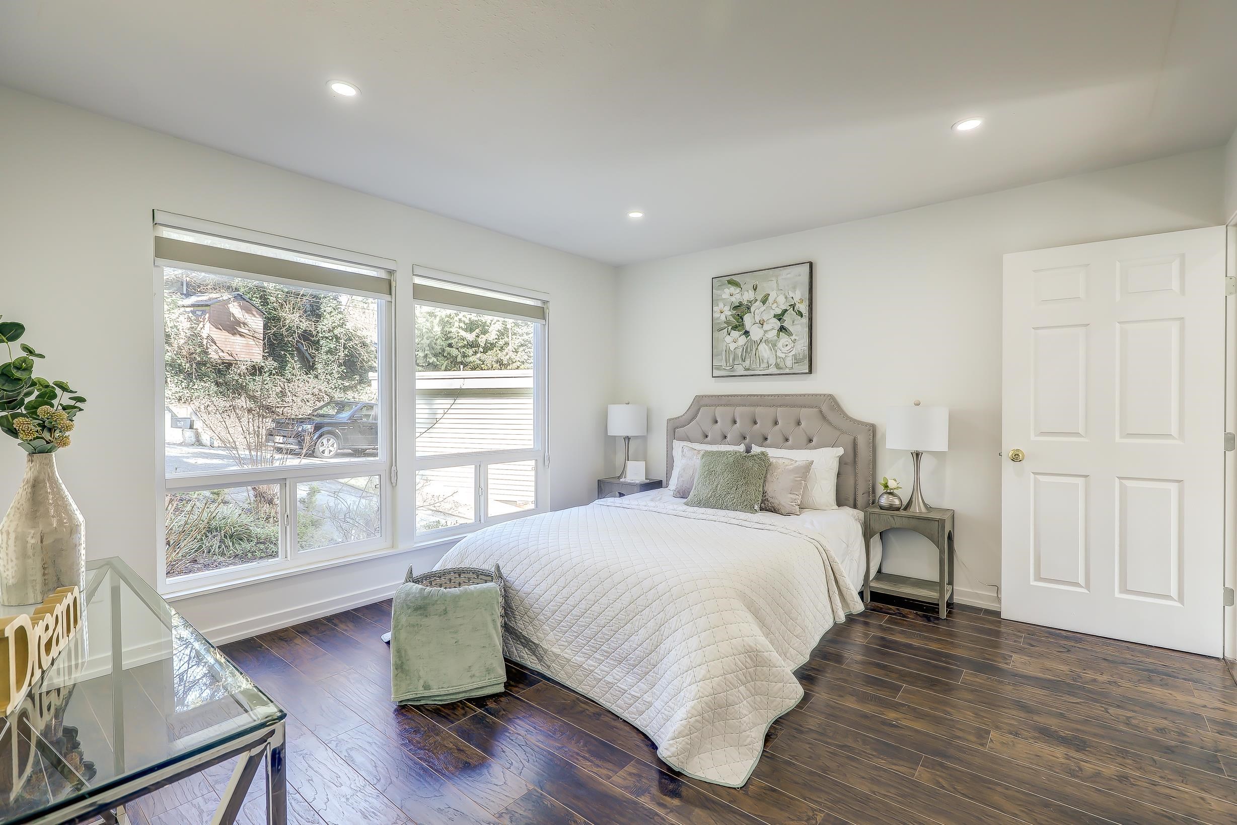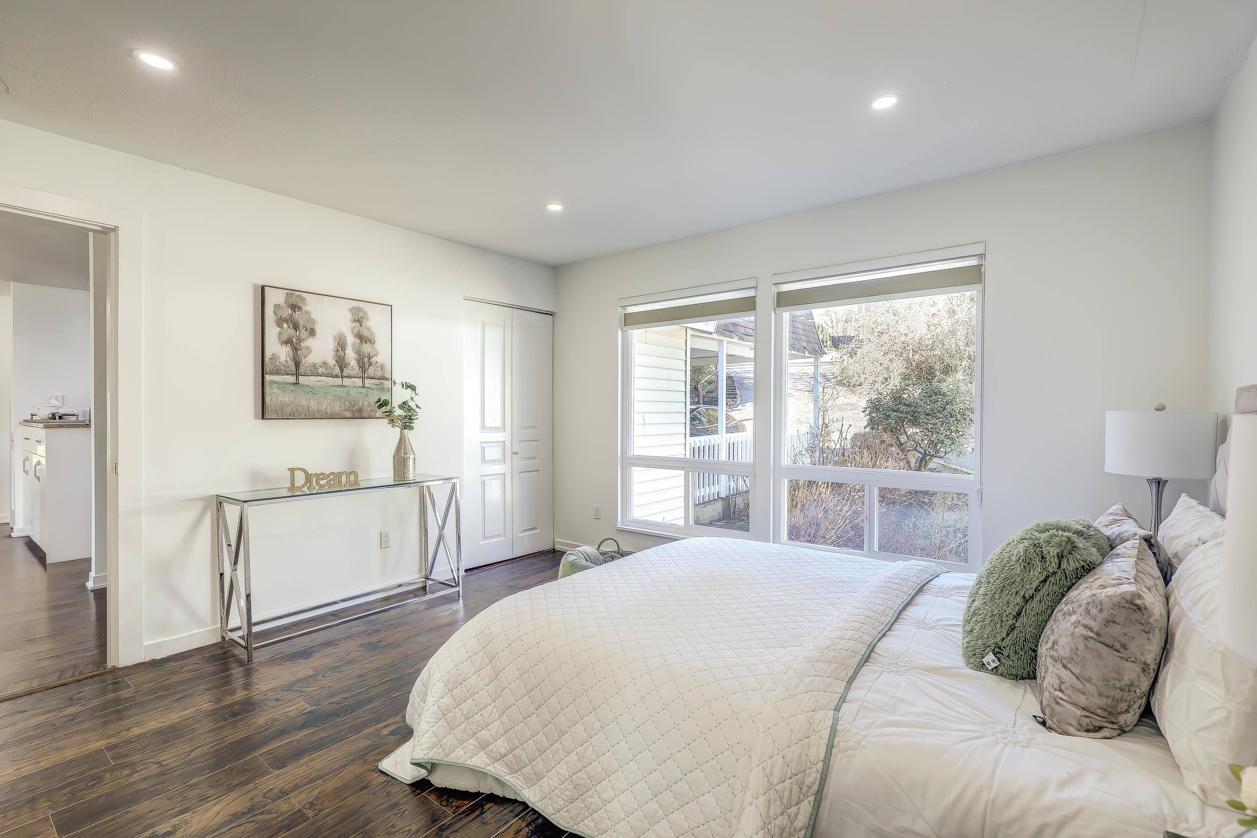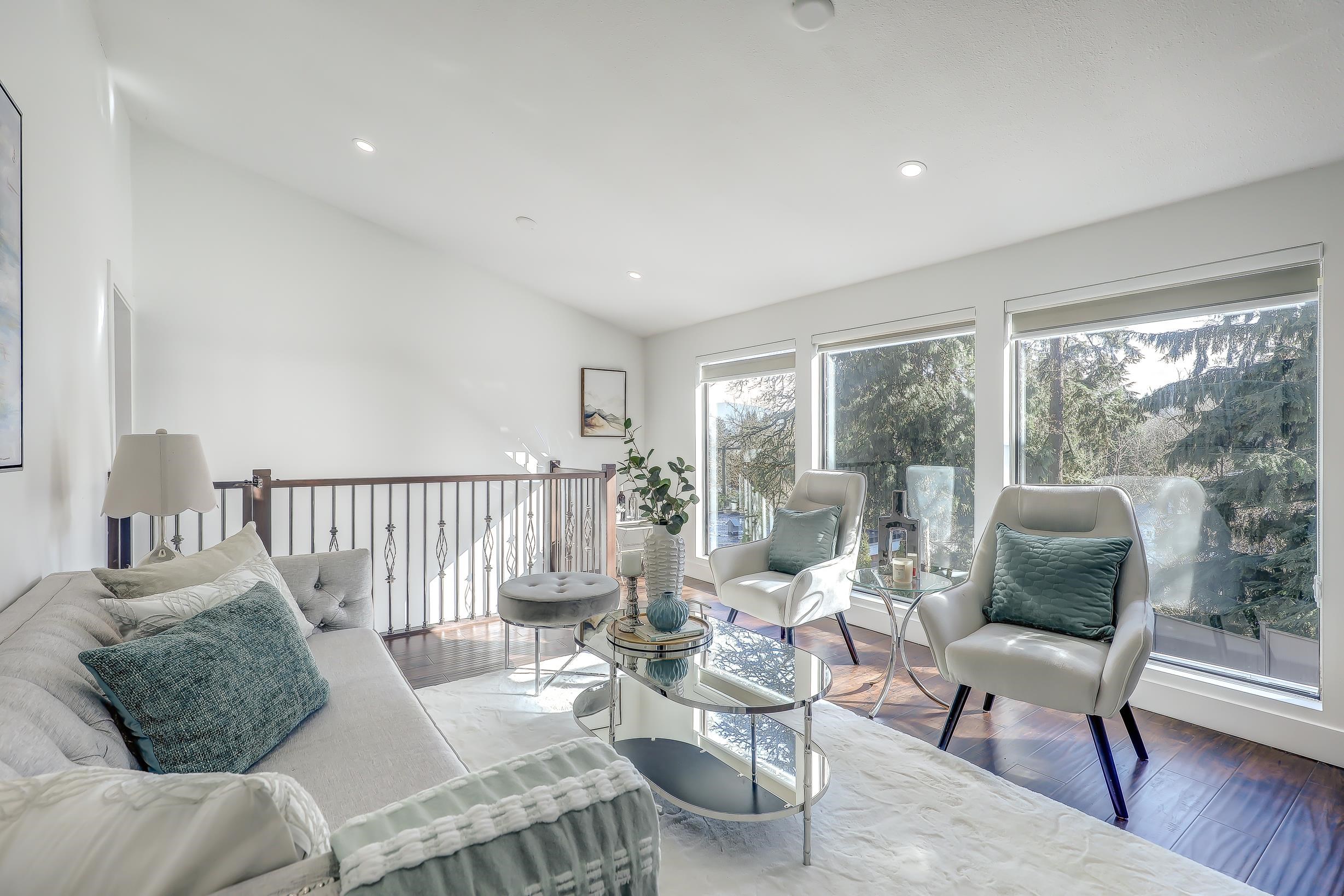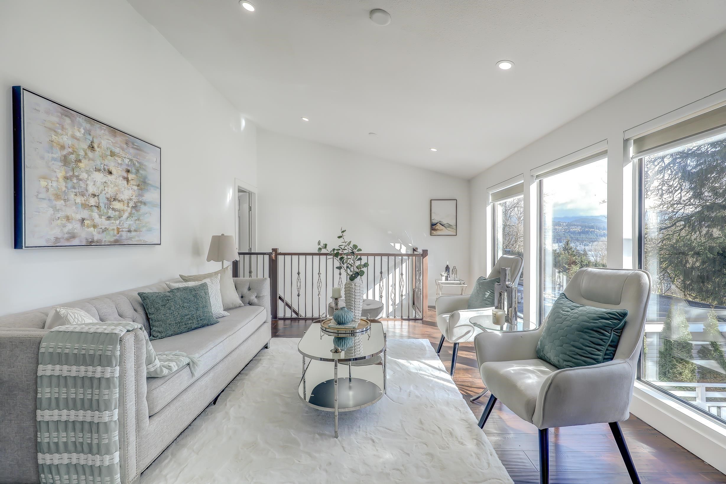 "Four Bedroom Single Family Home at townhome price" Hidden treasure in natural setting w/ravine creek for private backyard. Ocean and mountain view. Renovated in 2024. Freshly Painted. Open-concept kitchen. Dining area and large family room for entertaining. Balcony with stunning inlet & mountain views. Cozy sunroom for year-round use. Multiple storage options: separate storage unit, carport storage, and large basement storage. Covered carport parking along with two more parking. 2 Bedroom unauthorized base...