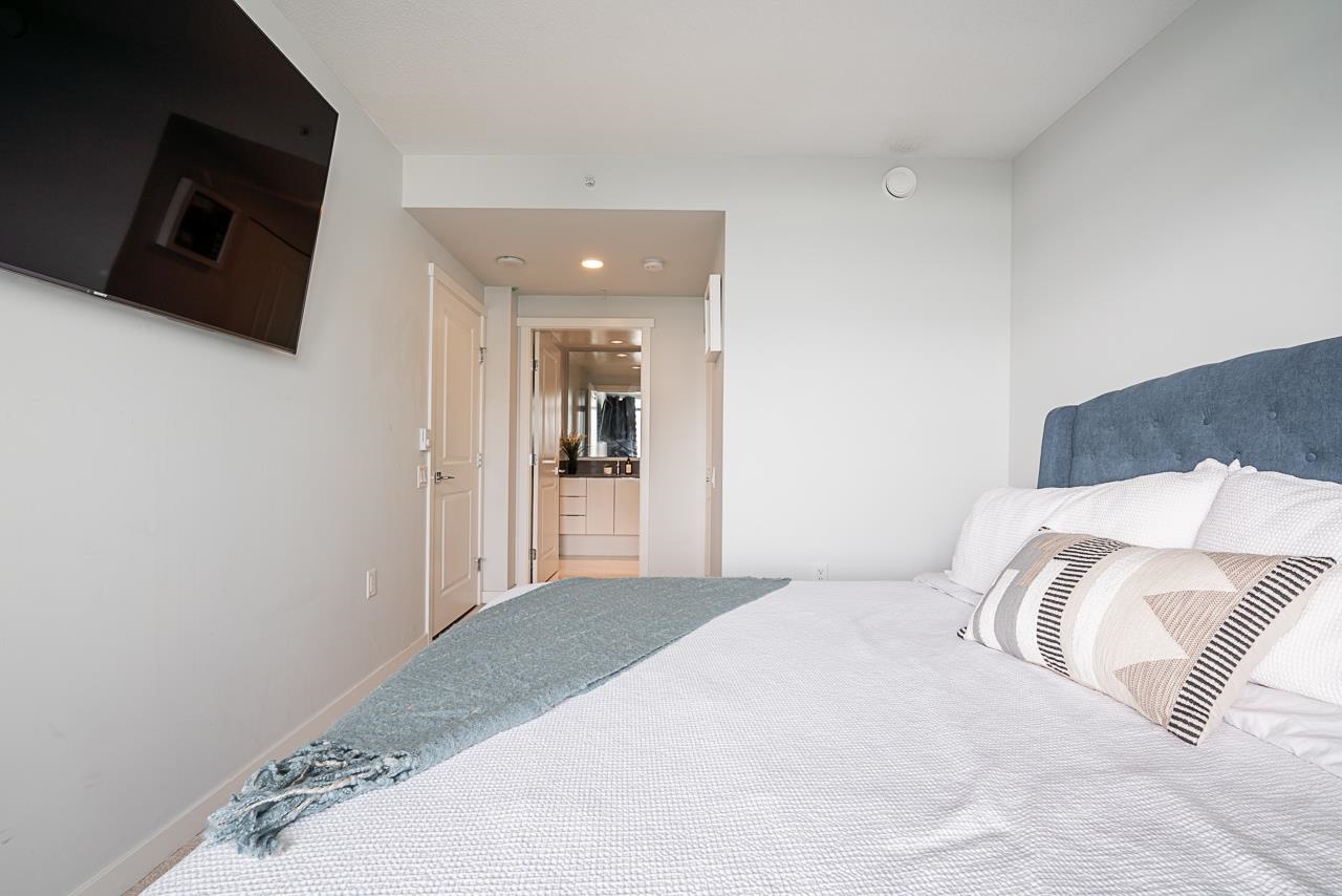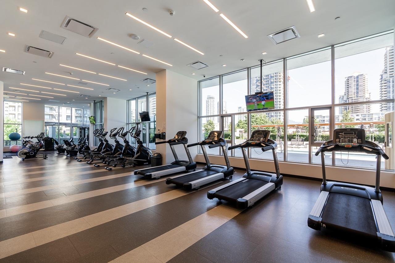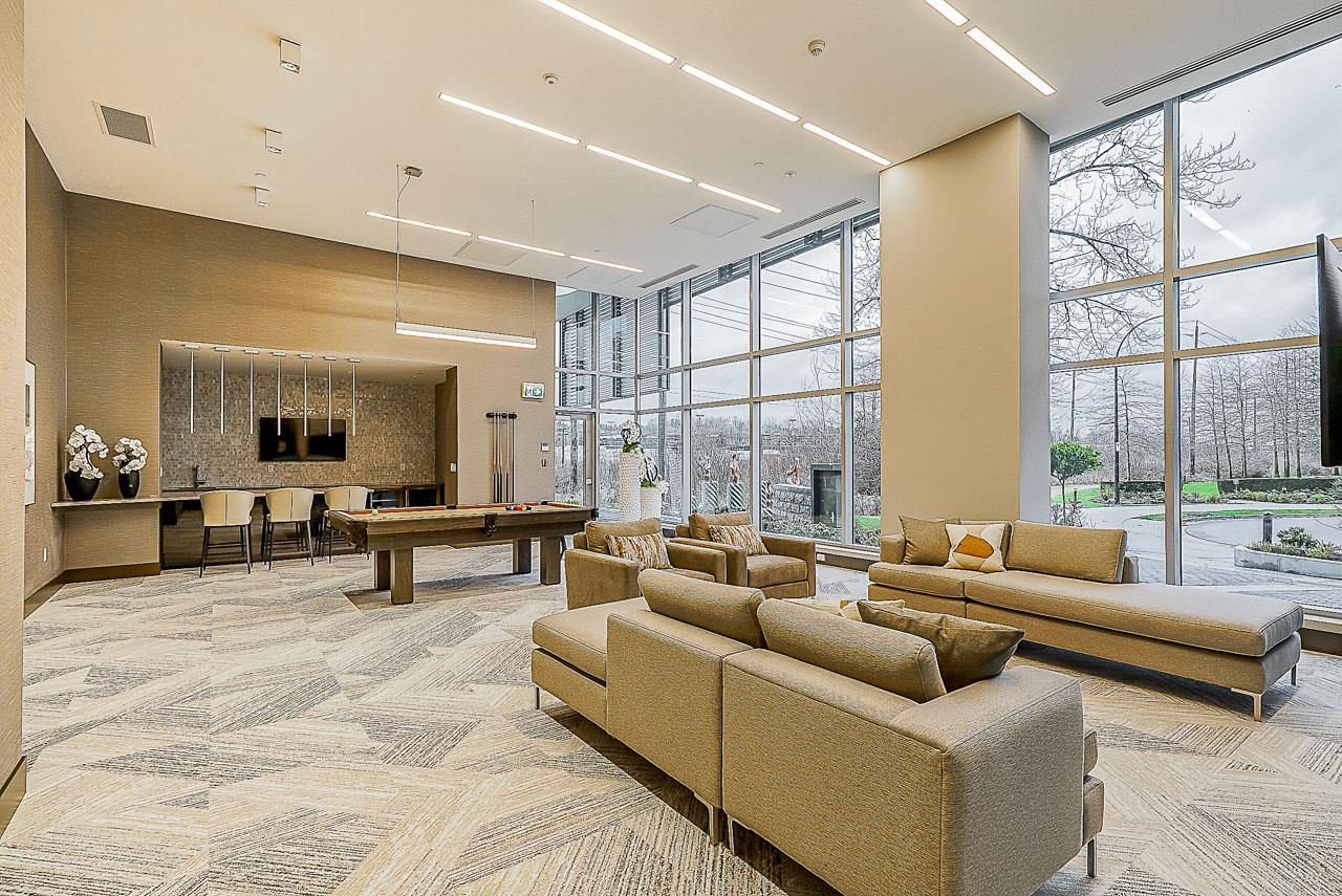 Welcome to Fulton House by Polygon in desirable Brentwood! This bright SE corner 2-bed, 2-bath home has a functional open layout with a contemporary kitchen, quartz counters, gas cooktop, built-in fridge, and large island flowing into the living/dining areas. Floor-to-ceiling windows and 9’ ceilings create an airy feel with sweeping views. Both bedrooms are generously sized with custom closets, while the primary adds an ensuite and private balcony. The second balcony extends from the living room. Full-size ...