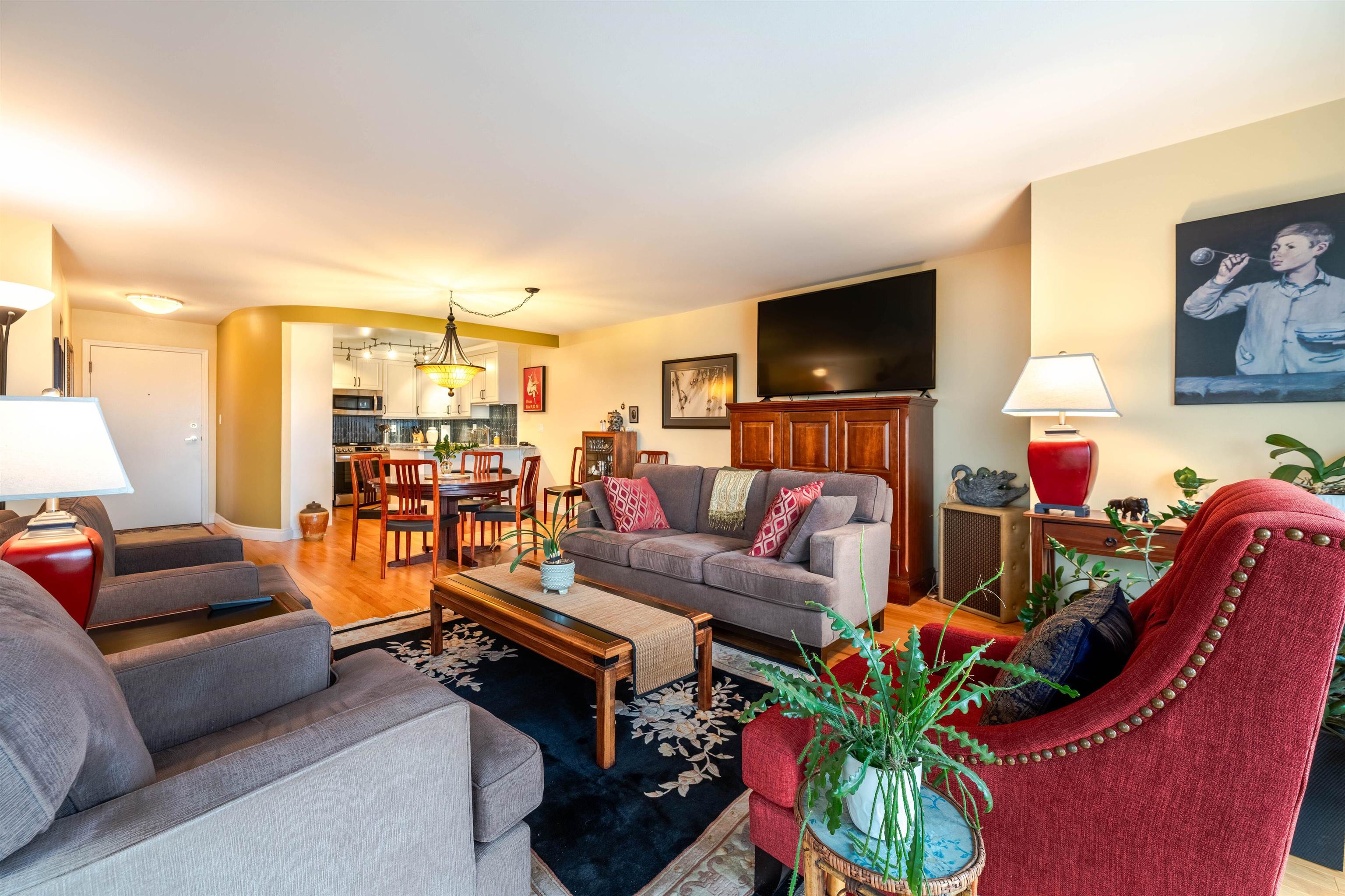 ABSOLUTELY, STUNNING views from this GORGEOUSLY renovated two bedroom, one and a half bathroom HOME with a PHENOMENAL layout! Just the PERFECT flow with an open concept and very SPACIOUS! Kitchen cupboards right to the ceiling, S/S appliances, LUXURIOUS stone counters throughout, TOP QUALITY wood flooring, huge laundry/storage room, tiled deck, spa like shower and stipple free ceilings are just a few things to mention! EXTREMELY well maintained building with EXCELLENT amenities and less than a one block wal...