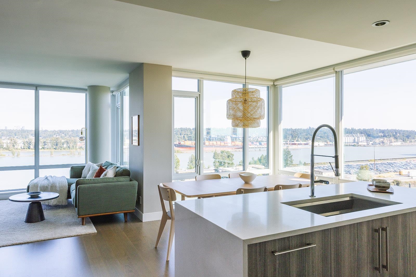 The Peninsula in Queensborough-LOCATION, CONVENIENCE & LUXURY Resort-Style LIVING! This beautiful 2 bed + 2 bath corner unit offers panoramic views of Fraser River, mountains & city skyline. Modern kitchen equipped with quality built-in appliances/ample cabinetry & large island & engineered hardwood throughout. Enjoy exclusive amenities including full-time concierge, theatre room/gym/party lounge/swirlpool-hot tub/steam room & guest suites. Perfect for down-sizers & first-time buyers/families alike. Growing...
