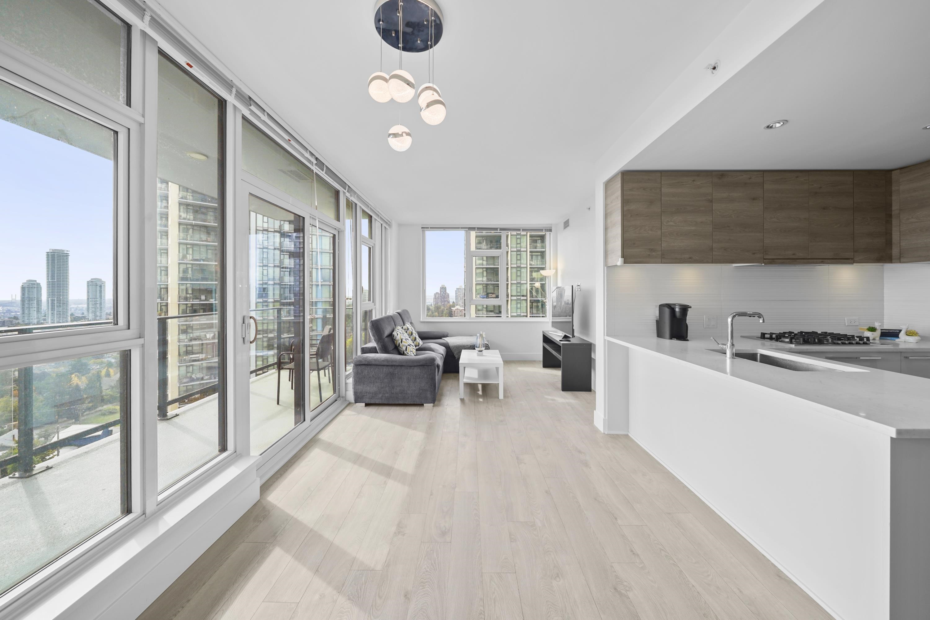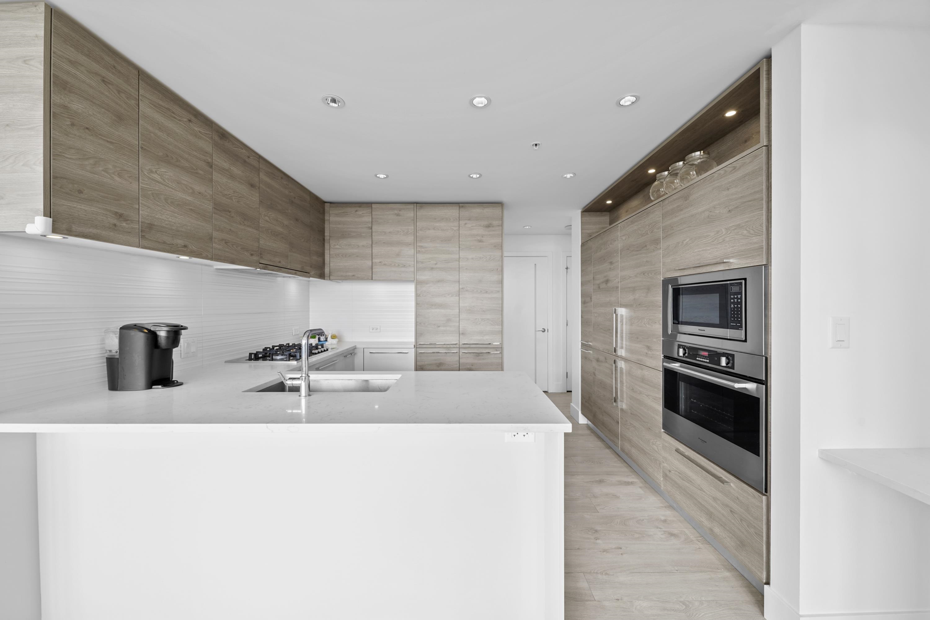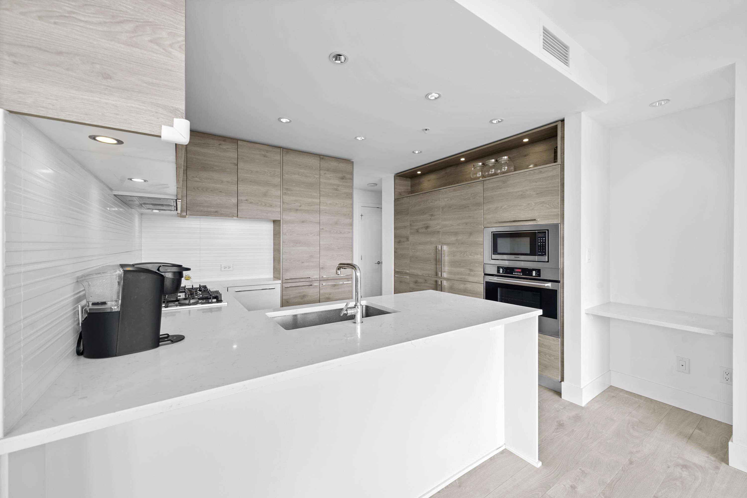 BEAUTIFUL & SPACIOUS 2 BEDROOMS CORNER UNIT AT KINGSCROSSING 3 BY CRESSY. Southeast facing with panoramic mountains, water, and city view. Huge covered balcony is perfect for spacious outdoor day to day living or entertaining! Bright and spacious layout with ton of natural light huge windows. Open concept floorplan with 9'ft ceiling, A/C, spacious bedrooms, and spa like bathrooms. Feature Cressy Kitchen includes custom feeling cabinetry with the most intelligent use of storage space, European appliances, an...