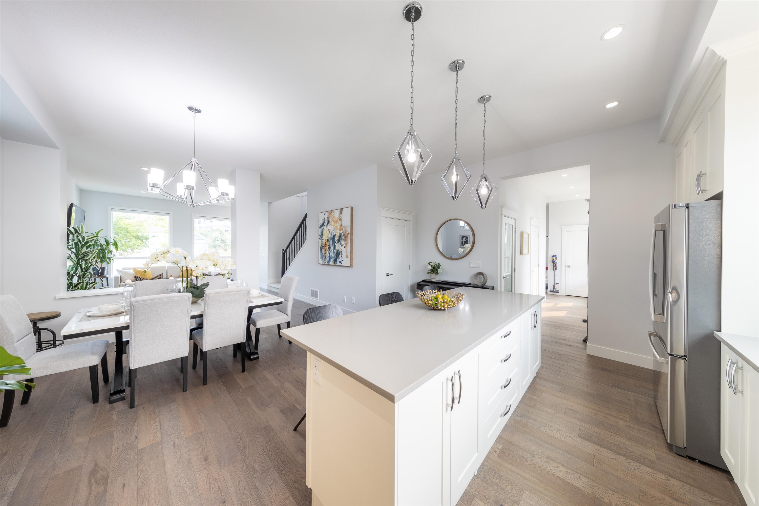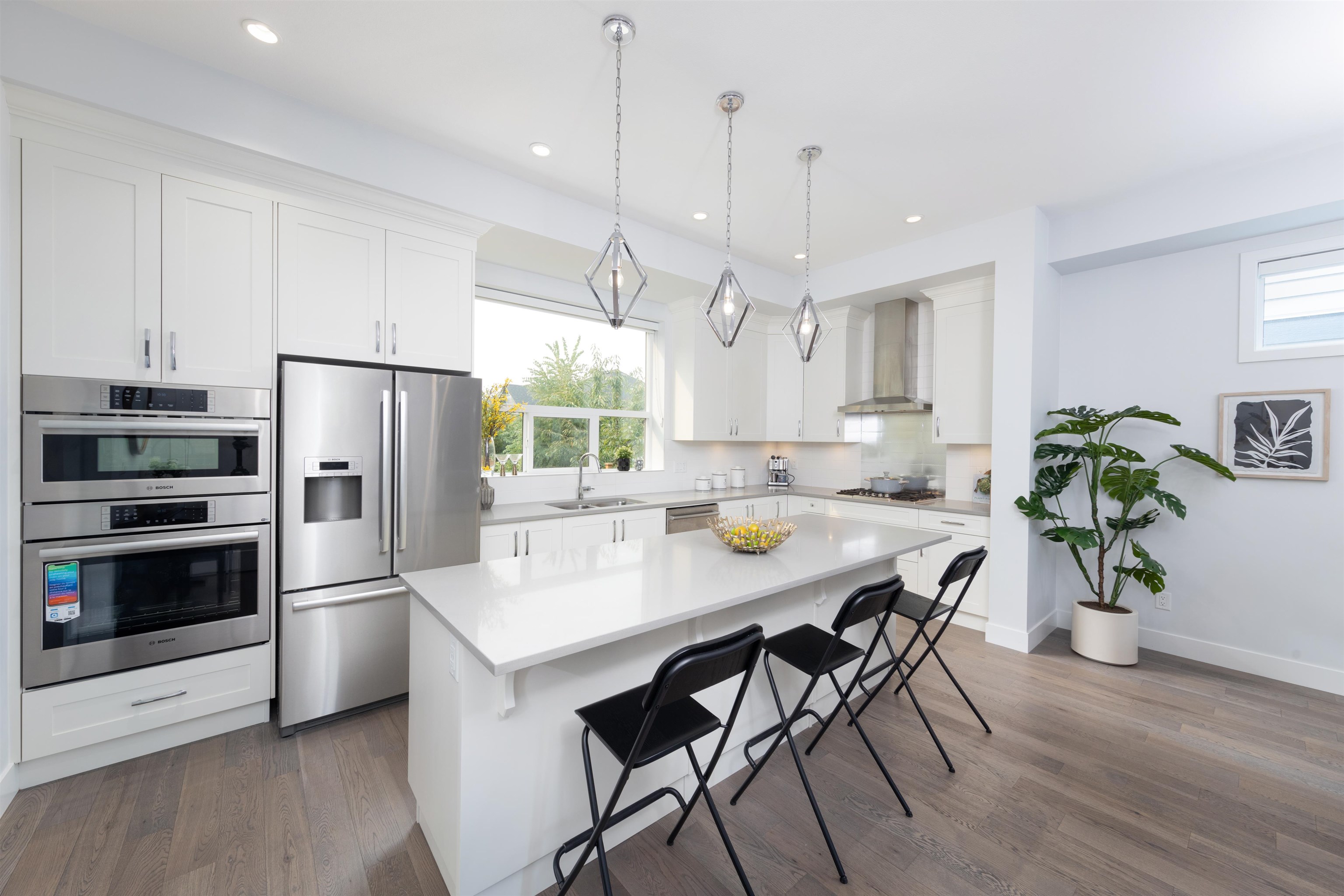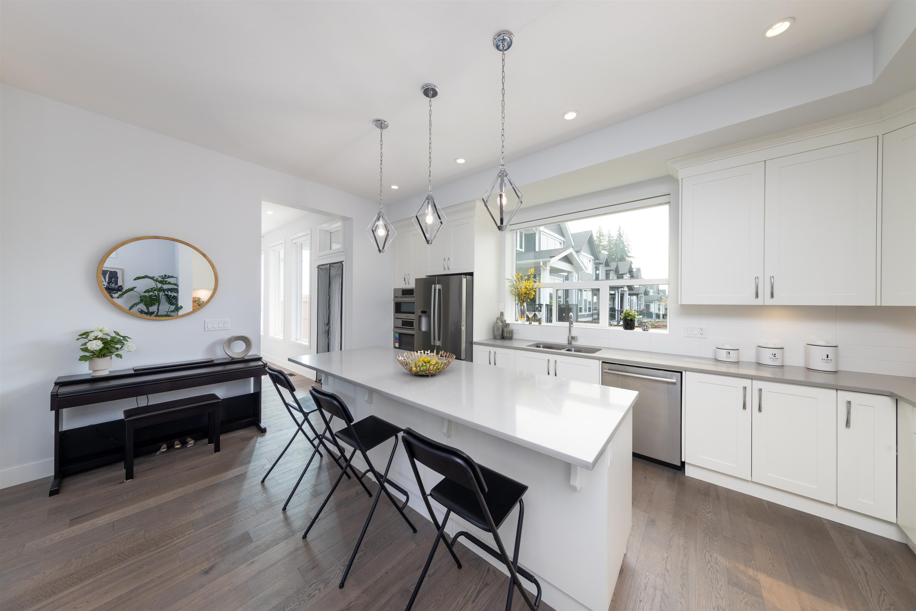 Stunning Foxridge home in Edgestone, Grandview Surrey! Built in 2021, this 2,987?sq?ft 4-bed/5-bath home features all ensuited bedrooms, a bright open-concept main floor with a gourmet kitchen, walk-in pantry, covered patio, and mudroom. Vaulted ceilings in the master with walk-in closet and spa-like ensuite. Fully finished basement includes a legal 1-bed suite with separate entry. Enjoy A/C, forced-air heating, gas fireplace, double garage, and fenced yard. Steps to shops, parks, schools, and future Costco...
