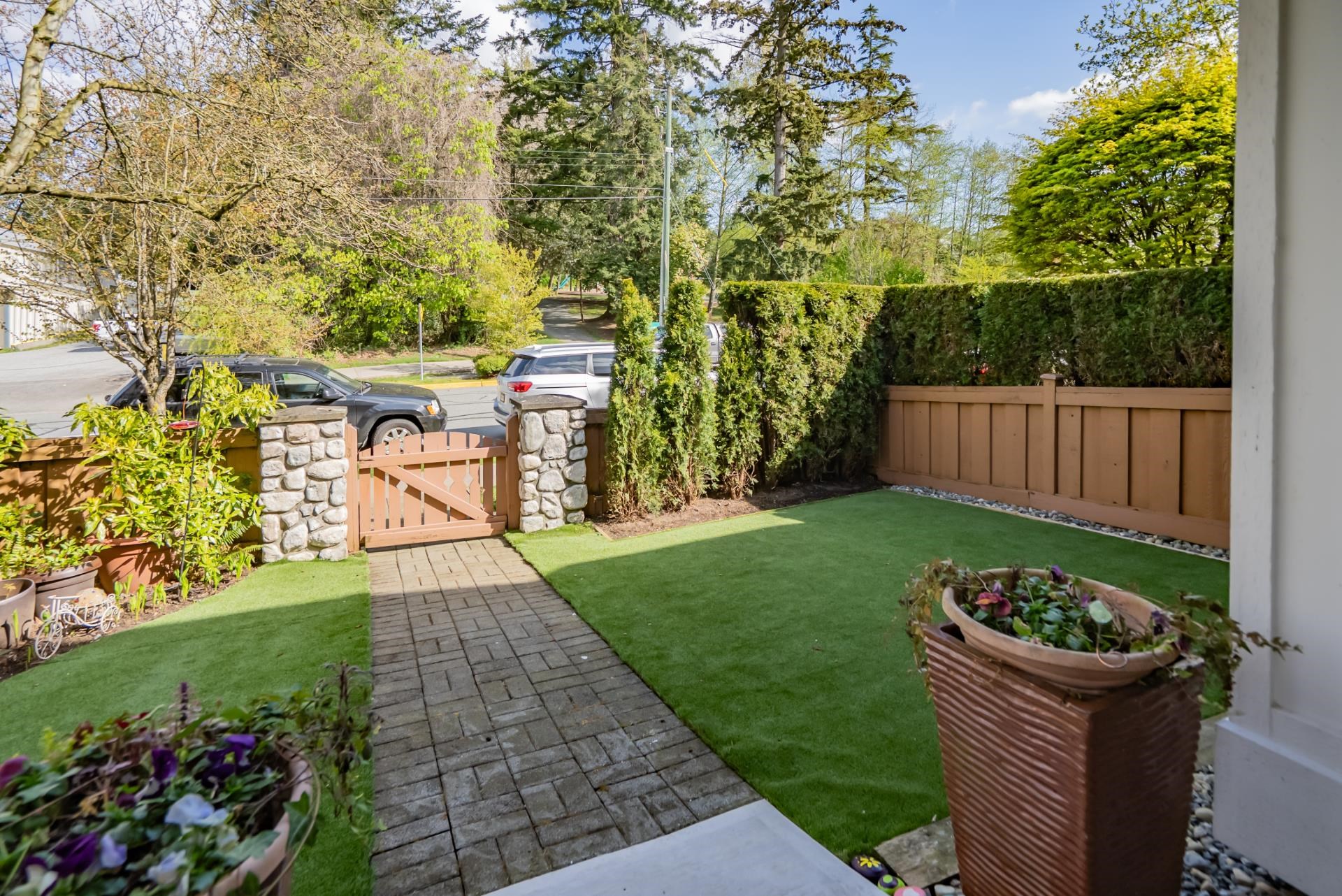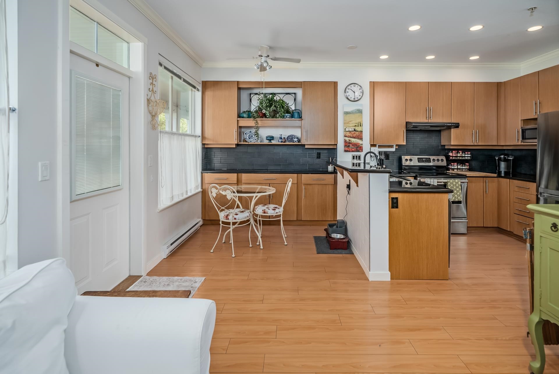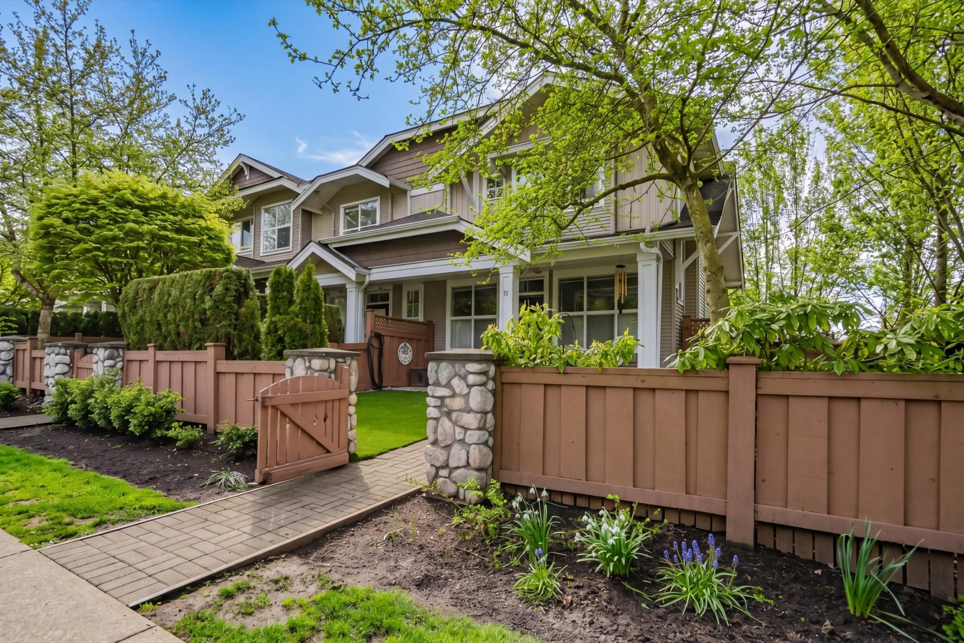 END UNIT at the end of the complex with side-by-side double garage and rare street-level access from the kitchen side! Welcome to sought-after Willows Edge. This bright 3 bed, 3 bath home with rec room features an open-concept layout, 9' ceilings on the main, and numerous upgrades throughout. South-facing exposure brings in tons of natural light. Enjoy a private turfed yard, perfect for guests, kids, pets, and easy entry in and out. Main floor powder room adds convenience. Fantastic location walk to shoppin...