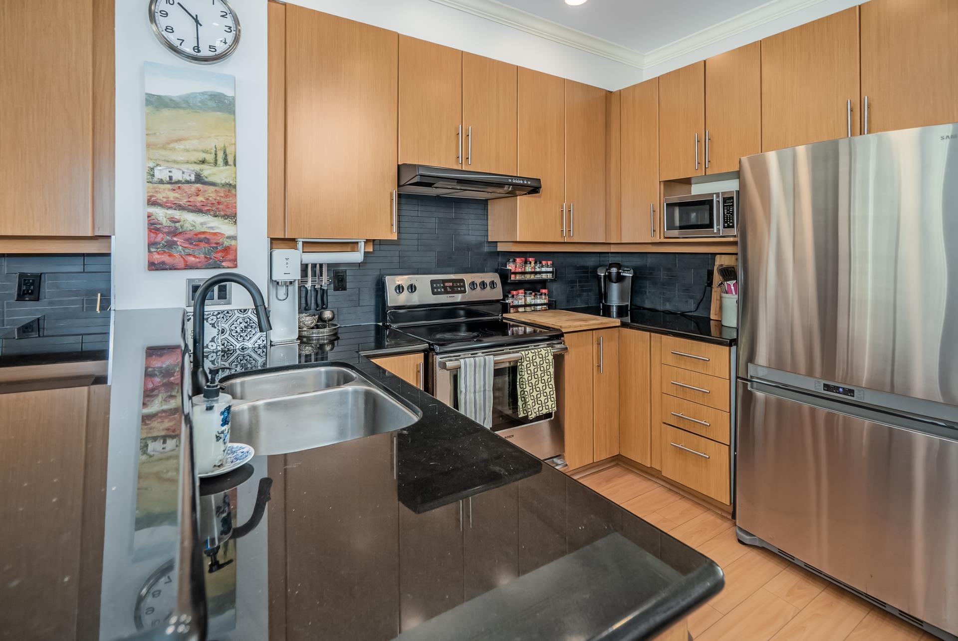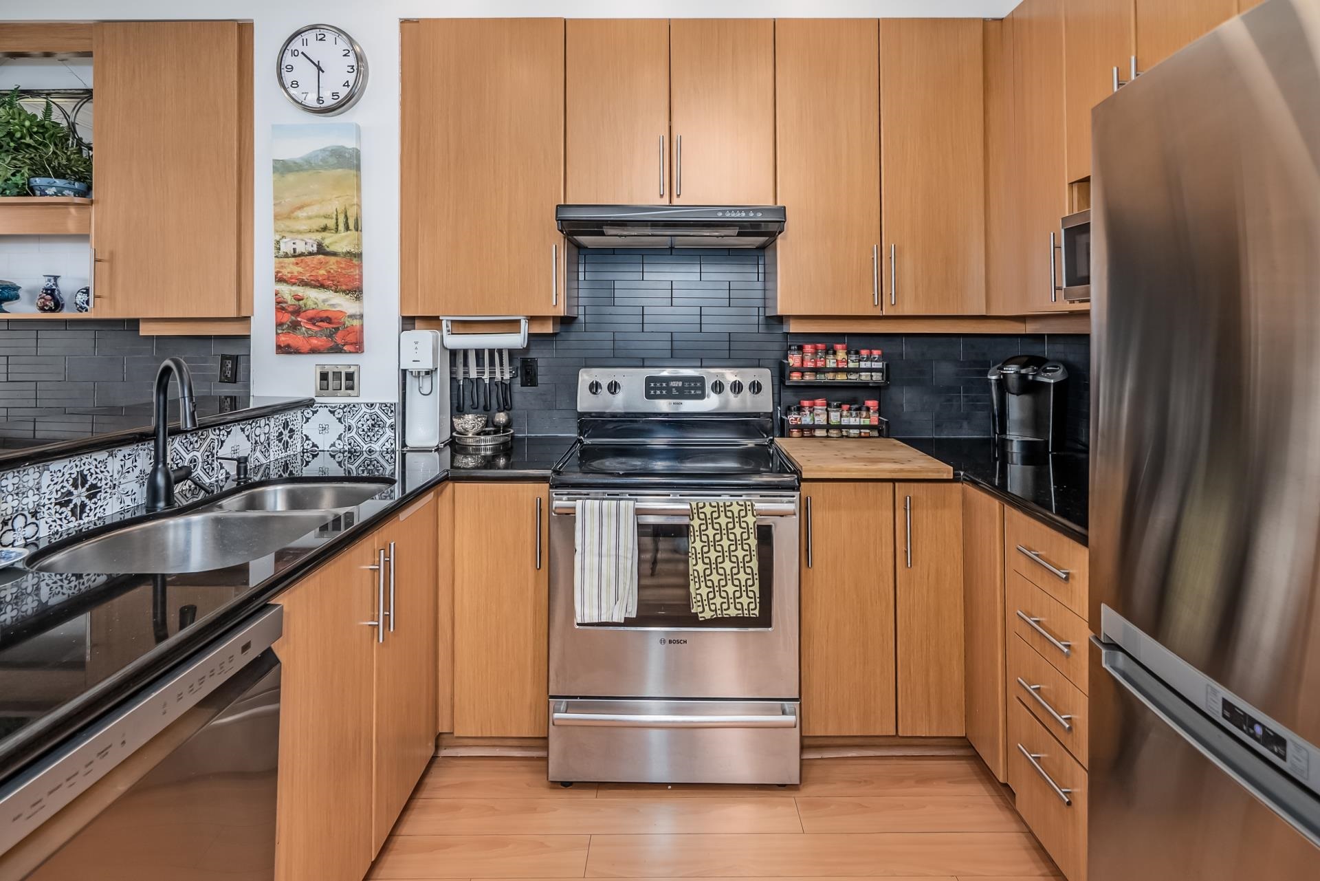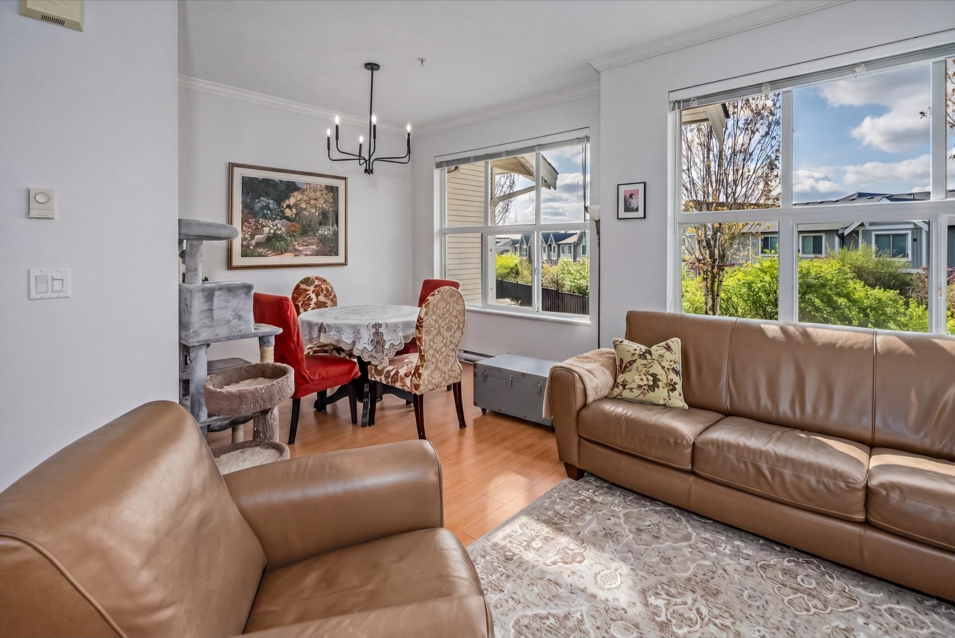 END UNIT at the end of the complex with side-by-side double garage and rare street-level access from the kitchen side! Welcome to sought-after Willows Edge. This bright 3 bed, 3 bath home with rec room features an open-concept layout, 9' ceilings on the main, and numerous upgrades throughout. South-facing exposure brings in tons of natural light. Enjoy a private turfed yard, perfect for guests, kids, pets, and easy entry in and out. Main floor powder room adds convenience. Fantastic location walk to shoppin...