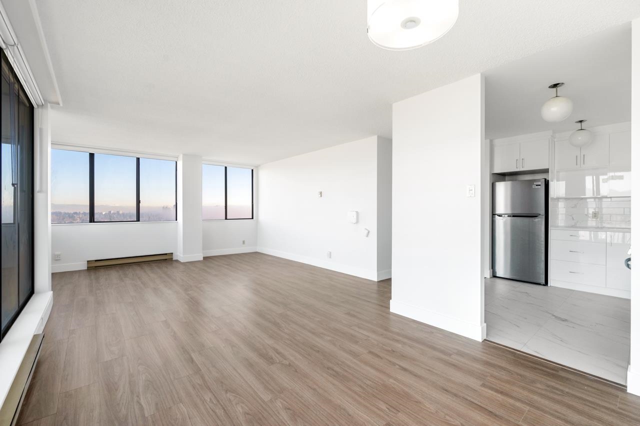 Welcome to 1702–6540 Burlington Avenue. This beautifully renovated 2-bedroom, 1-bath home is completely turn-key and ready to enjoy. Perched on the 17th floor with a desirable north-facing exposure, the unit showcases breathtaking, unobstructed views of the mountains, city skyline, and lake. The well-managed complex offers outstanding amenities including a full gym, basketball and racquet courts, a swirl pool, and more. Ideally located just minutes from Metrotown and only a 2-minute walk to Royal Oak SkyTra...
