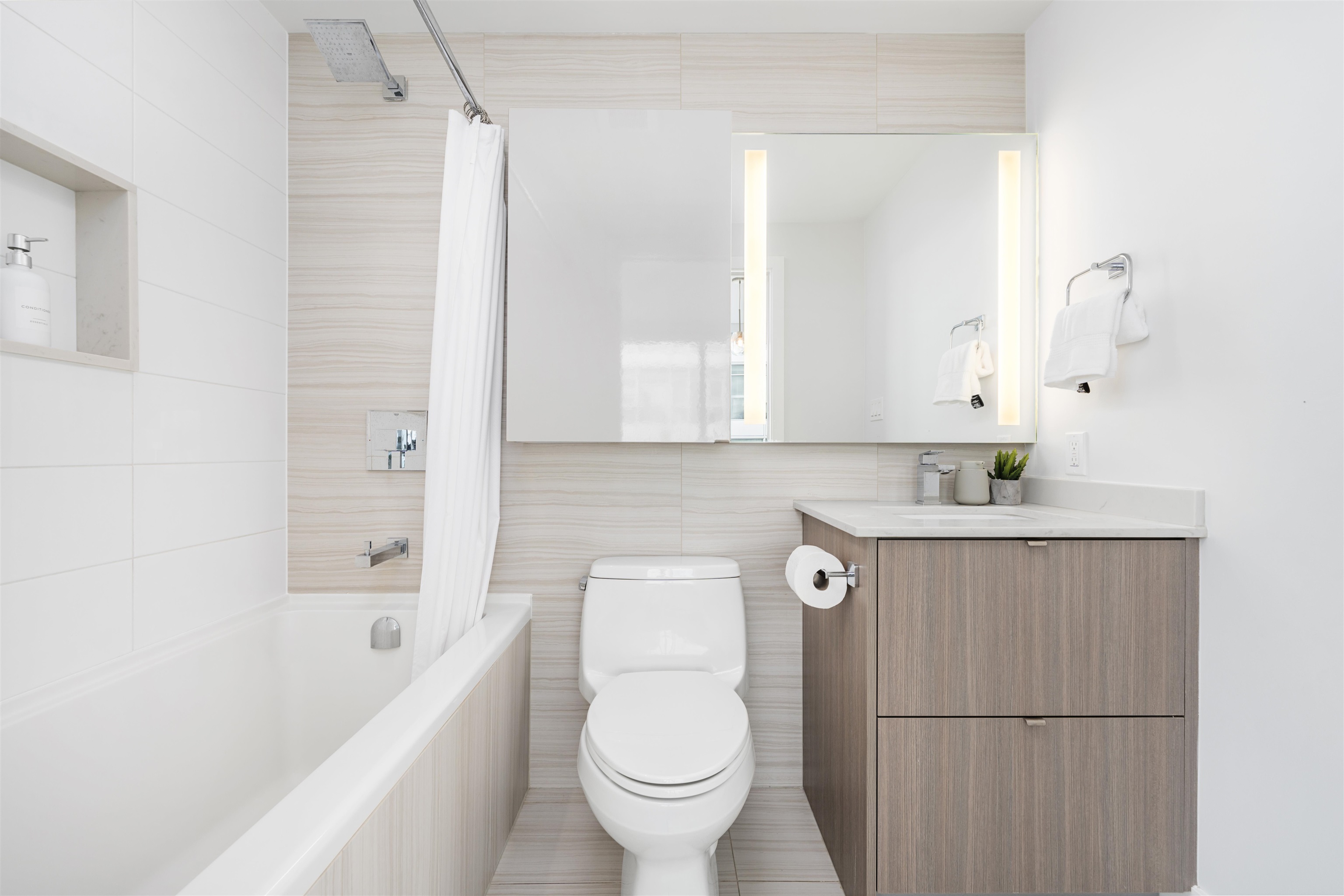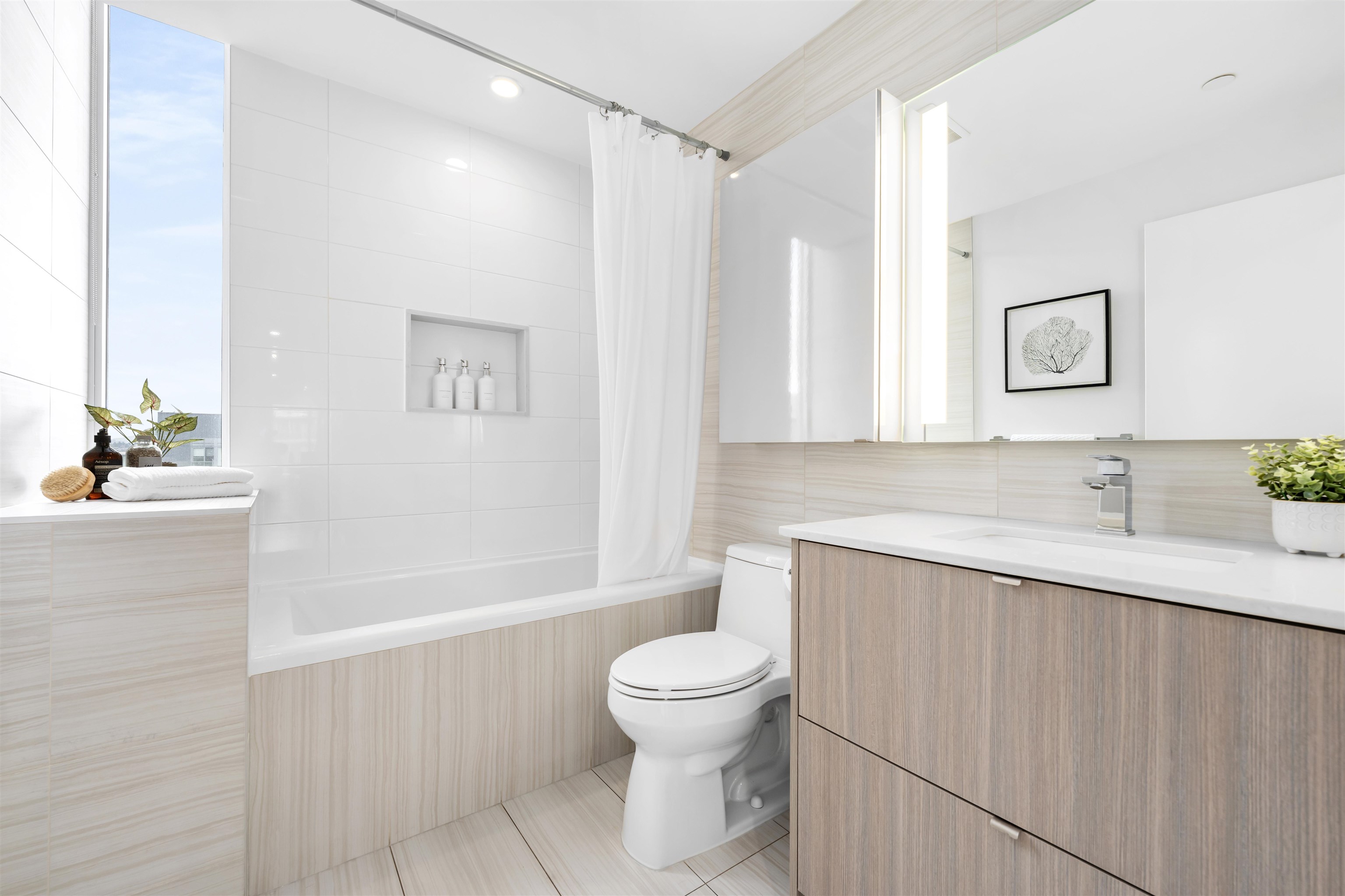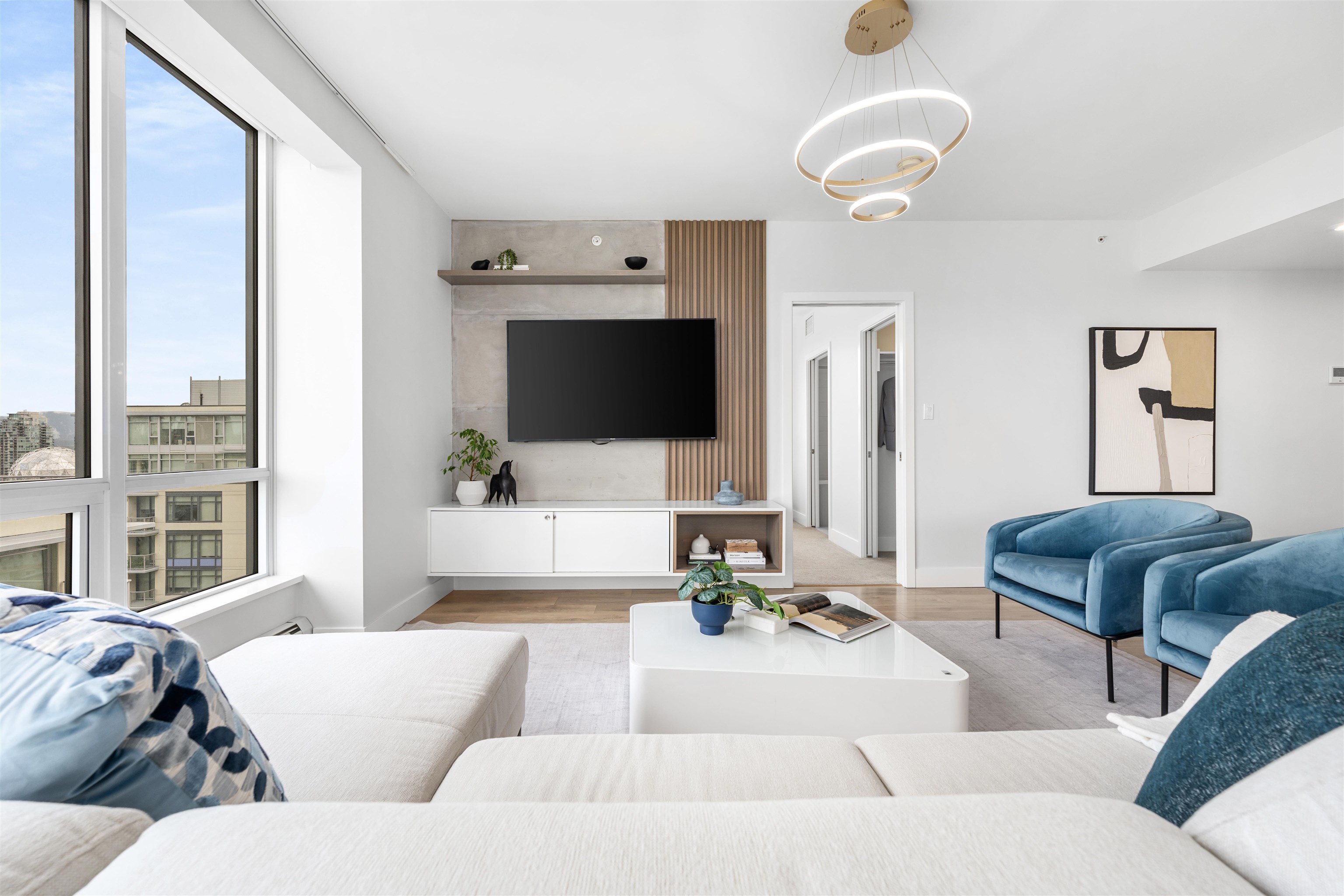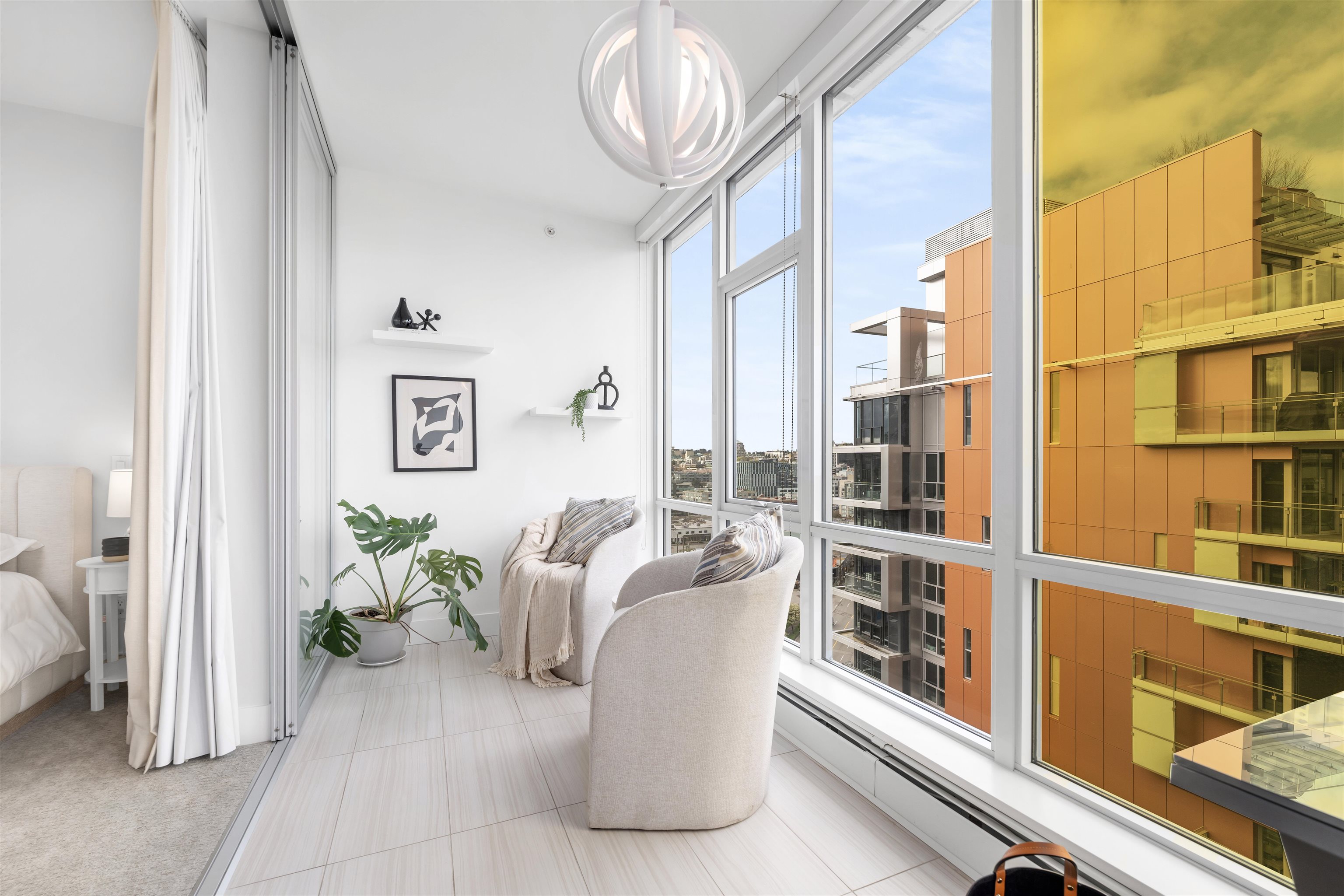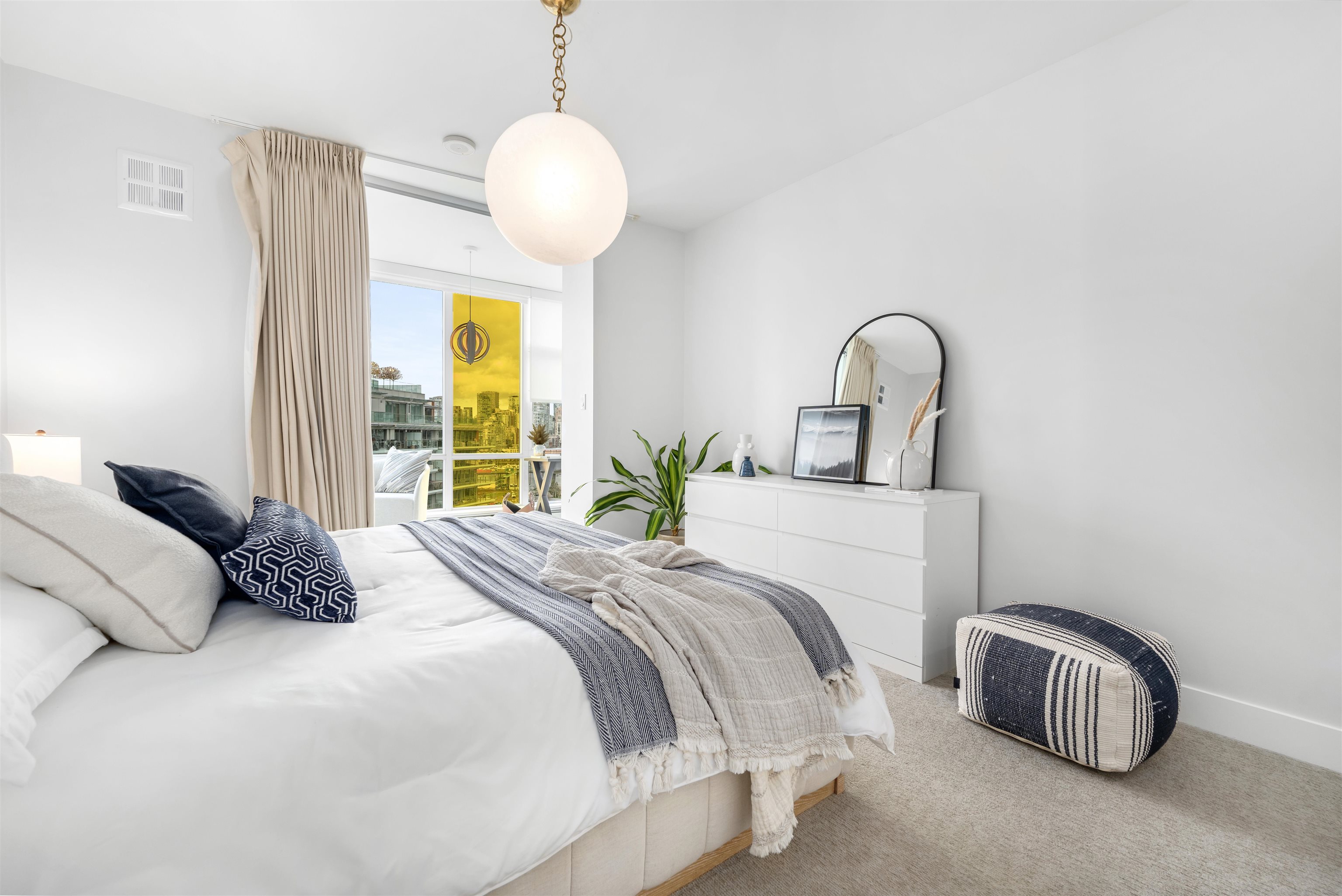 Enjoy waterfront living in this 3 Bedroom + Den, 3 Bathroom penthouse at Epic at West in Olympic Village. Bright & spacious with large windows providing views of the downtown city skyline, tranquil False Creek waterfront & the North Shore mountains. Featuring 8’8” ceilings, A/C, 9' kitchen island, Quartz composite counters & backsplash, wide plank laminate floors, porcelain tiles & remote blinds in the living room. Contemporary luxury including an integrated sub-zero fridge, Wolf gas range, Blomberg dishwas...