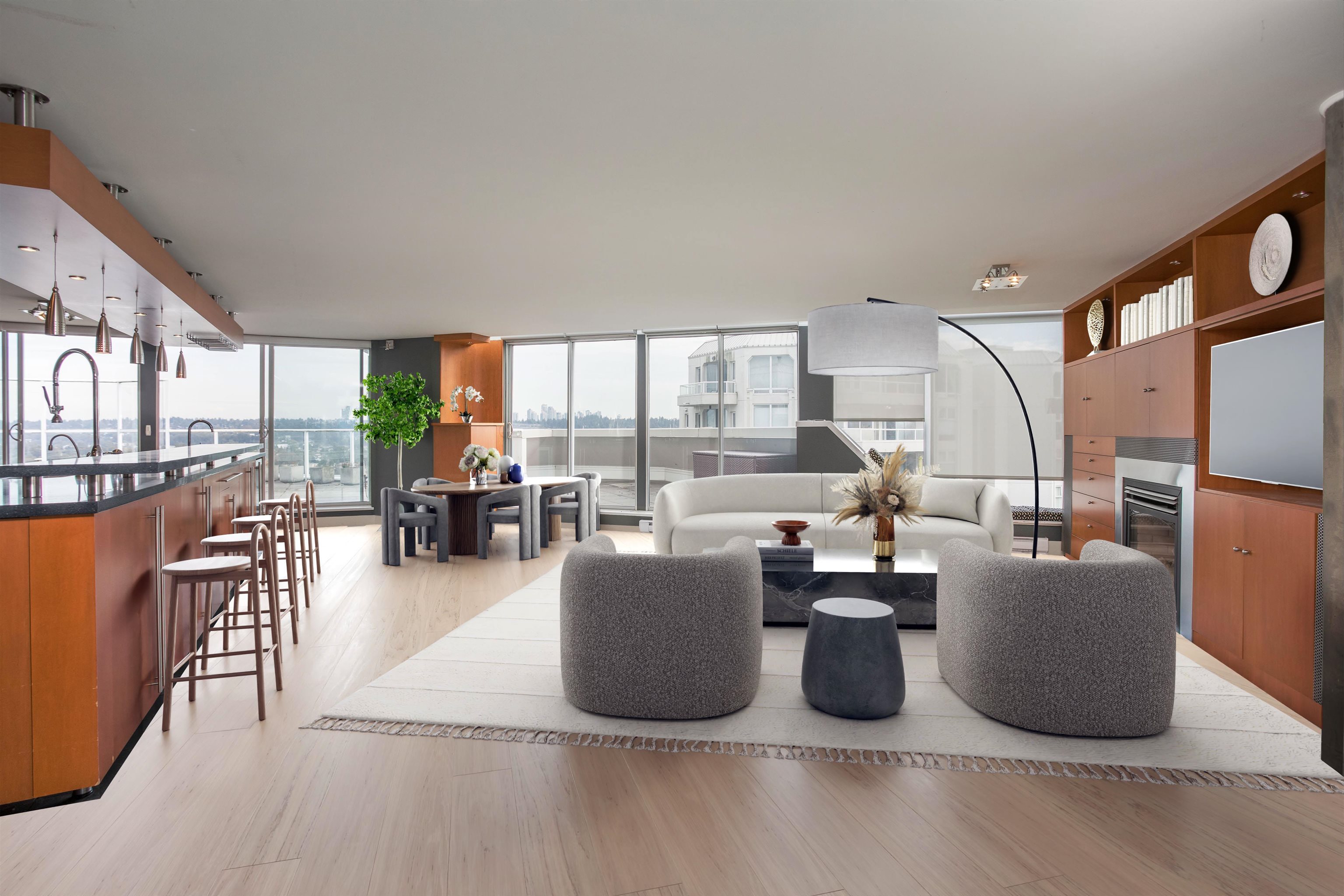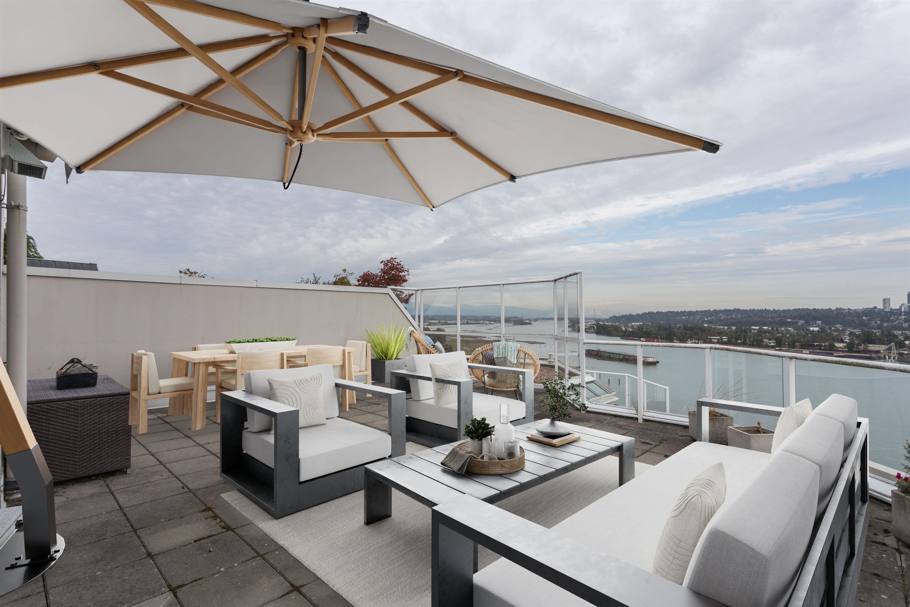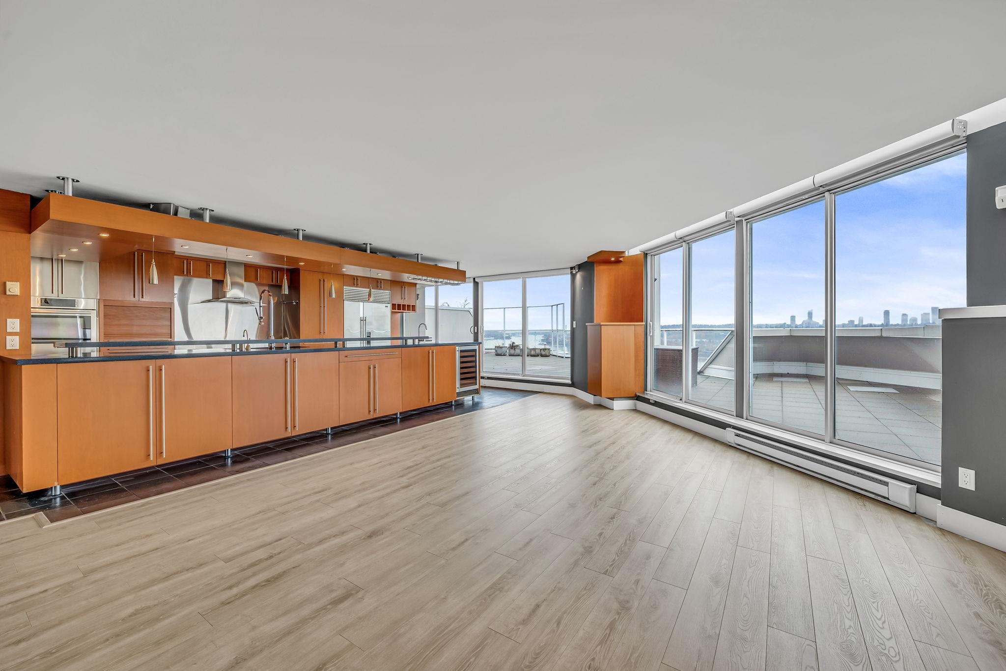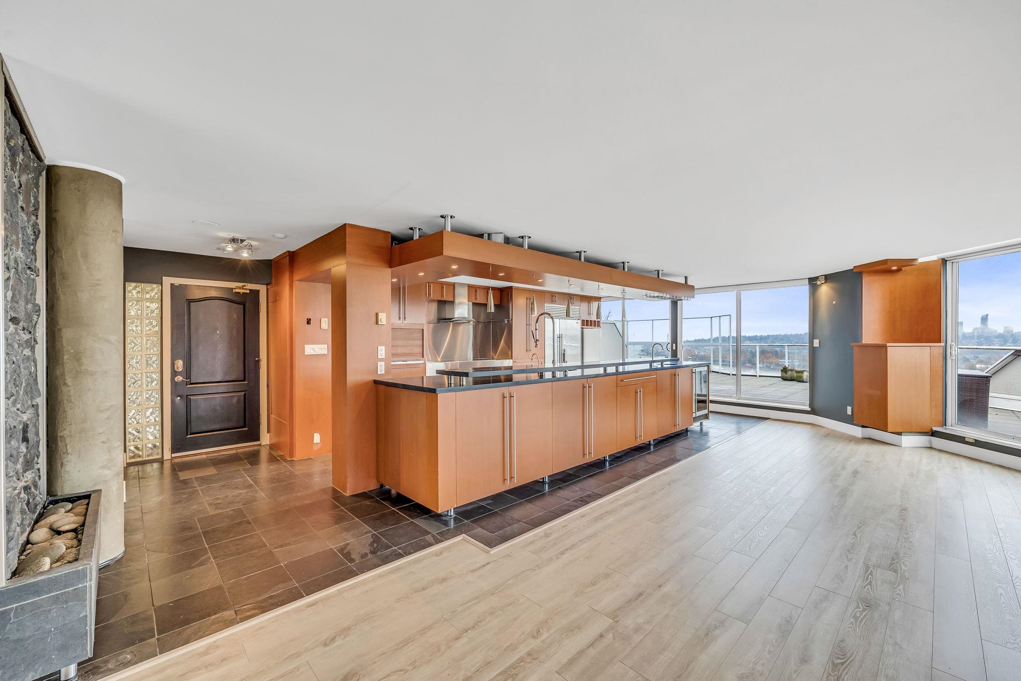 Step Into the Light — Luxury Penthouse with Panoramic Views Discover a rare opportunity to own this over 2,100 sq. ft. penthouse. Entertain on the very large deck with sweeping southeast views of Mount Baker and the Fraser River, or choose north and west views off one of the other two decks. This top-floor home features a fantastic open floor plan, spacious kitchen with massive island, two bedrooms plus the option for a third, a dedicated wine room, and floor-to-ceiling windows that fill the space with natu...
