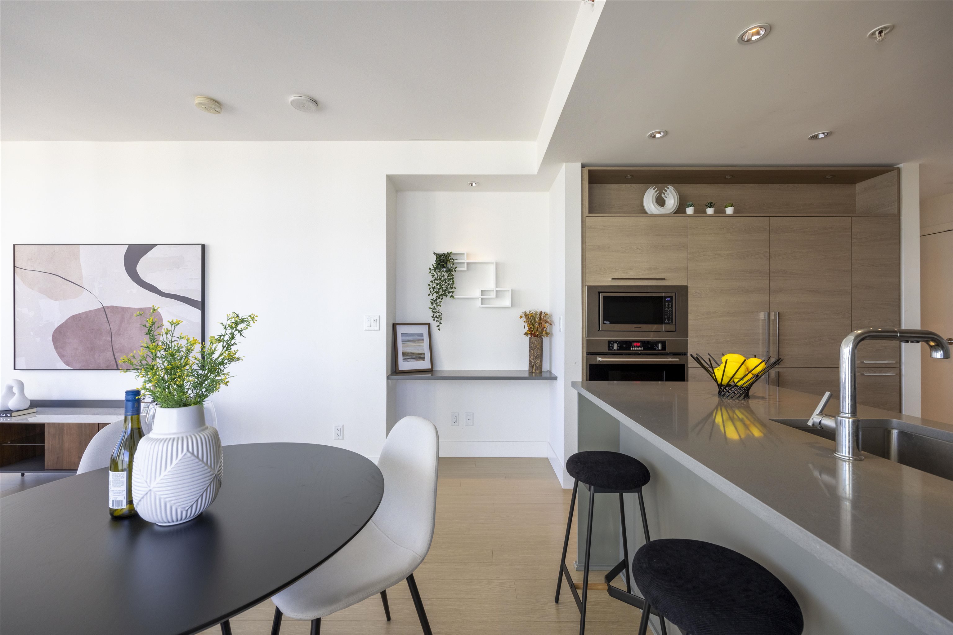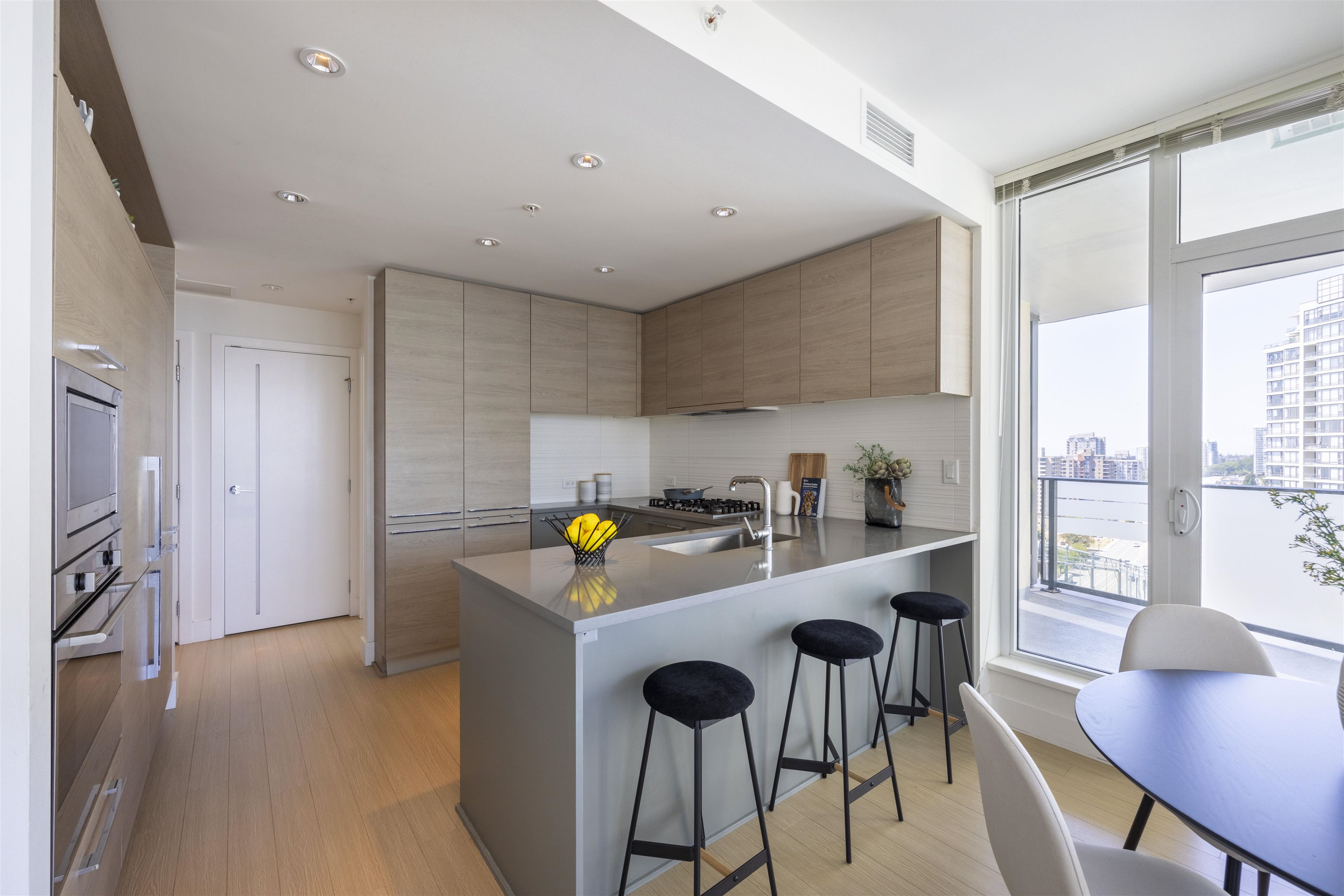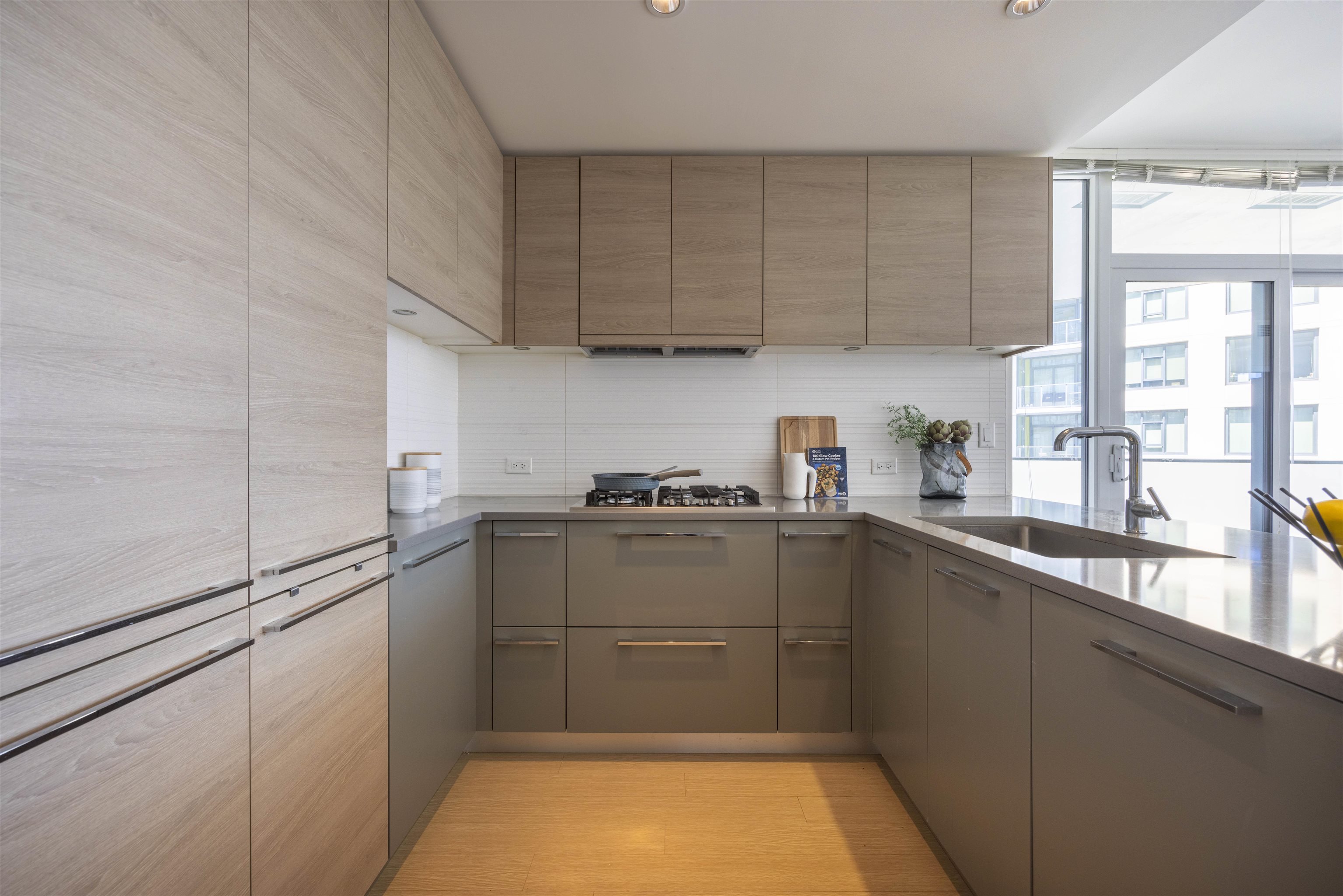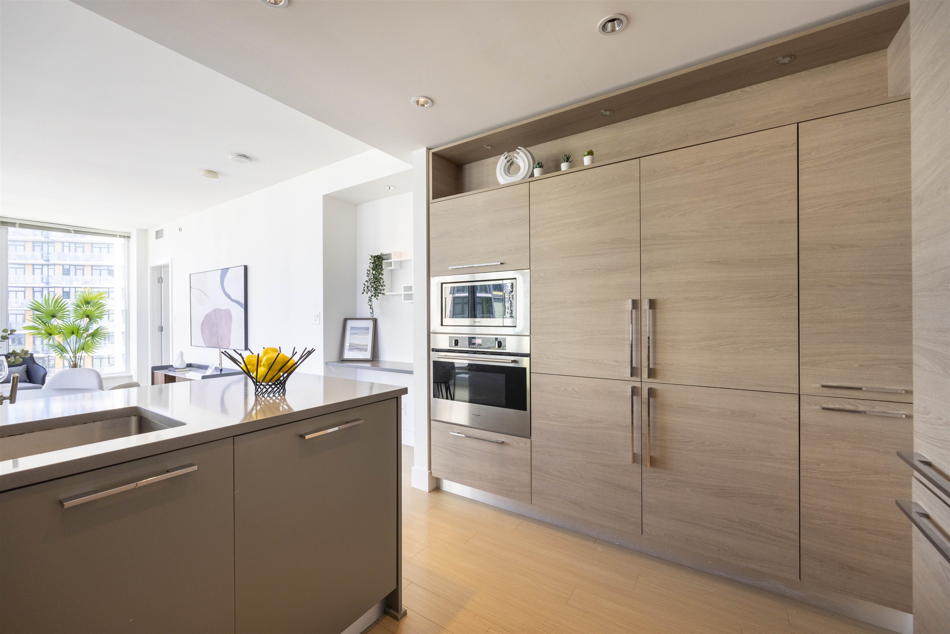 Discover Kings Crossing ONE by Cressey: a modern, northwest-facing concrete residence spanning 900 sqft, featuring 2 bedrooms and 2 baths. This luxurious home boasts high-end finishes, air conditioning, and a spacious balcony with unobstructed, breathtaking views of the mountains, city, and water from every room. The sleek kitchen includes a double-door refrigerator, pull-out pantry, Fulgor 5-burner gas cooktop, and built-in oven. The opulent ensuite bathroom offers a marble countertop and a full-size showe...