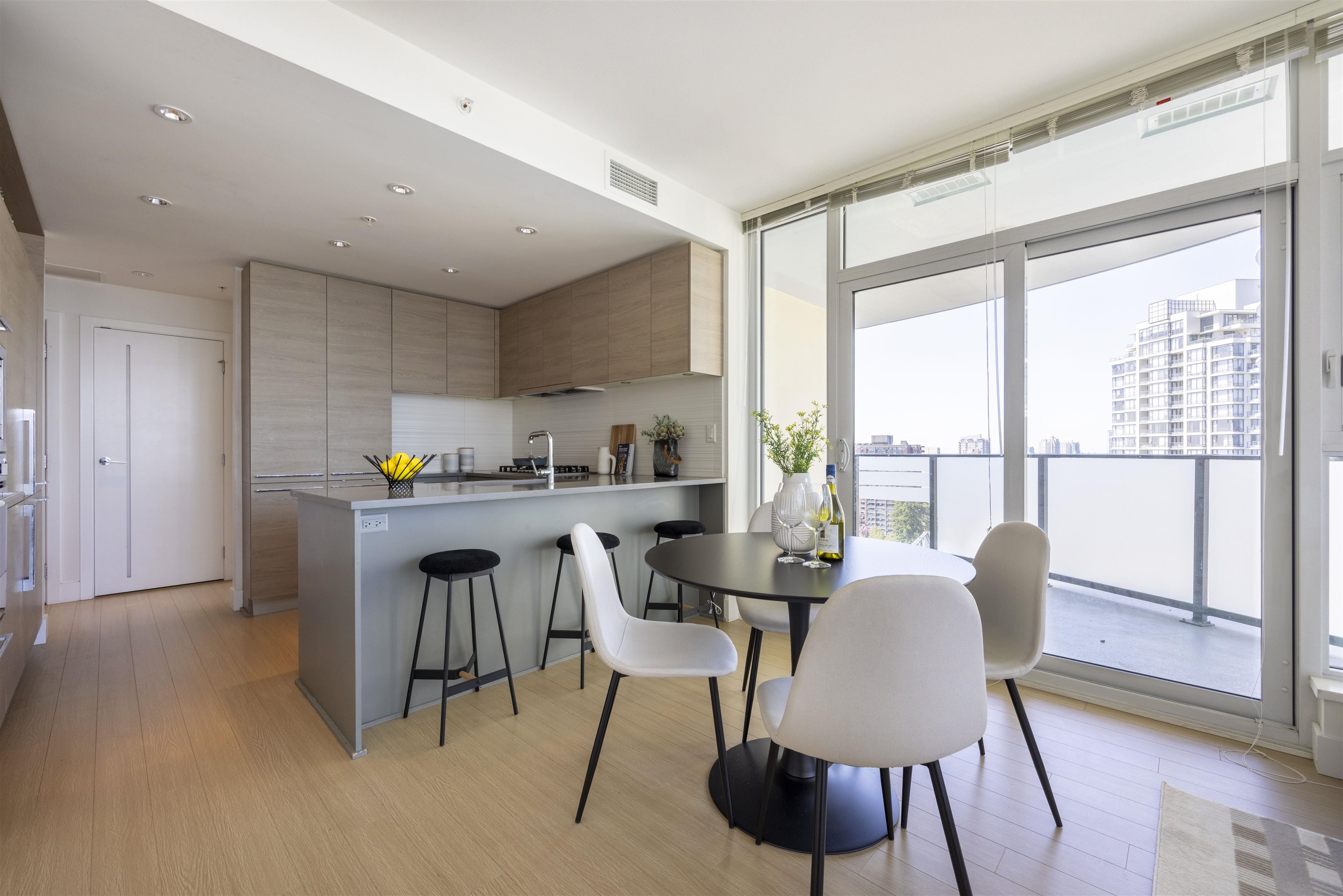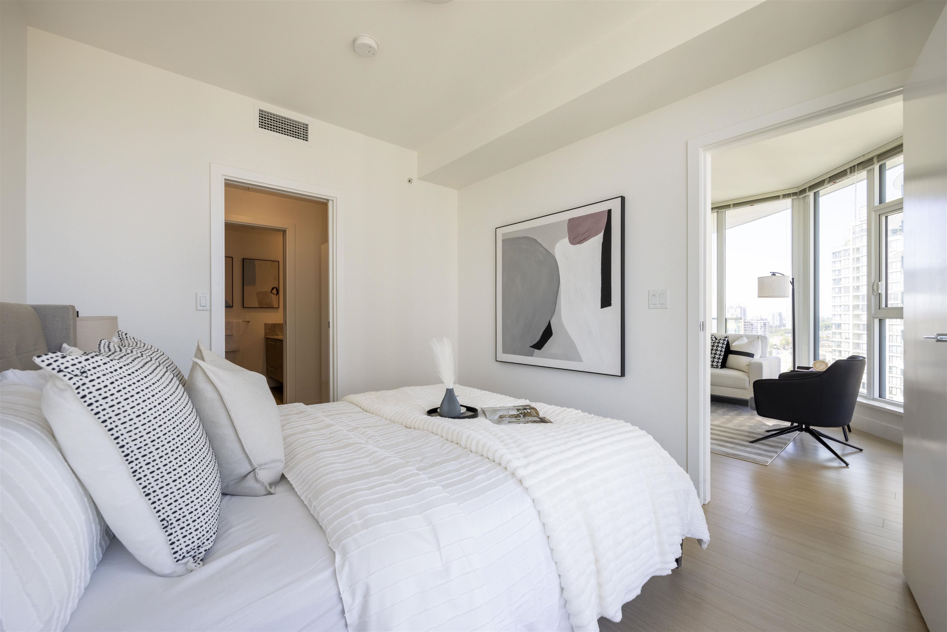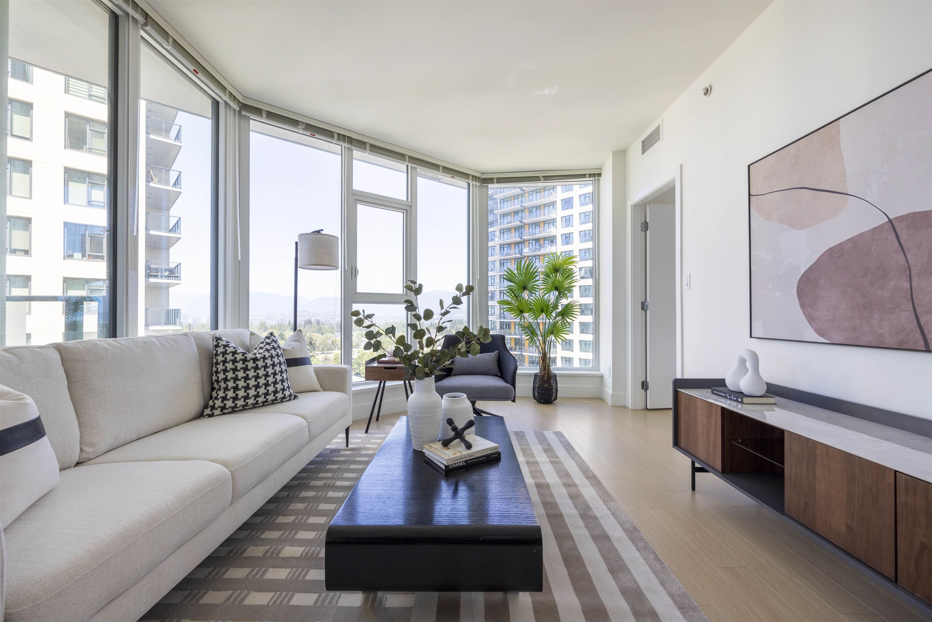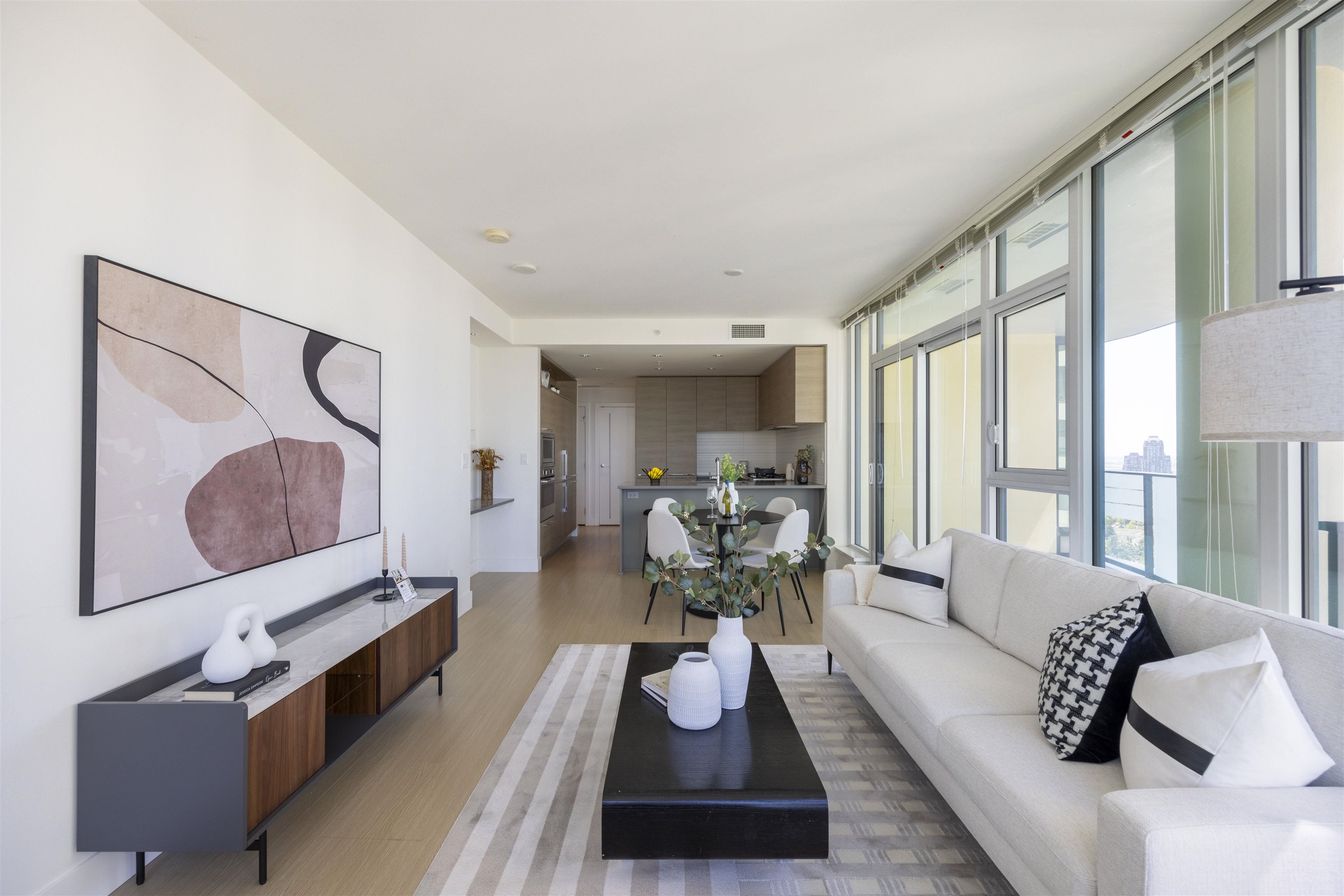 Discover Kings Crossing ONE by Cressey: a modern, northwest-facing concrete residence spanning 900 sqft, featuring 2 bedrooms and 2 baths. This luxurious home boasts high-end finishes, air conditioning, and a spacious balcony with unobstructed, breathtaking views of the mountains, city, and water from every room. The sleek kitchen includes a double-door refrigerator, pull-out pantry, Fulgor 5-burner gas cooktop, and built-in oven. The opulent ensuite bathroom offers a marble countertop and a full-size showe...