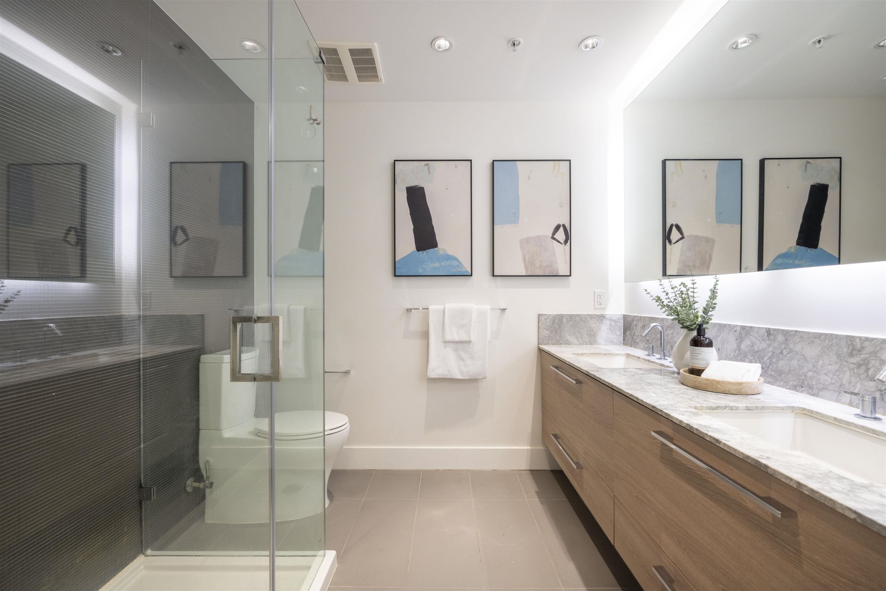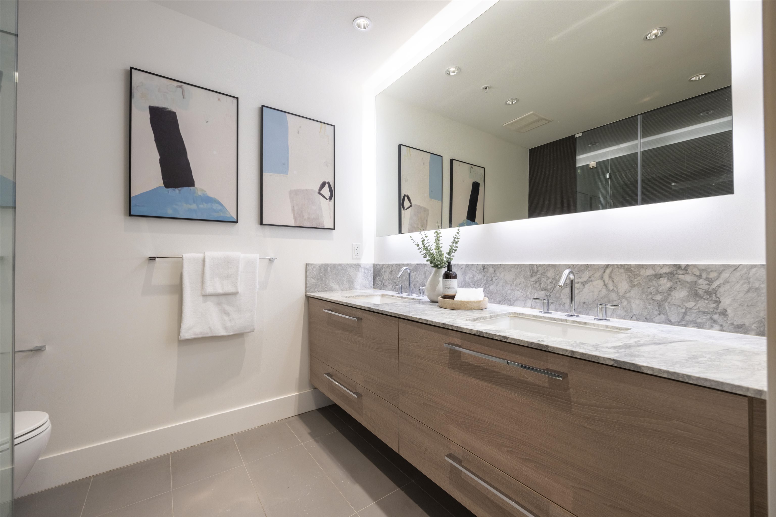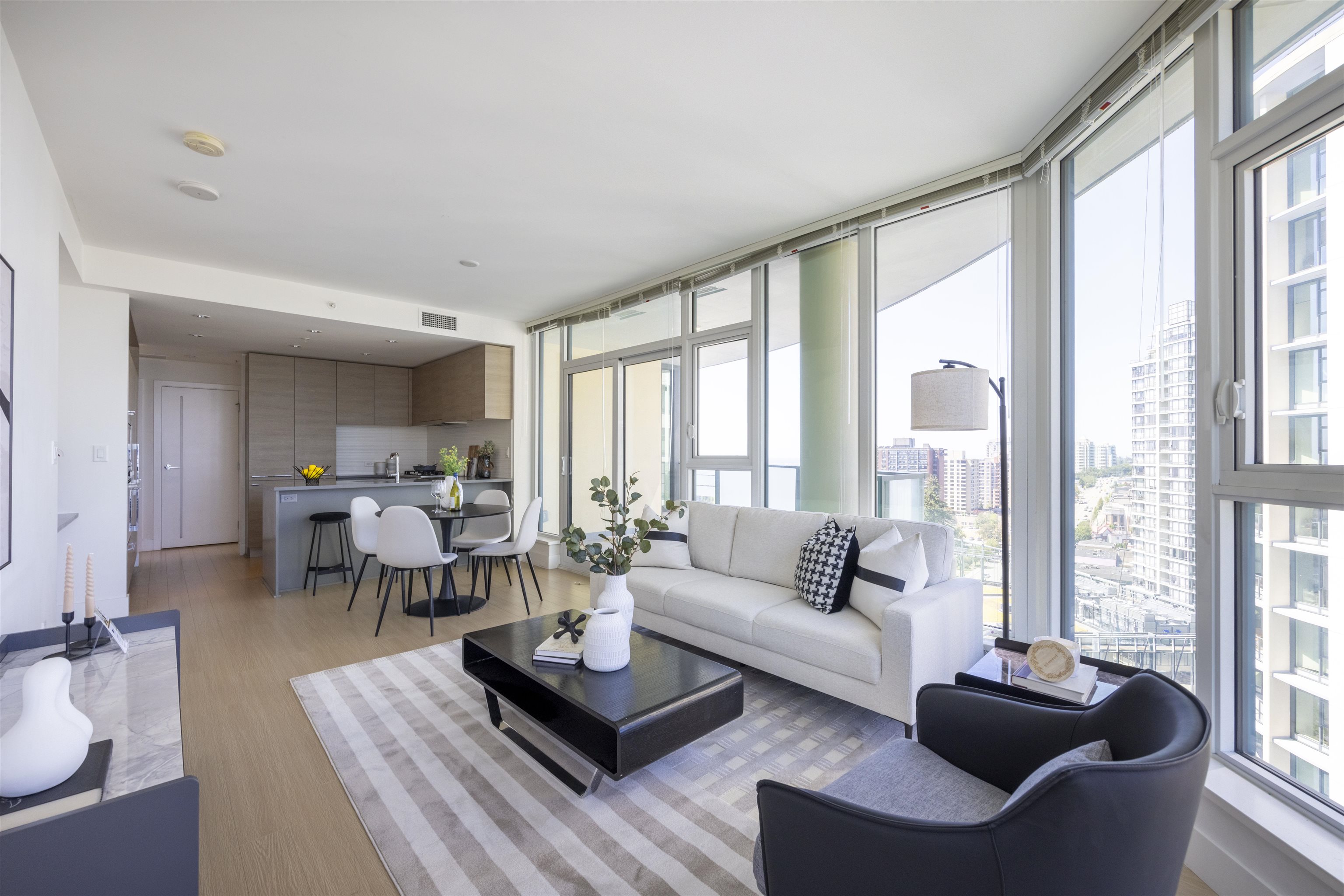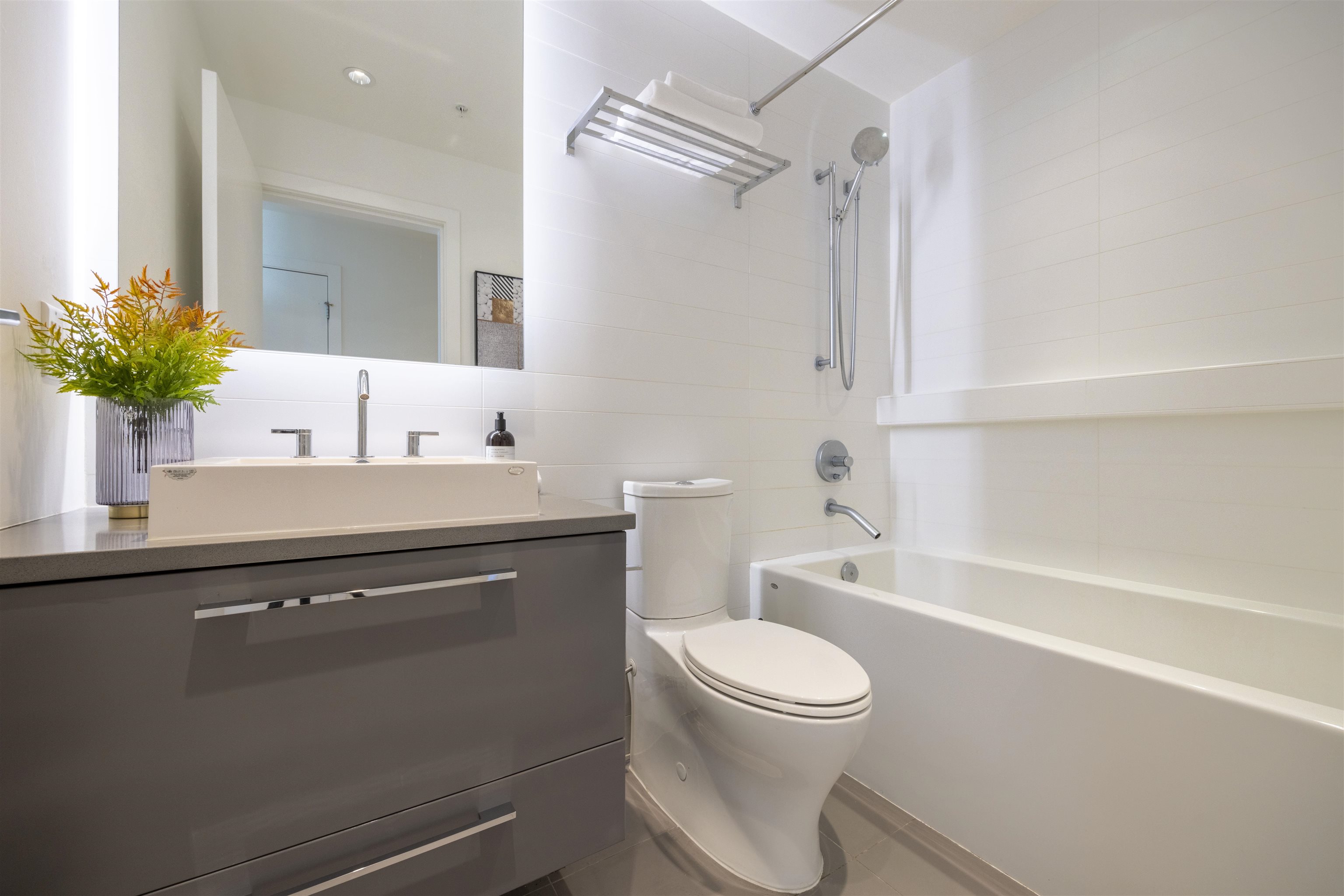 Discover Kings Crossing ONE by Cressey: a modern, northwest-facing concrete residence spanning 900 sqft, featuring 2 bedrooms and 2 baths. This luxurious home boasts high-end finishes, air conditioning, and a spacious balcony with unobstructed, breathtaking views of the mountains, city, and water from every room. The sleek kitchen includes a double-door refrigerator, pull-out pantry, Fulgor 5-burner gas cooktop, and built-in oven. The opulent ensuite bathroom offers a marble countertop and a full-size showe...