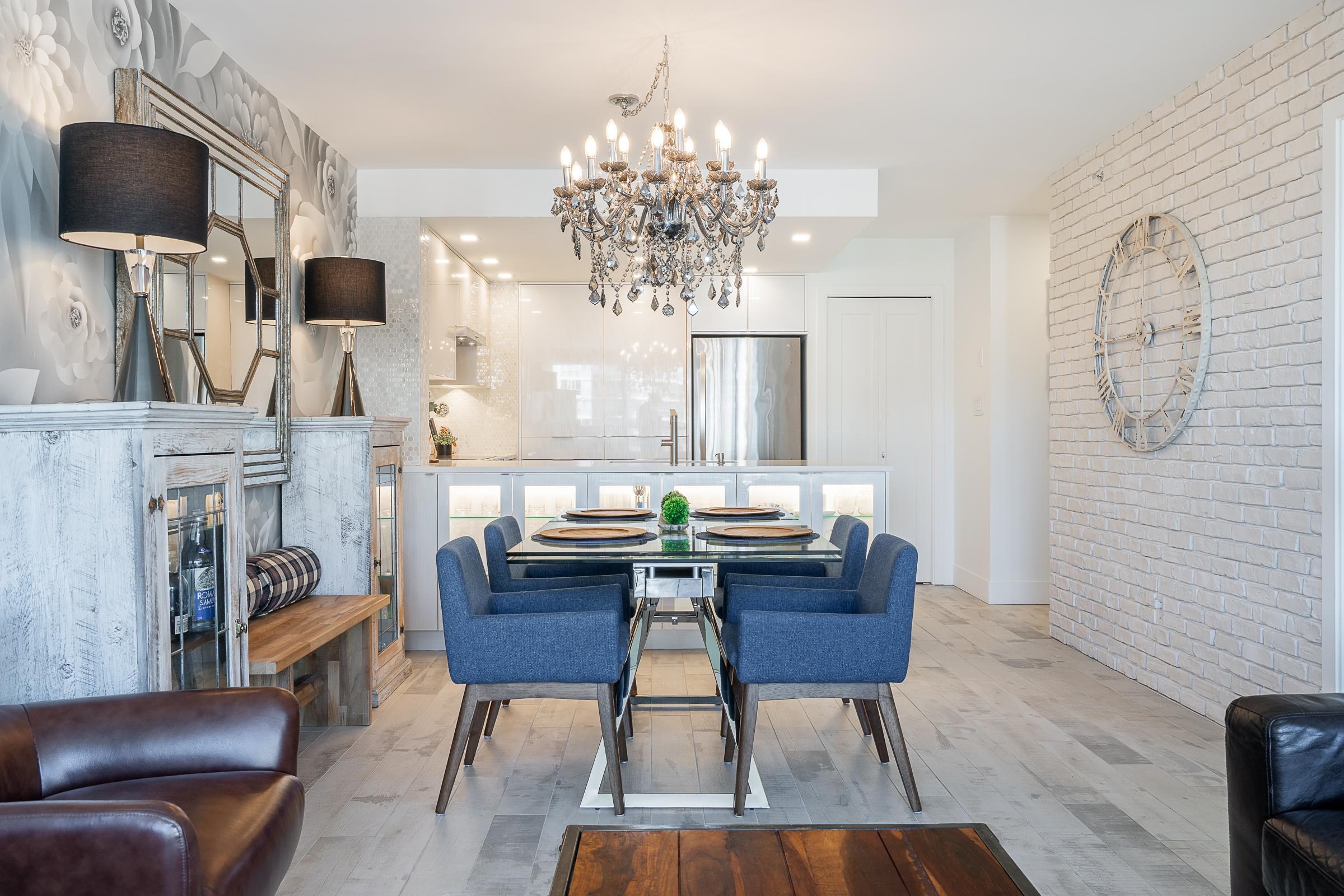 BEAUTIFUL, FULLY RENOVATED Port Moody Condo with elegant European Charm! Featuring an open plan with timeless ambiance. Designer finishes throughout include a Gourmet Kitchen with European high gloss cabinetry, Italian Flooring throughout, Brick imported from France and Beautiful European Tile. The dining room is anchored with a custom one-of-a-kind chandelier. Living has a new gas fireplace, floor to ceiling windows, and leads to a covered balcony with breathtaking mountain and city views! Bedrooms have cu...